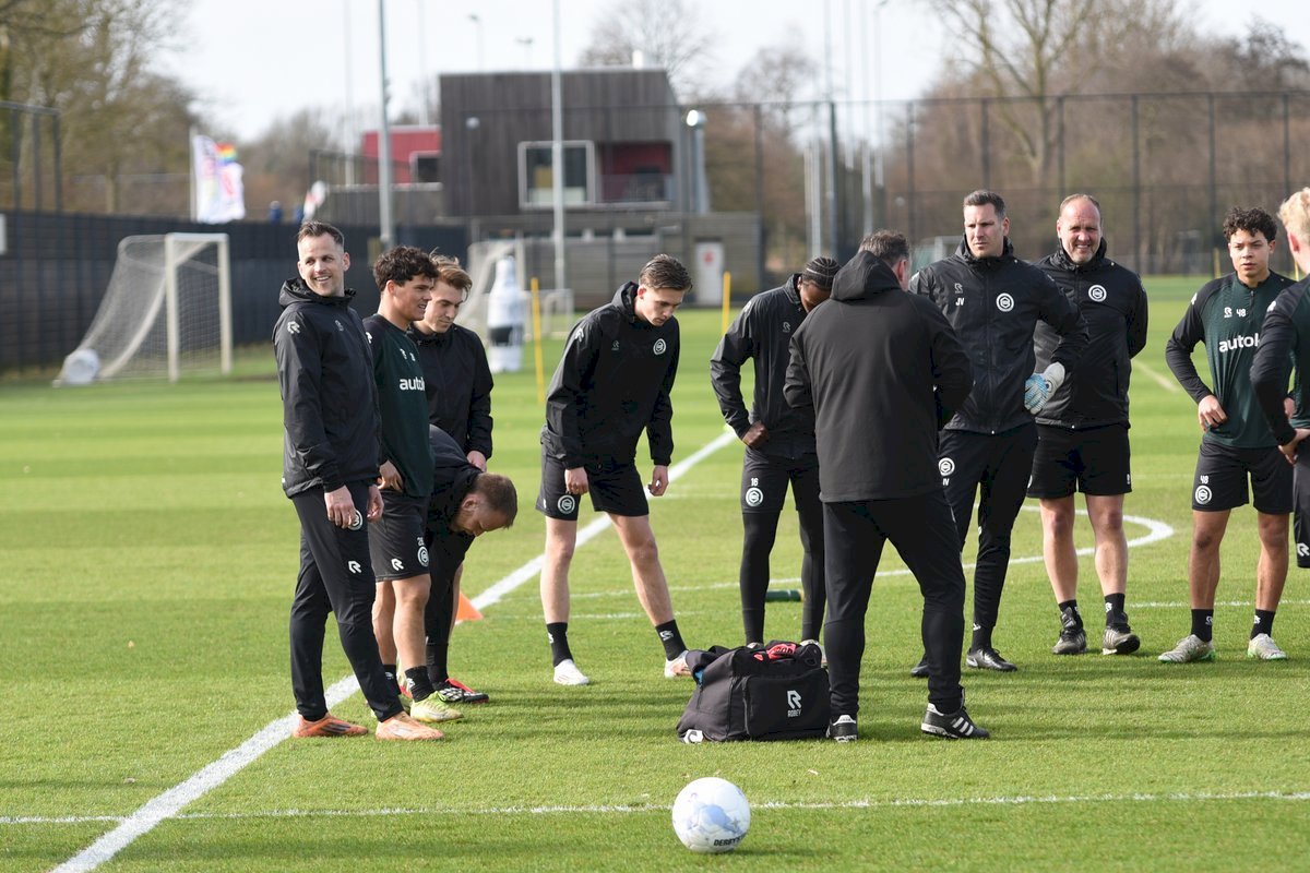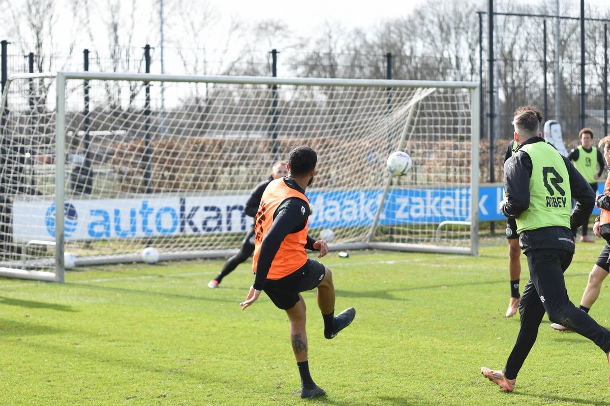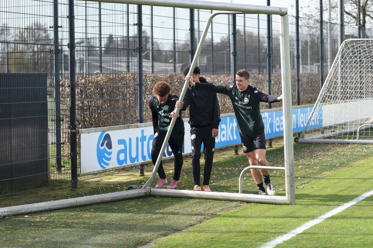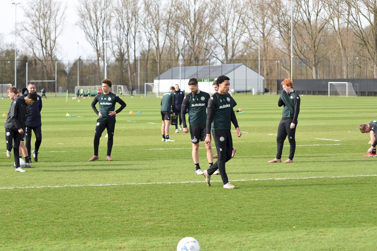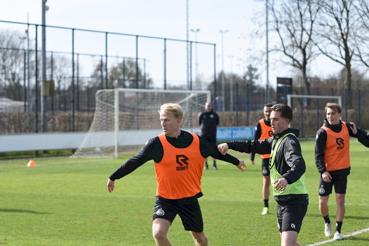 Zojuist spraken wij met Casper Goedkoop over de wedstrijd PEC Zwolle - FC Groningen en we plaatsen wat foto's van de training van hedenmorgen. Een training waar Oskar Zawada en Tika de Jonge niet meededen, alleen aandachtig toeschouwer was, en Erienne Vaessen die later het velkd betrad maar niet mee zal gaan naar Zwolle. Dat betekend dat Hidde Jurjus morgen in de goal zal staan.