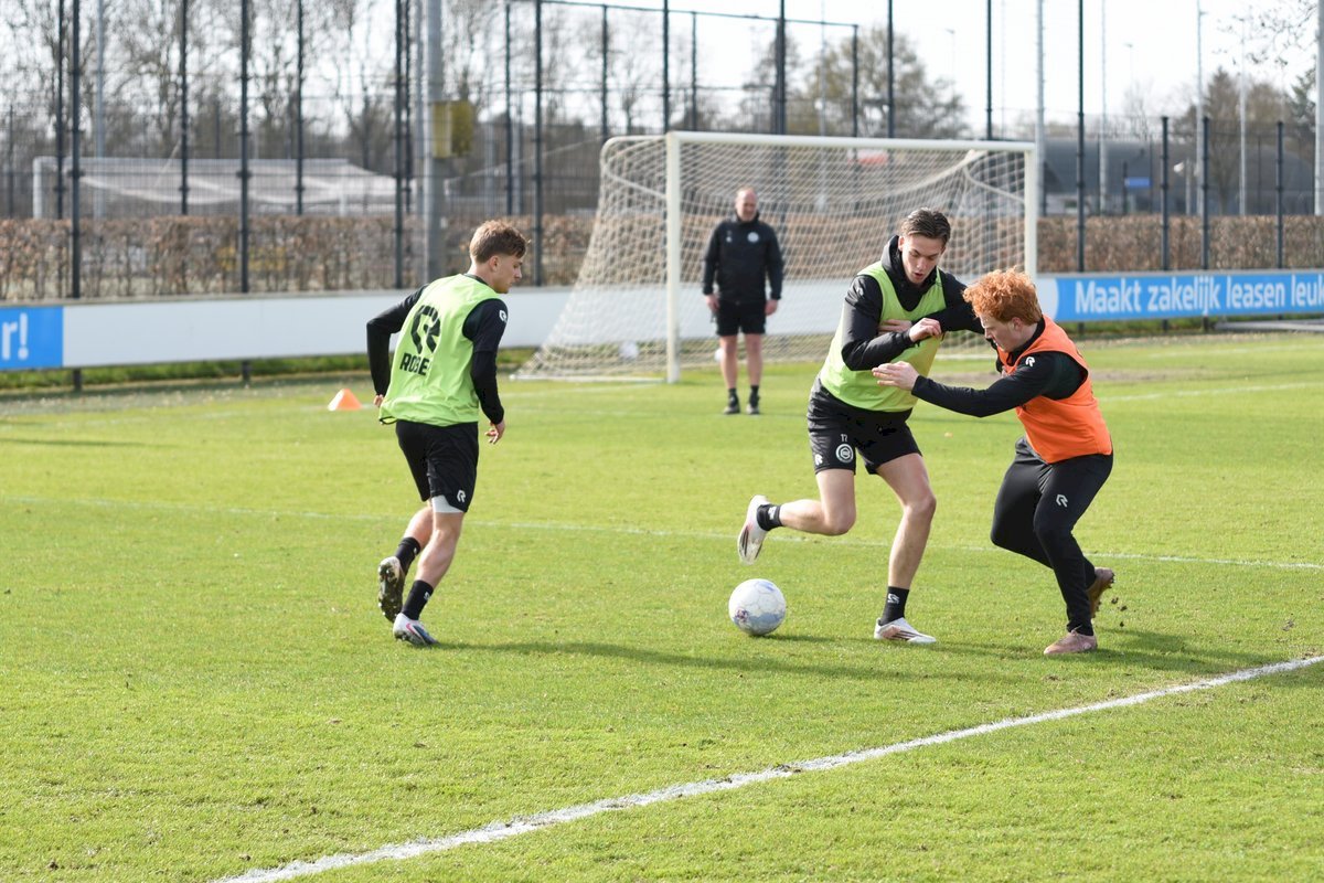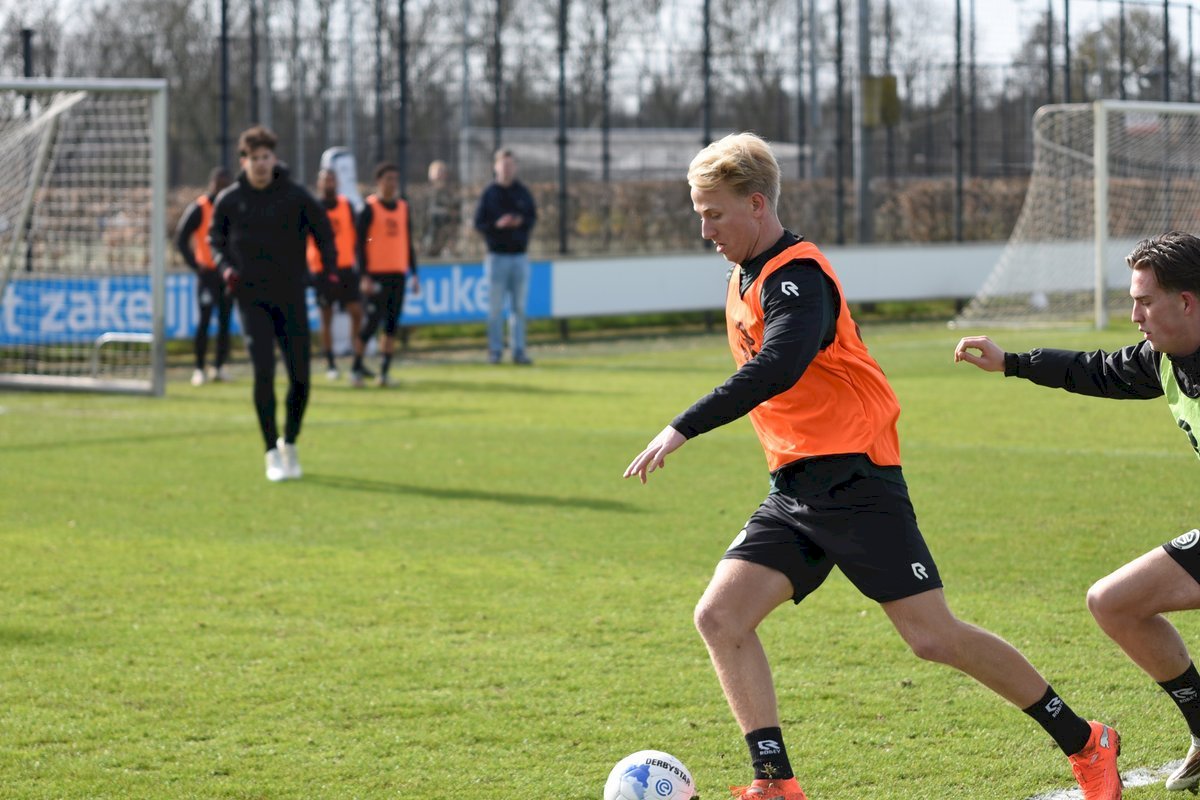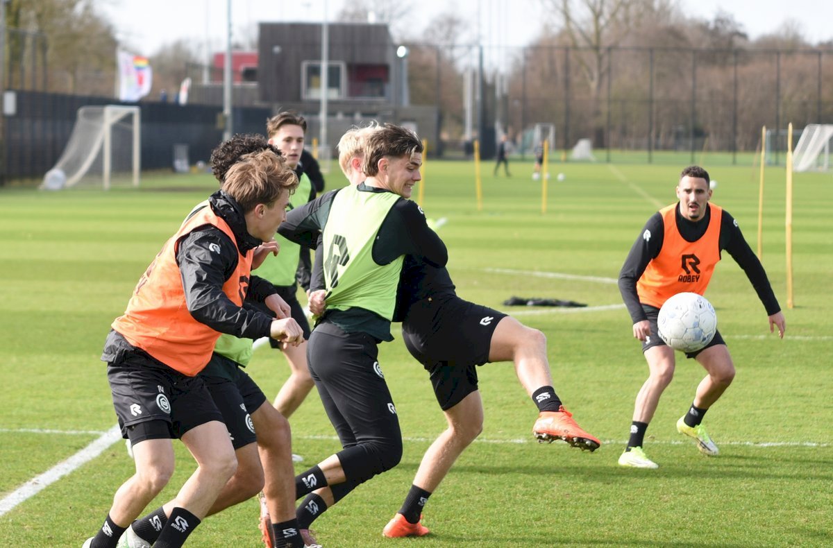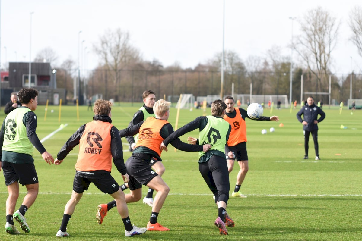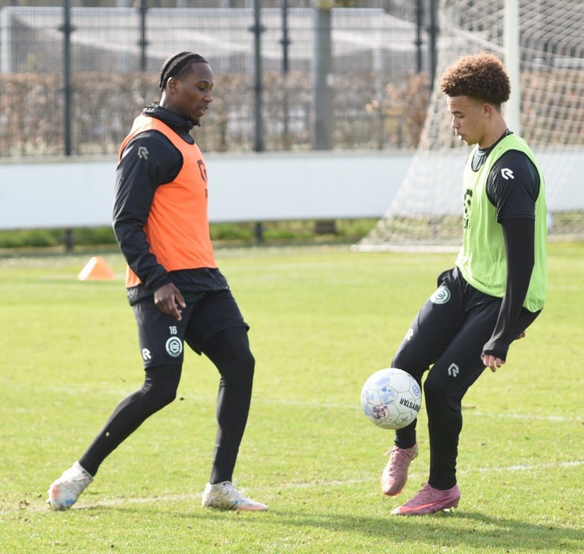 Zojuist spraken wij met Casper Goedkoop over de wedstrijd PEC Zwolle - FC Groningen en we plaatsen wat foto's van de training van hedenmorgen. Een training waar Oskar Zawada en Tika de Jonge niet meededen, alleen aandachtig toeschouwer was, en Erienne Vaessen die later het velkd betrad maar niet mee zal gaan naar Zwolle. Dat betekend dat Hidde Jurjus morgen in de goal zal staan.
