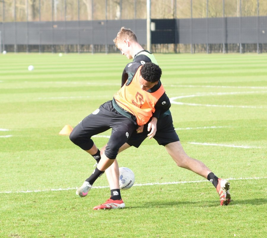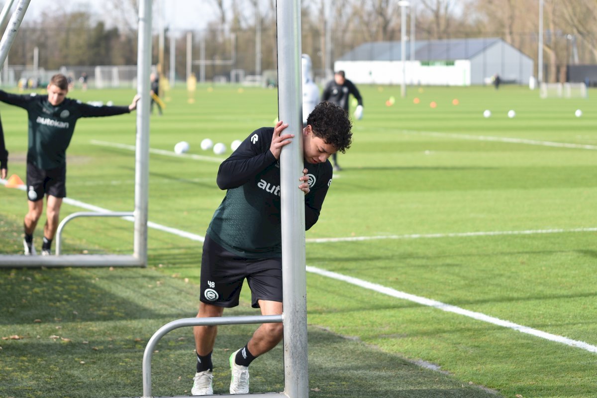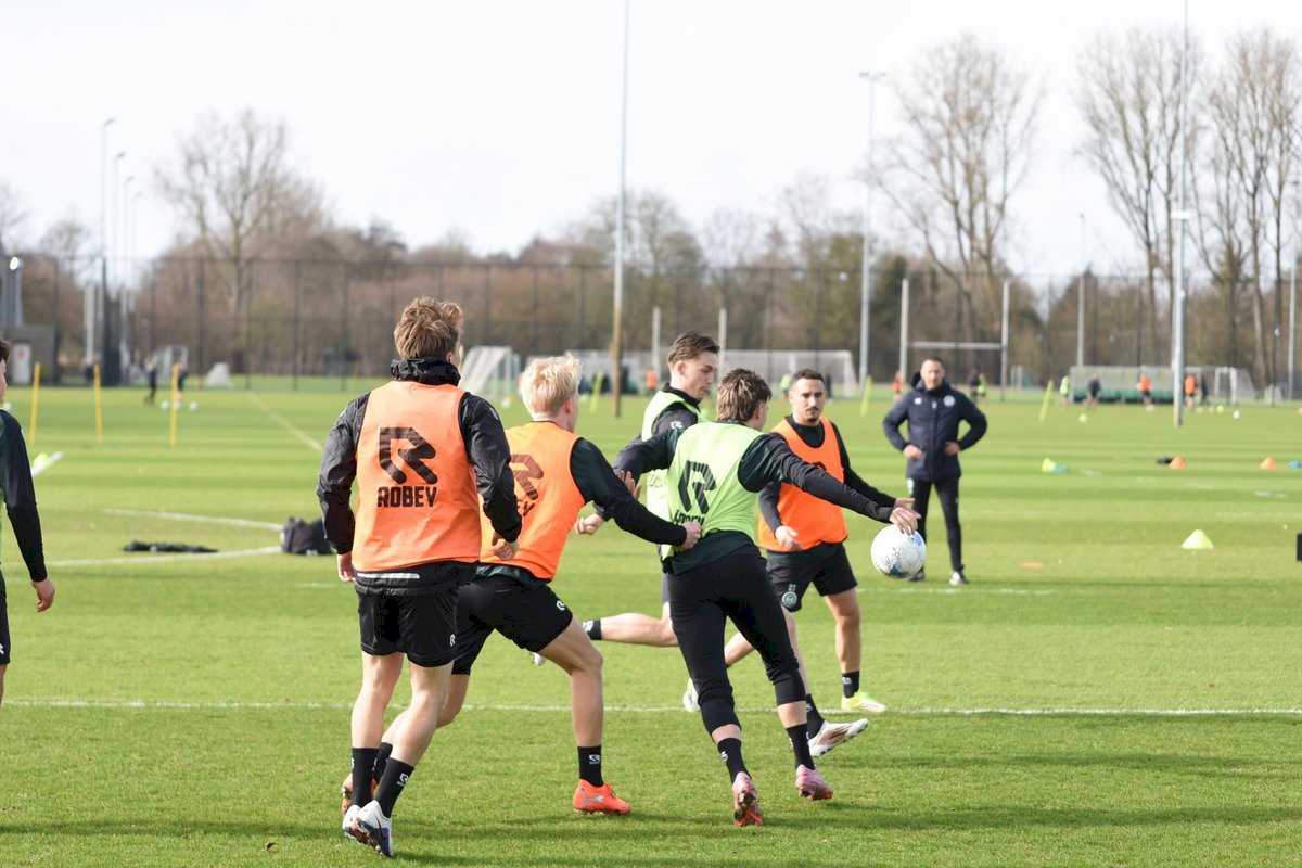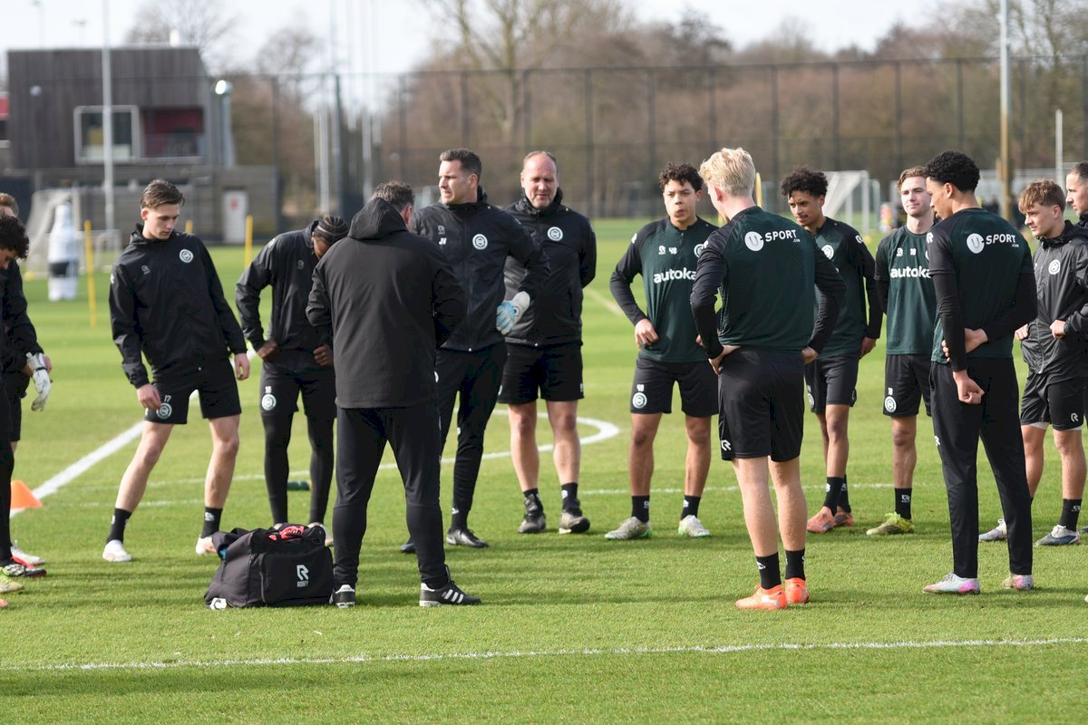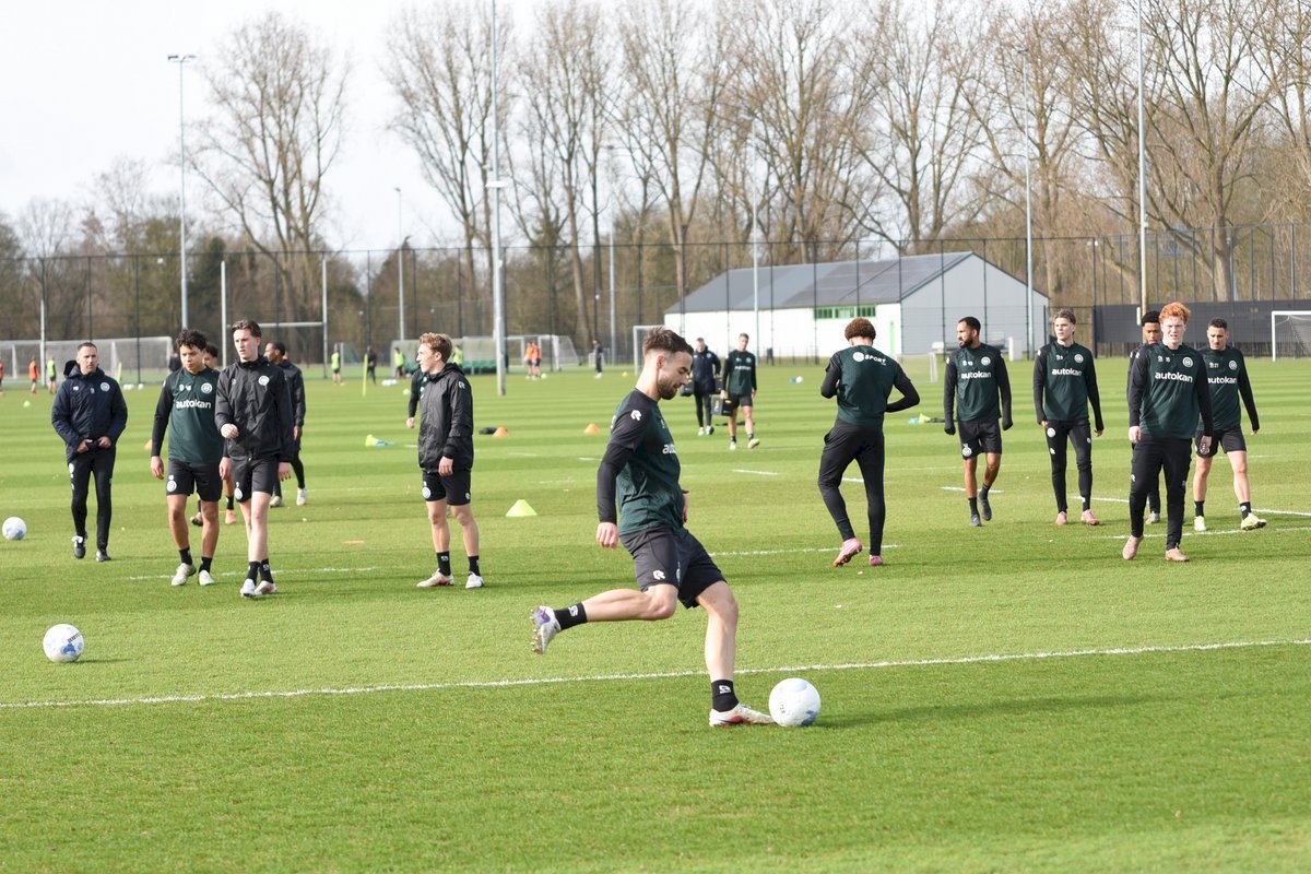 Zojuist spraken wij met Casper Goedkoop over de wedstrijd PEC Zwolle - FC Groningen en we plaatsen wat foto's van de training van hedenmorgen. Een training waar Oskar Zawada en Tika de Jonge niet meededen, alleen aandachtig toeschouwer was, en Erienne Vaessen die later het velkd betrad maar niet mee zal gaan naar Zwolle. Dat betekend dat Hidde Jurjus morgen in de goal zal staan.