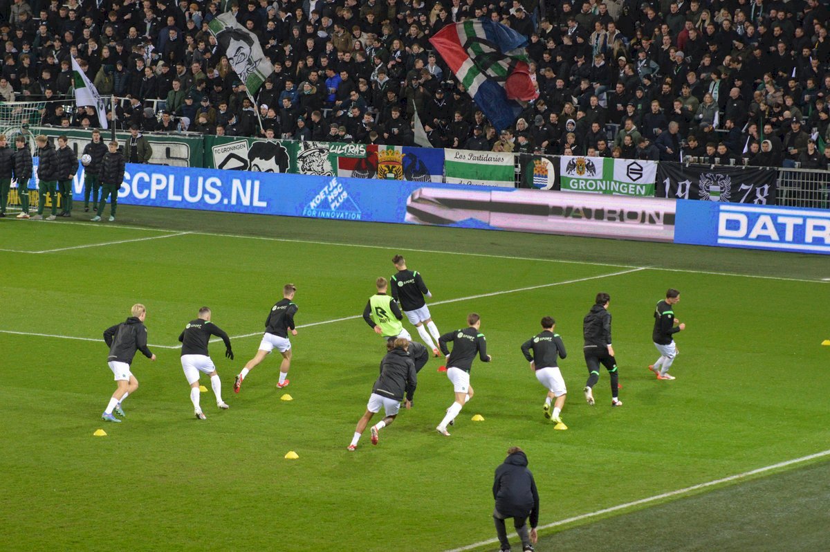 In het daaropvolgende kwartier lag het spel regelmatig stil door kleine overtredingen aan beide kanten, waardoor het aantal echte kansen in de tweede helft beperkt bleef. Met nog zo’n vijftien minuten te spelen klonk het massale ‘Sta op voor FC Groningen’ vanaf de tribunes. Een krachtig signaal om de ploeg van Lukkien in de slotfase vooruit te stuwen.