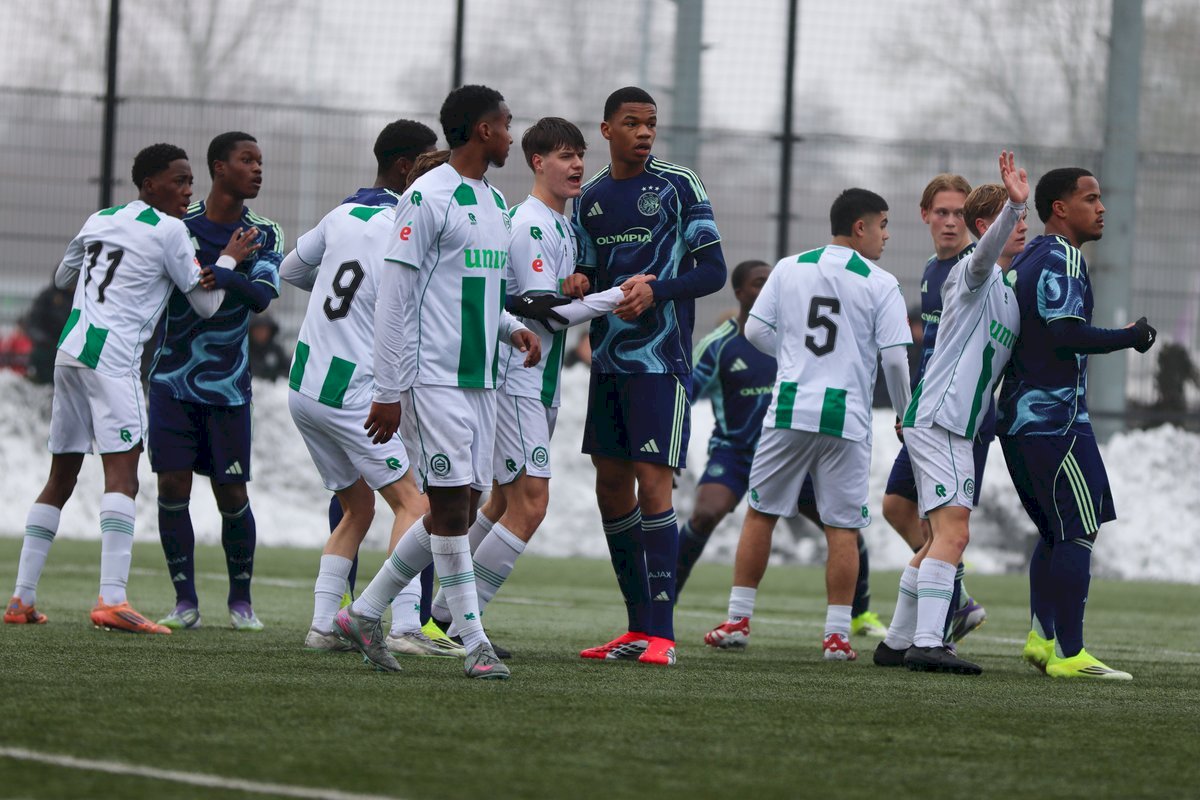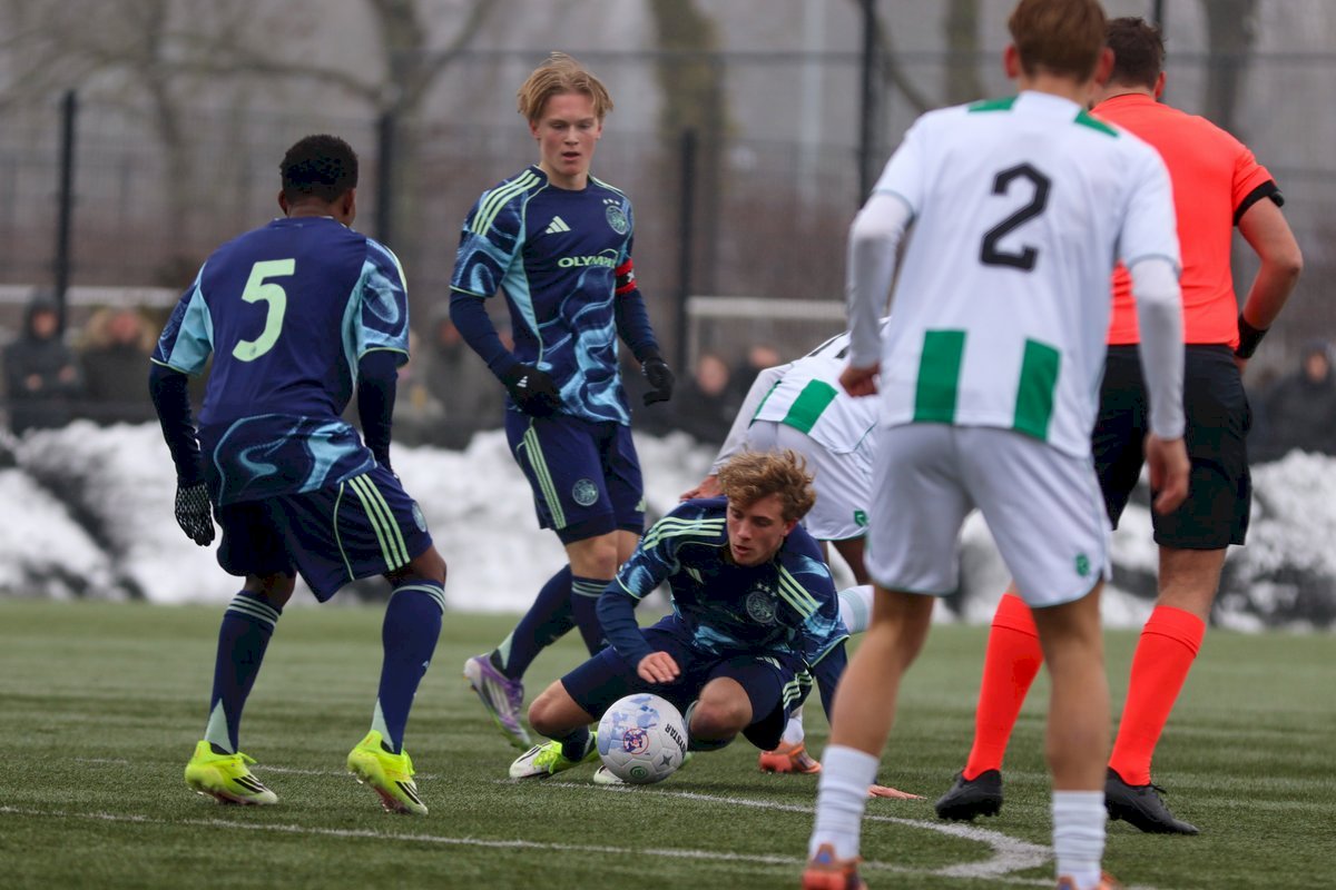 Ajax: Valentijn van der Velde, Luuk Beekman, Kennynho Kasanwirjo, Marvyn Muzungu, Lucas Jetten (Hasan Ayyildiz), Thijmen Romers, Luca Messori (Anass Moumane), Mohamed Abdalla, Tyrese Teuwsen (Leroy Fränkel), Levi Acheampong (Jeshurun Simeon), Pharell Nash (Sesynijo Tilborg)