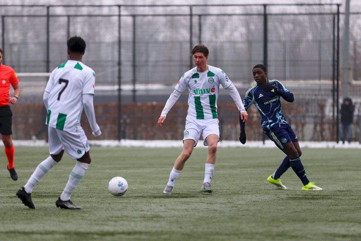 Op de zaterdagmiddag om 13.00 een prachtige affiche op Corpus den Hoorn als FC Groningen o19 bezoek krijgt in de bekercompetitie van Ajax o19. De Amsterdammers die iedere jaar meedoen om het landskampioenschap in de hoogste klasse, Divisie 1, en dat is iets hoger dan FC Groningen. Bij Ajax o19 een paar spelers die al eerste elftal ervaring hadden dus de mannen van Sander van Gessel moesten aan de bak. Het team van Groningen miste onder andere spits Ruben Bloem en ook aanvaller Milan Hoogeveen die met de o21 naar Maastricht was.