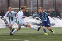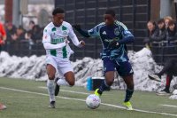 Zoals je mocht verwachten namen de mannen van Ajax vanaf het begin van de wedstrijd het initiatief maar echt veel kansen kon men niet creëren. De Groningse defensie stond wat dat betreft prima. Af en toe probeerde de thuisploeg er uit te komen maar ook zij konden niet veel kansen creëren. Als je het balbezit bekijkt was het misschien 20% tegen 80 % maar balbezit zegt niet alles. Af en toe kwamen de Amsterdammers dreigend in de buurt van goalie Casper Roelfsema maar echte reddingen hoefde hij niet verrichten. Wat je dan niet verwacht gebeurt dan als vlak voor rust FC Groningen maar zo op voorsprong komt. Na een snelle tegenstoot is het Kaj Brandsma die via een voet van een verdediger raak schiet, 1-0. Velen hebben het doelpunt niet gezien want die waren al naar de kantine voor de warme koffie of chocomelk.