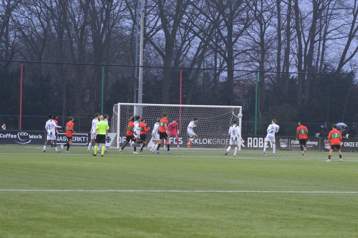 De thuisploeg probeerde de draad weer op te pakken zoals men in de eerste helft begon maar daar kwam niet veel van terecht want FC Groningen bleef gemakkelijk overeind. Veel kansen kon de thuisploeg niet creëren en dat in tegenstelling van FC Groningen. De ploeg van Sander van Gessel speelde een prima pot en kreeg verreweg de meeste kansen. Yenio Holder raakte een keer de paal na een prachtige aanval over rechts en kreeg Jari Kolthof tot twee keer toe een kans vrij voor Martijn Overmars maar beide keren was de doelman paraat.