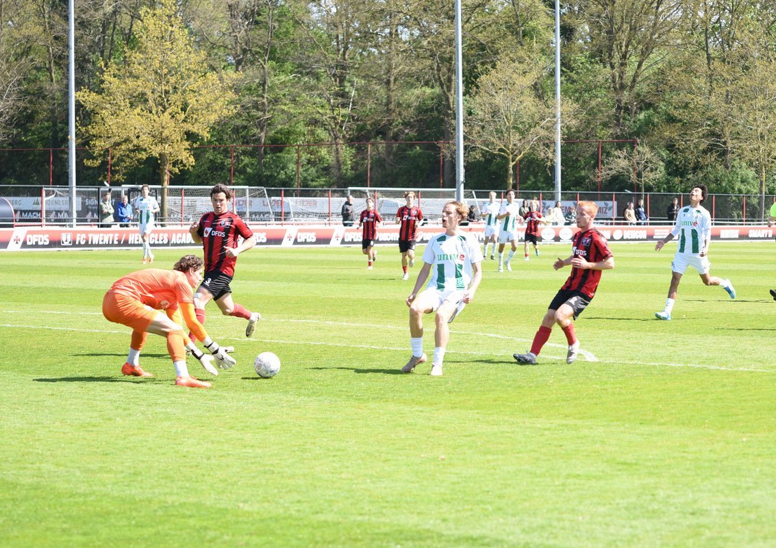FC Groningen o21 moest vanmiddag aantreden op het trainingscomplex van FC Twente in Hengelo tegen FC Twente/Heracles o21. Na de fantastische wedstrijd tegen toenmalig koploper SC Cambuur o21 van afgelopen zaterdag die met 3-1 werd gewonnen moesten de mannen van Melchior Schoenmakers wel vol vertrouwen afreizen. Beide teams hadden een prima elftal op het veld staan dus er mocht wat van veracht worden. Onder de toeschouwers vandaag o.a. oud FC Groningen aanvaller Berry Powel en oud FC Twente icoon Wout Brama.