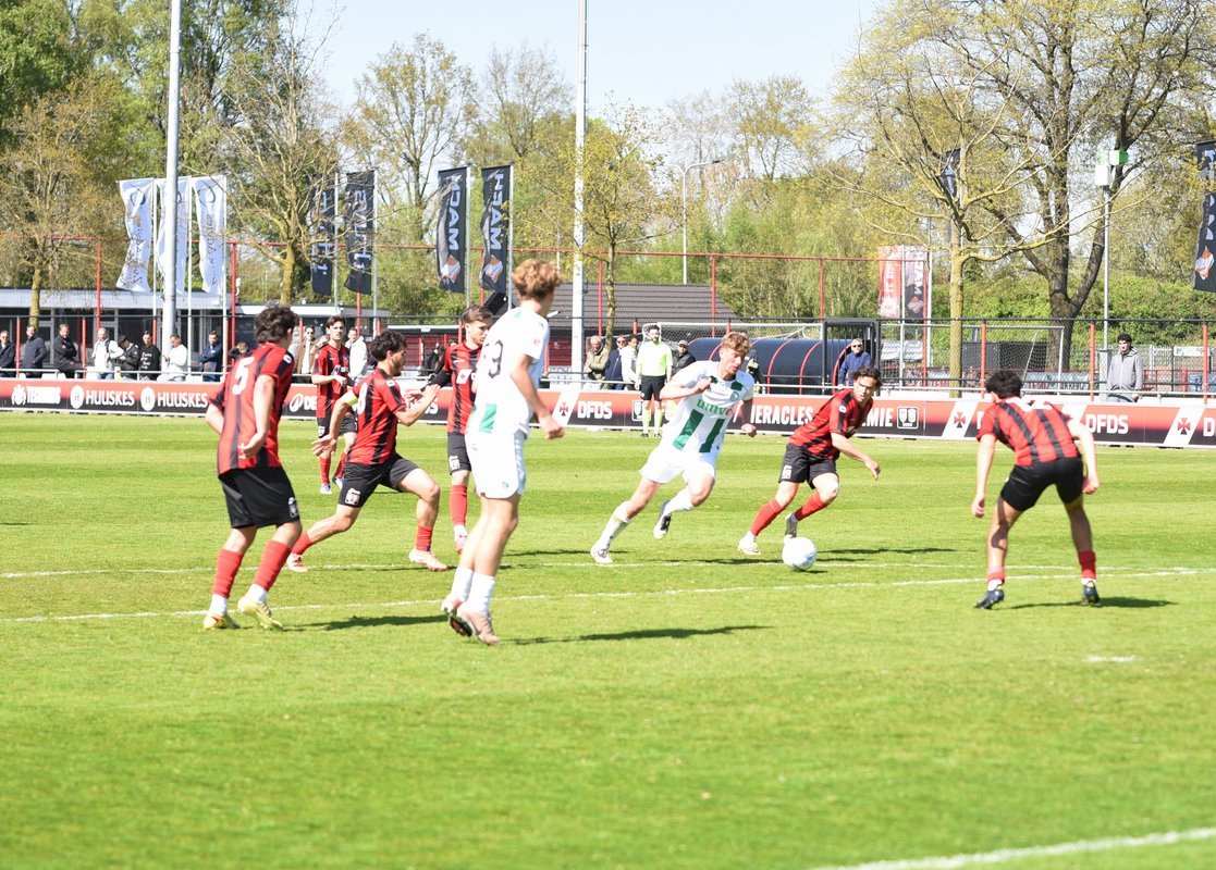 De eerste kans in de tweede helft is voor FC Groningen maar een schot van Ryan Metu gaat net naast. Een paar minuten daarna valt hij aan de andere kant wel en Jort Ribbers kan zijn tweede en de vijfde van FC Twente/Heracles maken. Een minuut of negen later komt de FC nog even terug in de wedstrijd als Marco Speelman vanaf links een prima voorzet geeft en Robin Kelder via de binnenkant van de paal raakt schiet, 5-2.