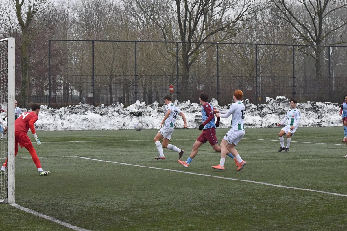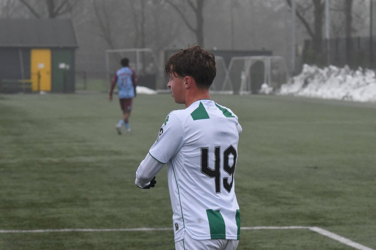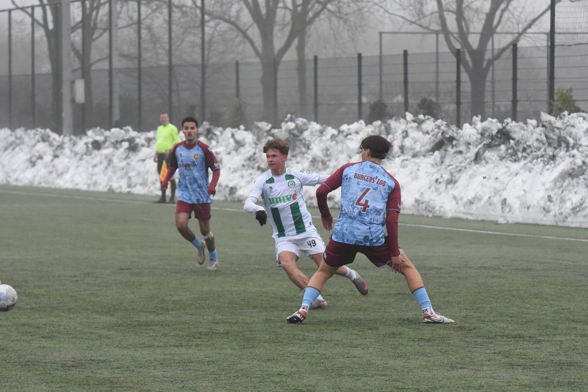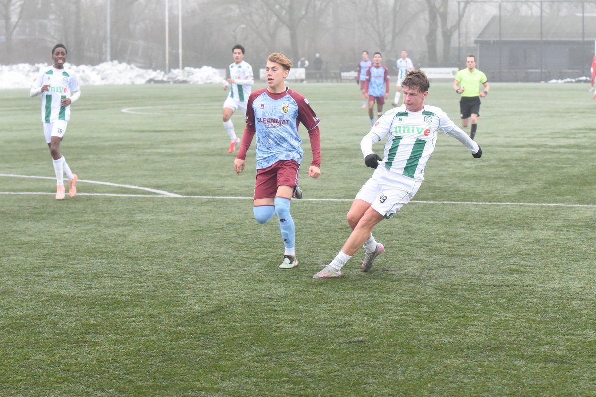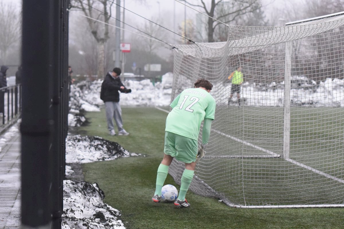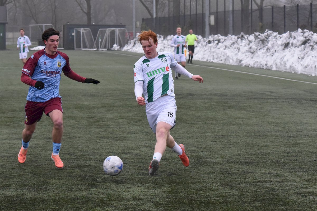 Na het behaalde kampioenschap in de najaarscompetitie en een verdiende rust traden de mannen van FC Groningen o21 vanmiddag op Corpus den Hoorn in de eerste wedstrijd van 2026 aan tegen Vitesse o21. Het leek wel of de wedstrijd in Oostenrijk of zo gespeeld werd want zulke hoge bergen sneeuw lagen er langs het veld. Het veld was daarentegen prima bespeelbaar.