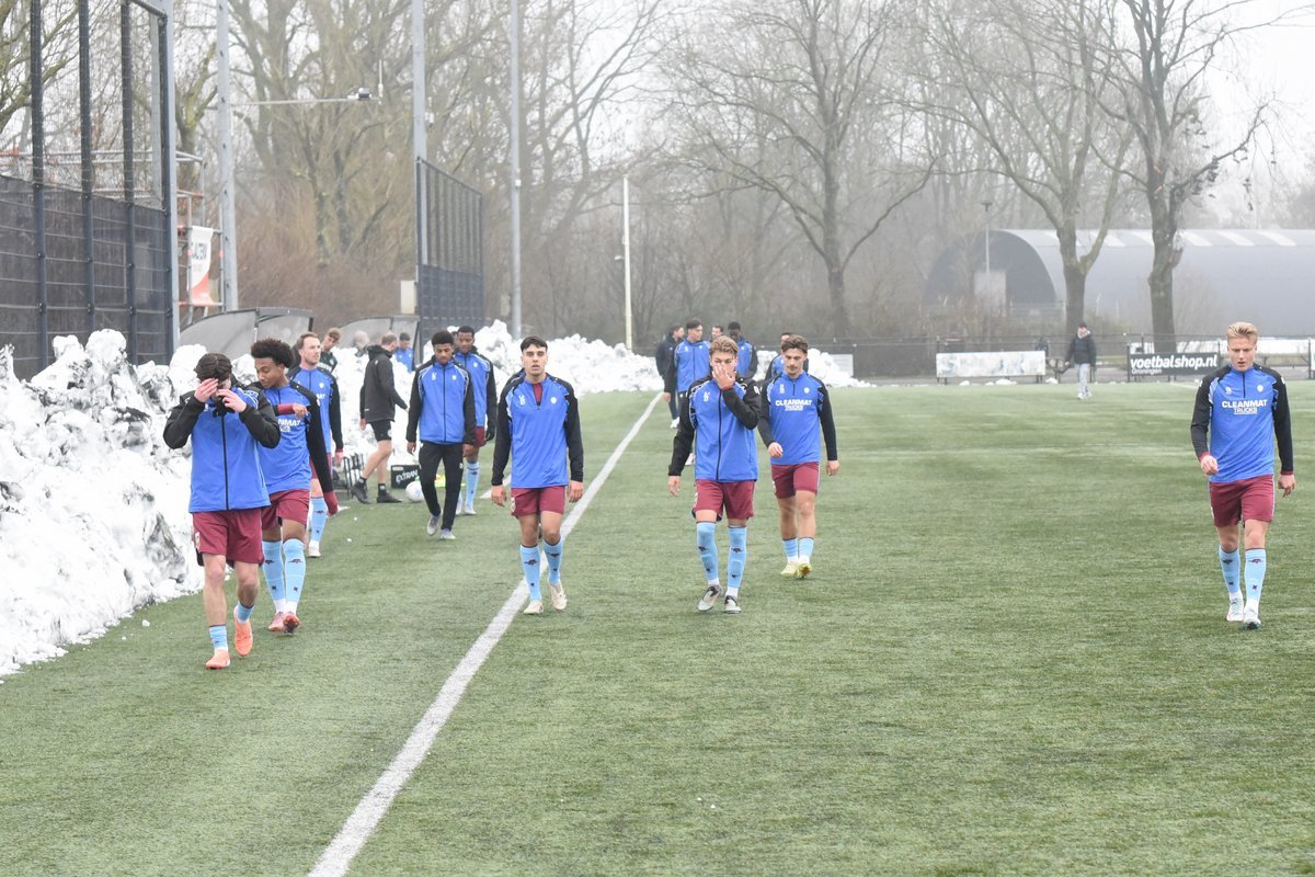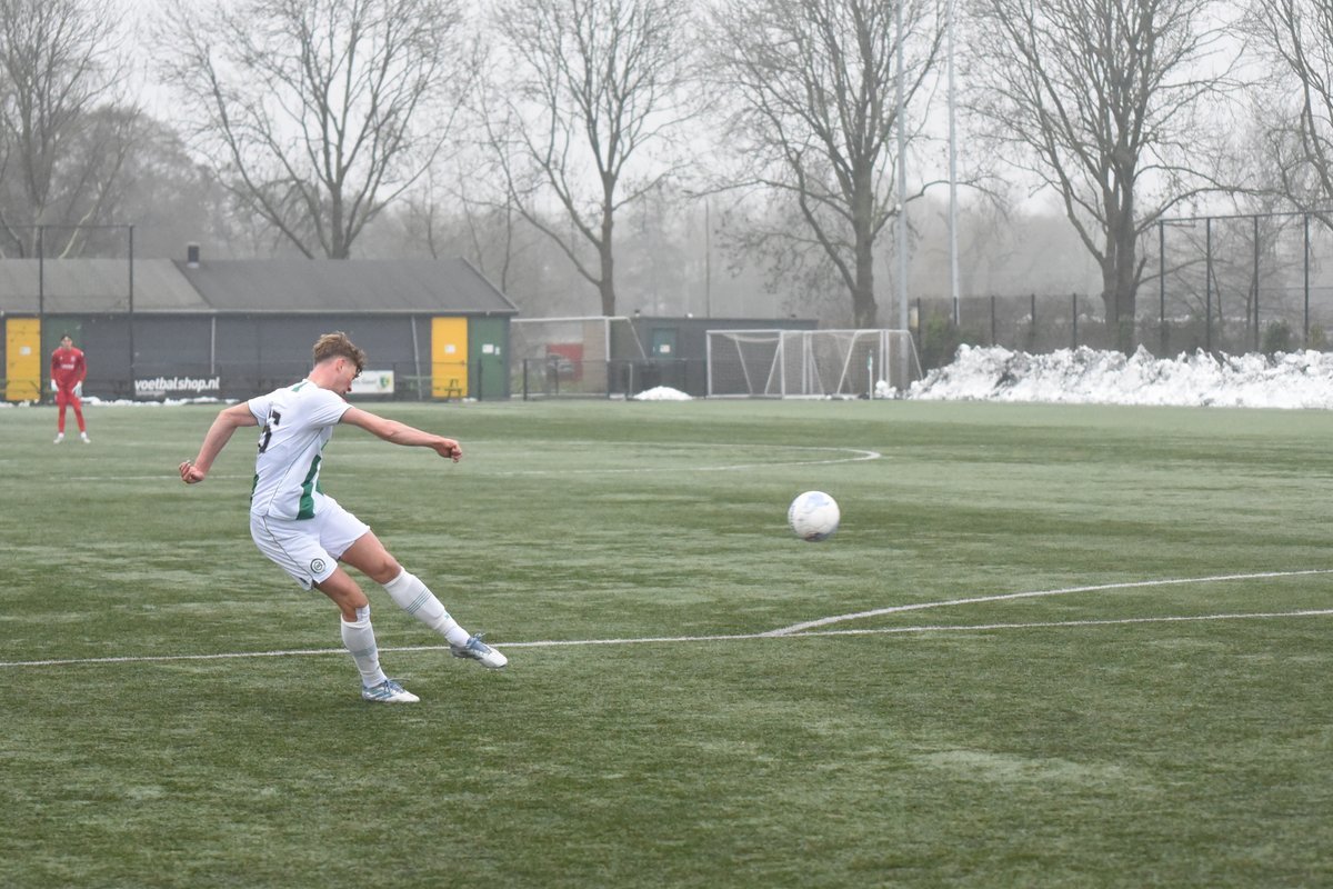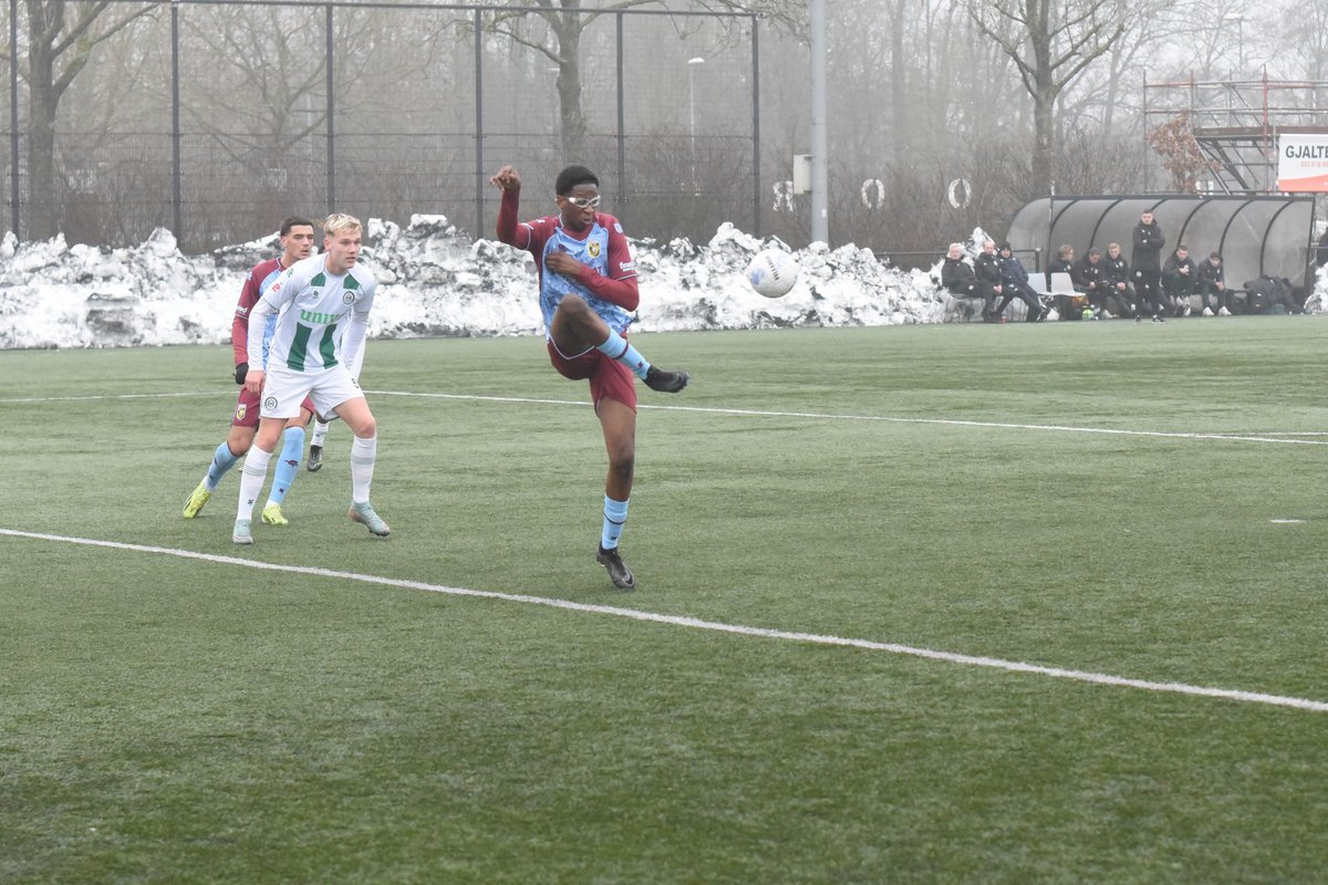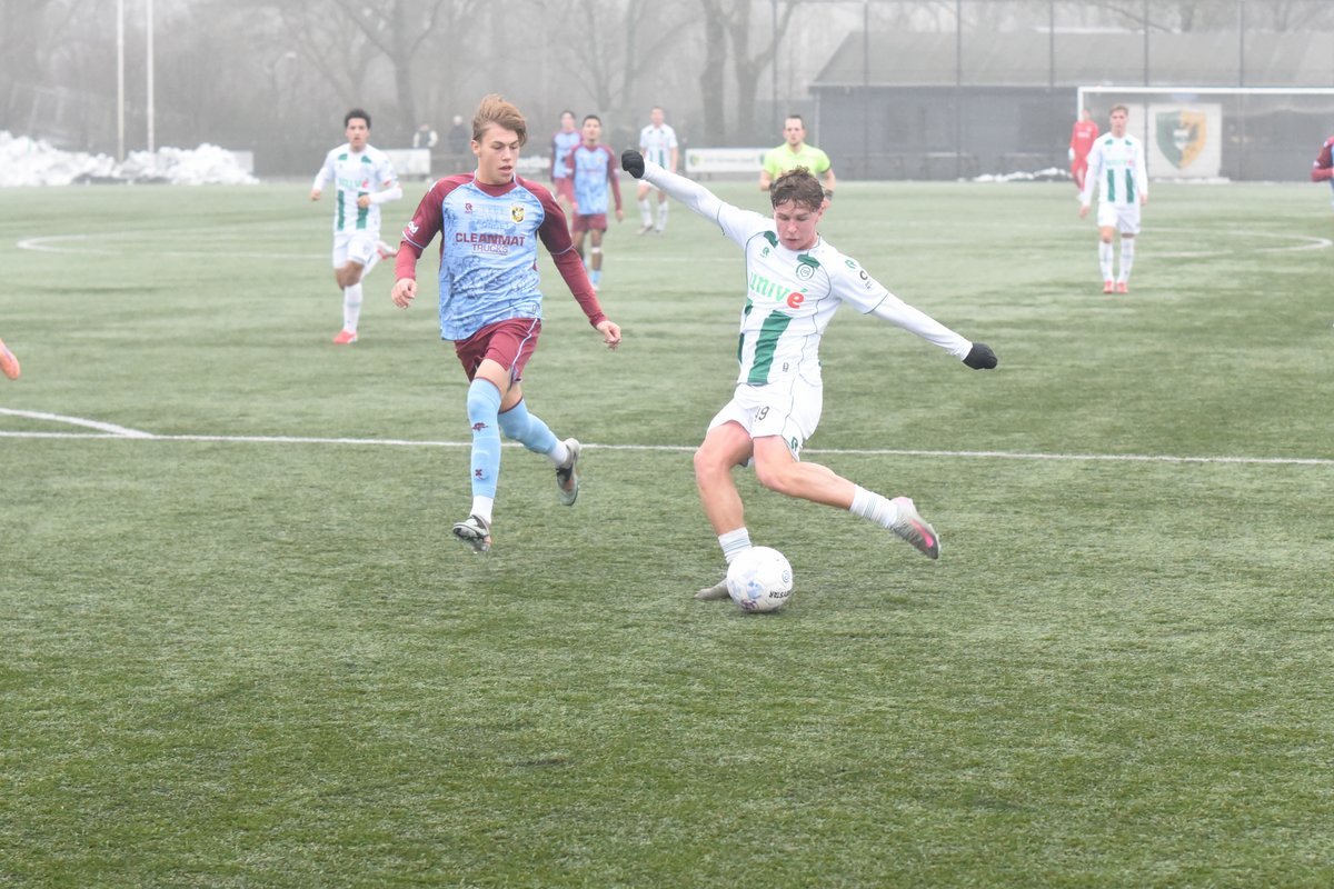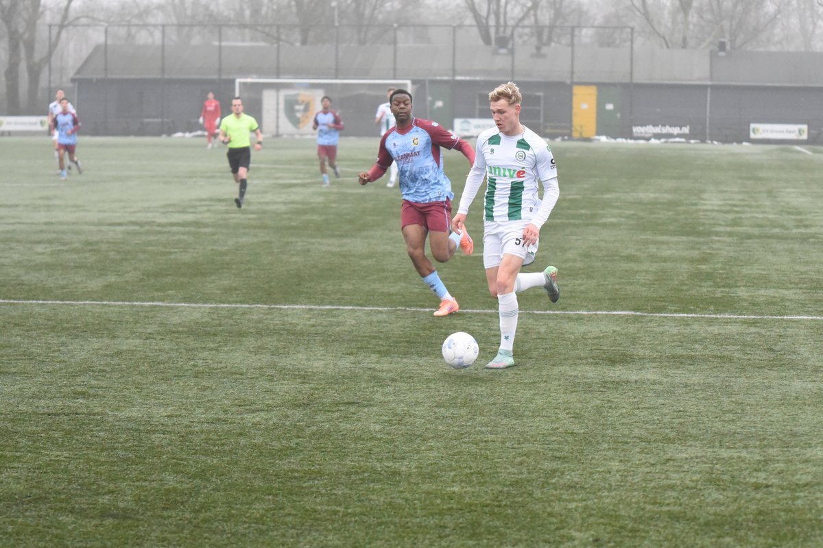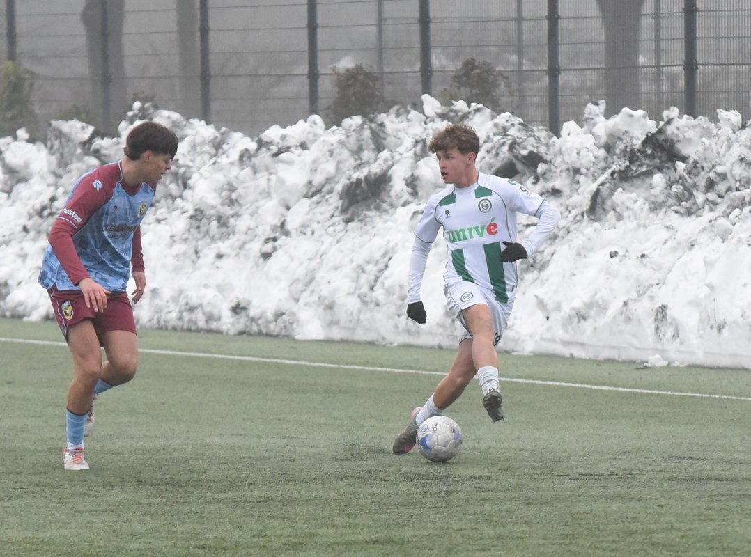 Na het behaalde kampioenschap in de najaarscompetitie en een verdiende rust traden de mannen van FC Groningen o21 vanmiddag op Corpus den Hoorn in de eerste wedstrijd van 2026 aan tegen Vitesse o21. Het leek wel of de wedstrijd in Oostenrijk of zo gespeeld werd want zulke hoge bergen sneeuw lagen er langs het veld. Het veld was daarentegen prima bespeelbaar.