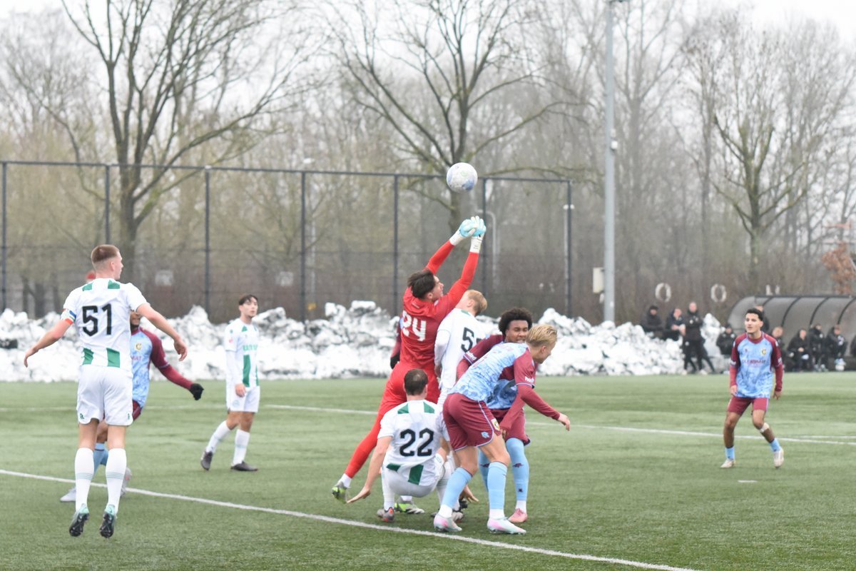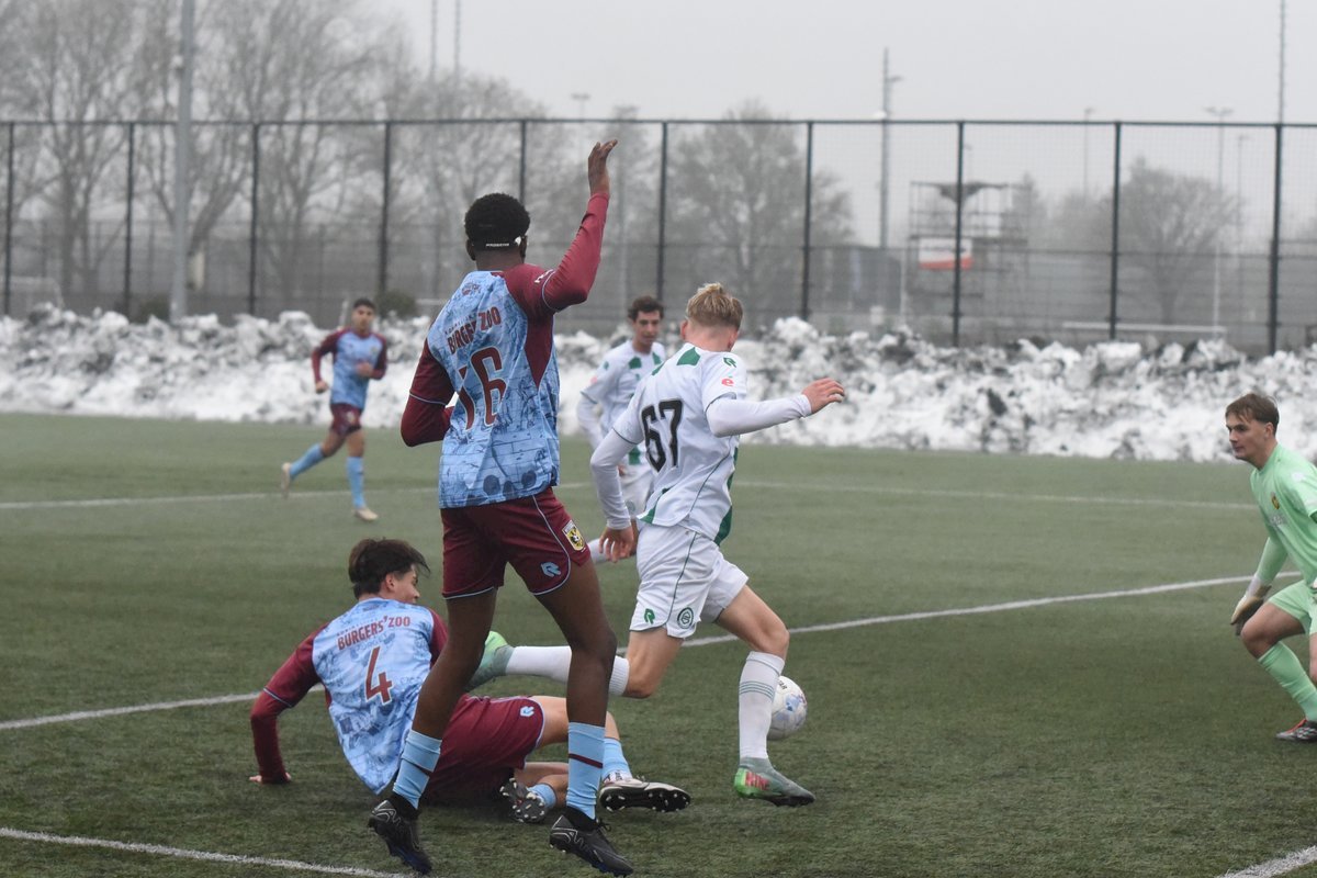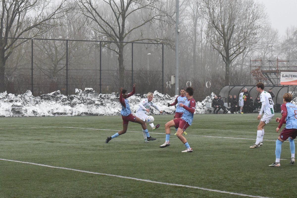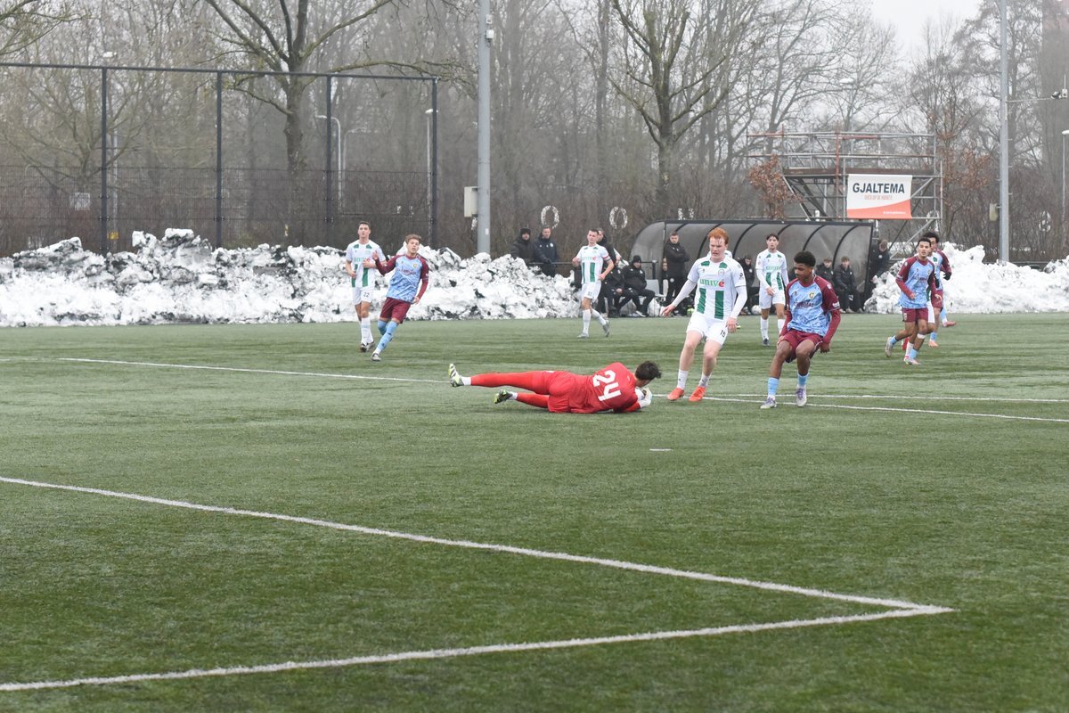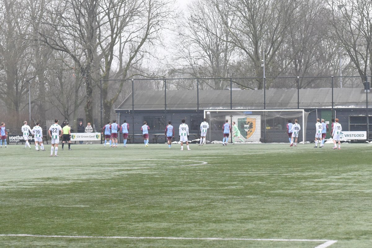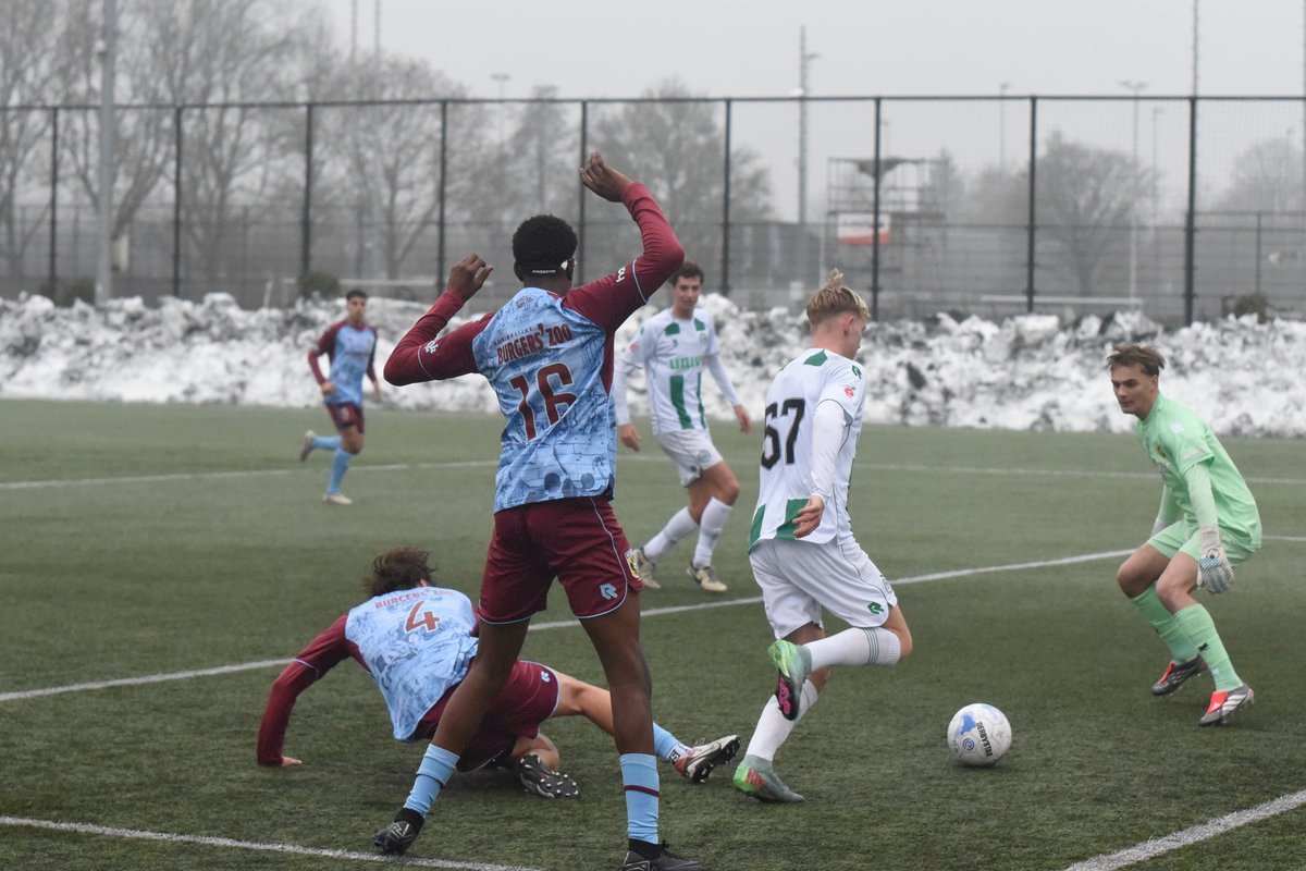 Na het behaalde kampioenschap in de najaarscompetitie en een verdiende rust traden de mannen van FC Groningen o21 vanmiddag op Corpus den Hoorn in de eerste wedstrijd van 2026 aan tegen Vitesse o21. Het leek wel of de wedstrijd in Oostenrijk of zo gespeeld werd want zulke hoge bergen sneeuw lagen er langs het veld. Het veld was daarentegen prima bespeelbaar.