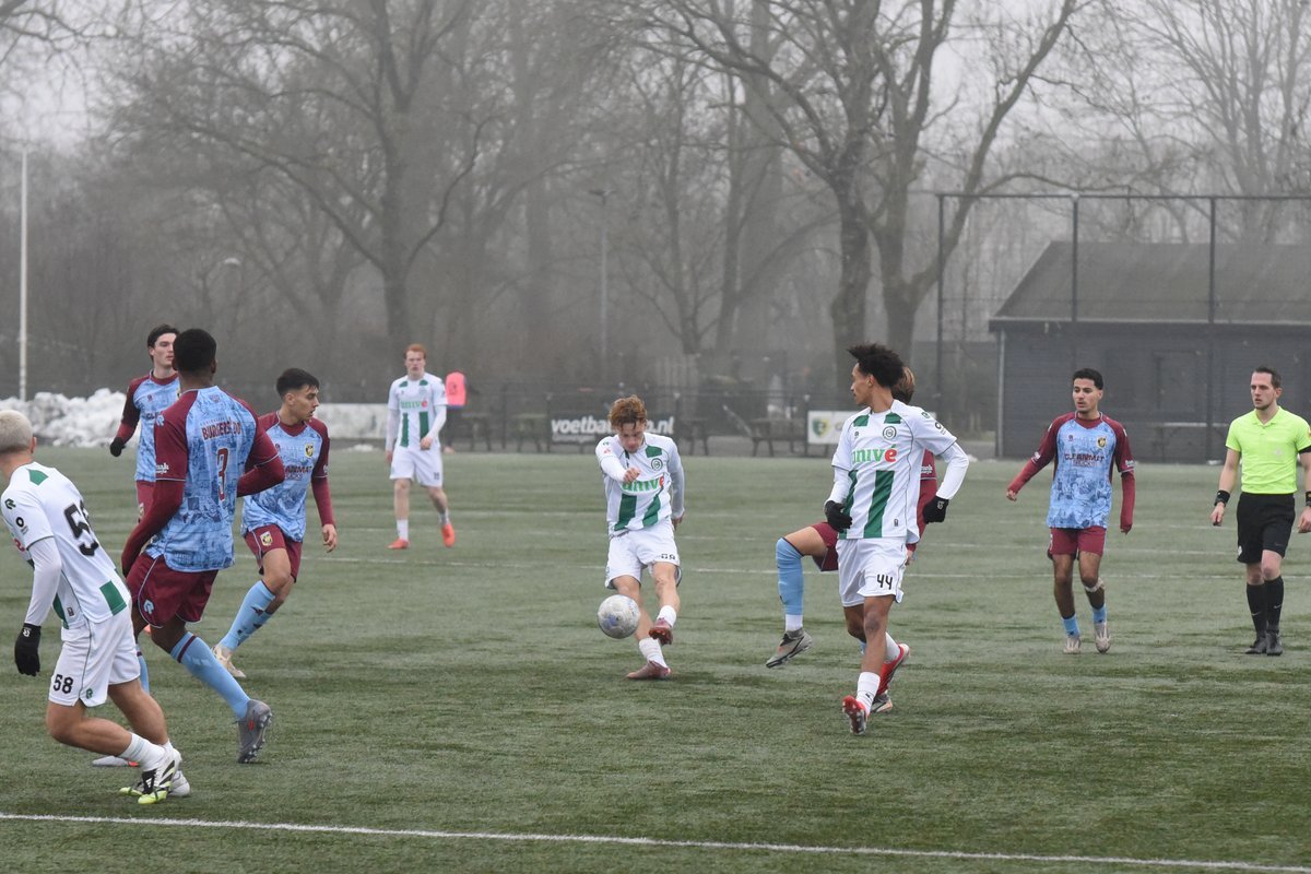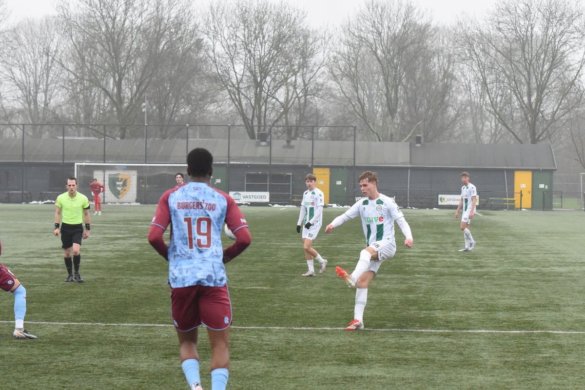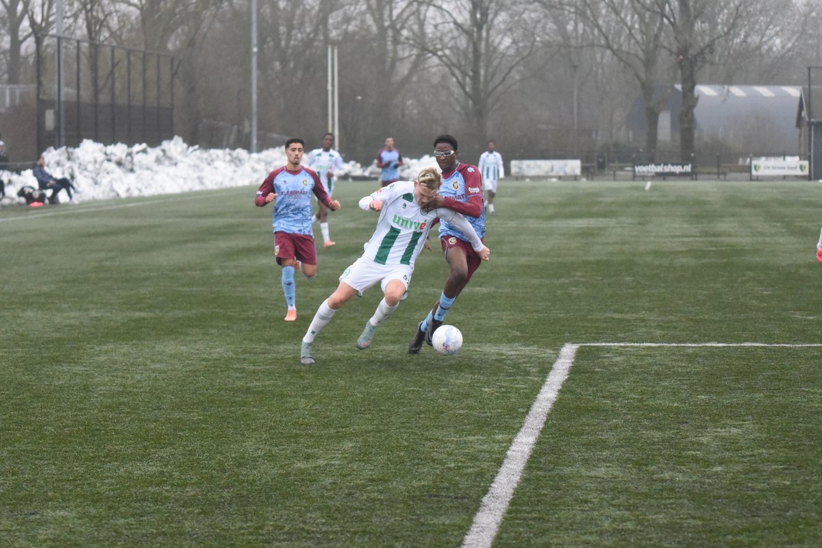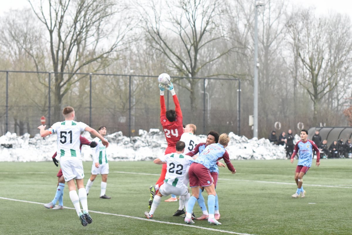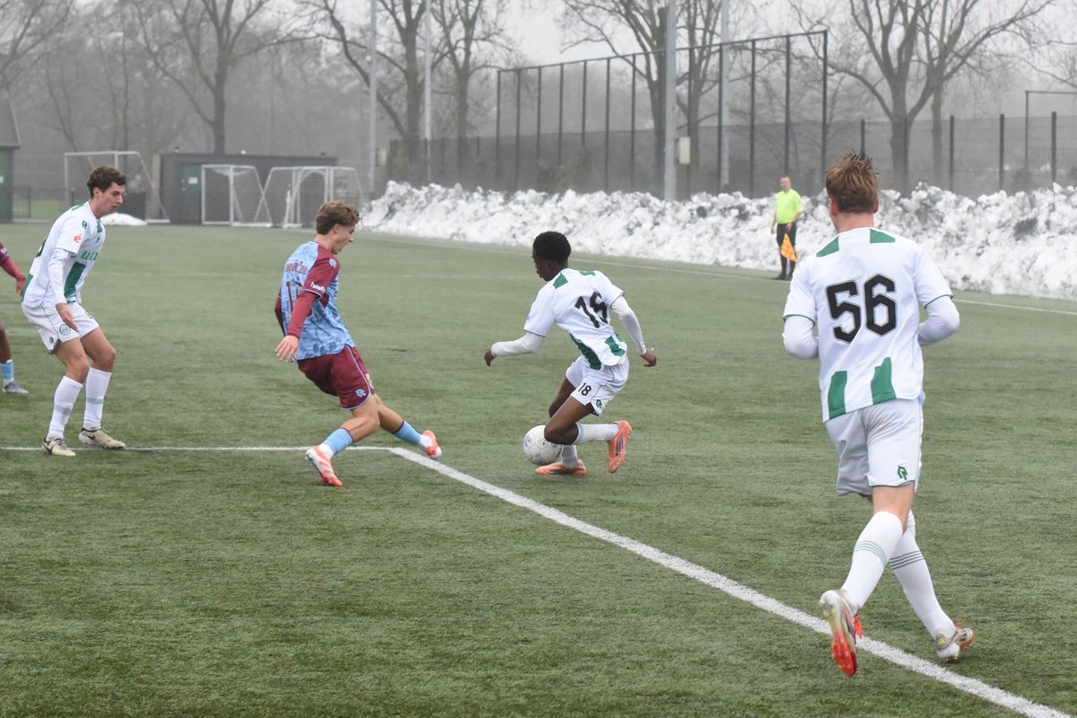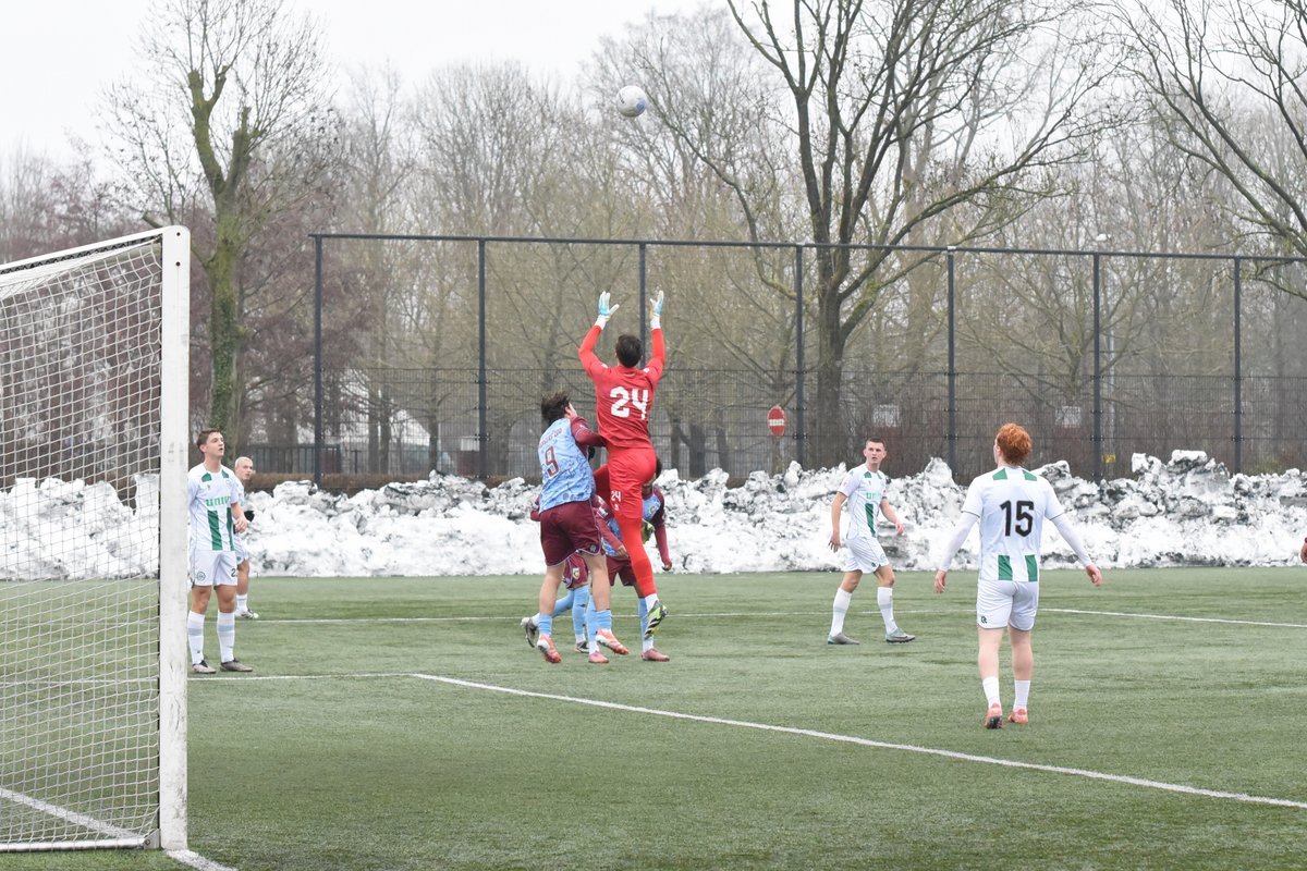 Na het behaalde kampioenschap in de najaarscompetitie en een verdiende rust traden de mannen van FC Groningen o21 vanmiddag op Corpus den Hoorn in de eerste wedstrijd van 2026 aan tegen Vitesse o21. Het leek wel of de wedstrijd in Oostenrijk of zo gespeeld werd want zulke hoge bergen sneeuw lagen er langs het veld. Het veld was daarentegen prima bespeelbaar.