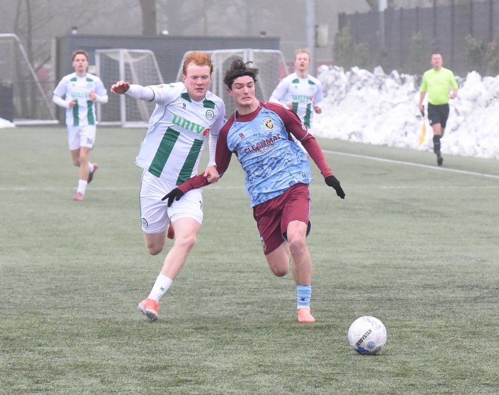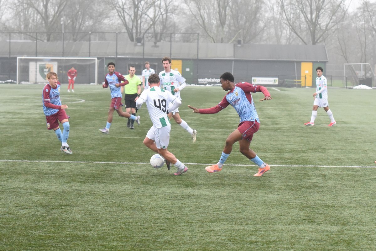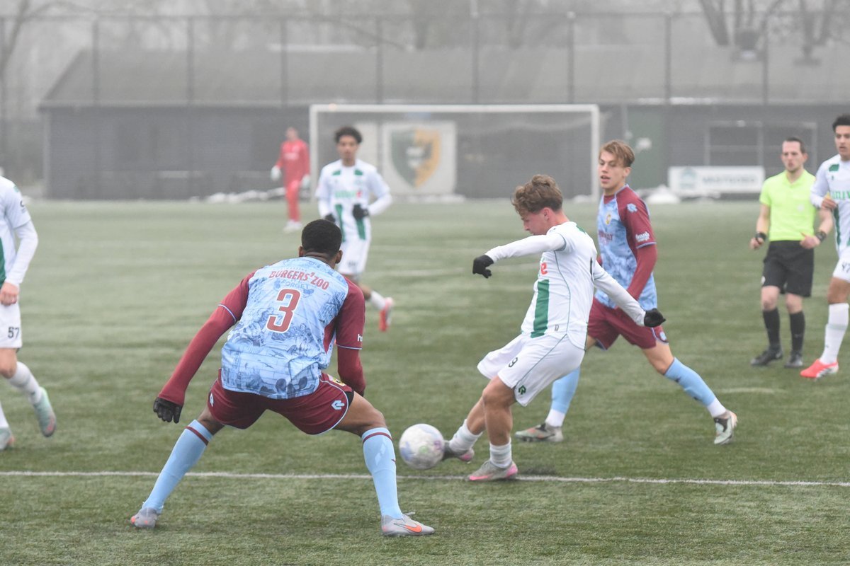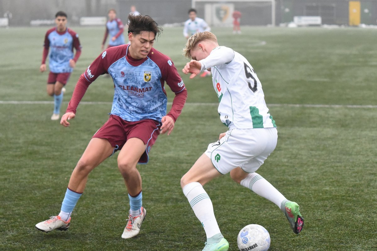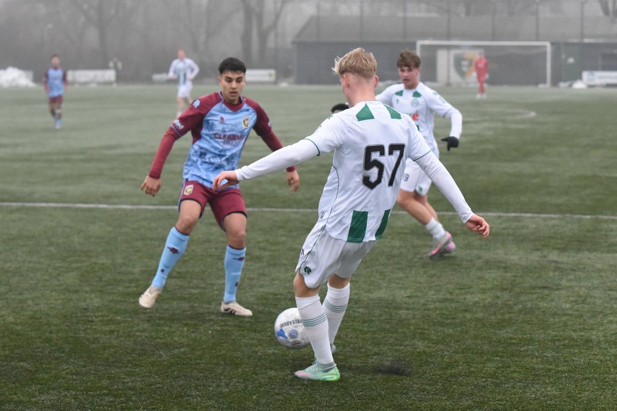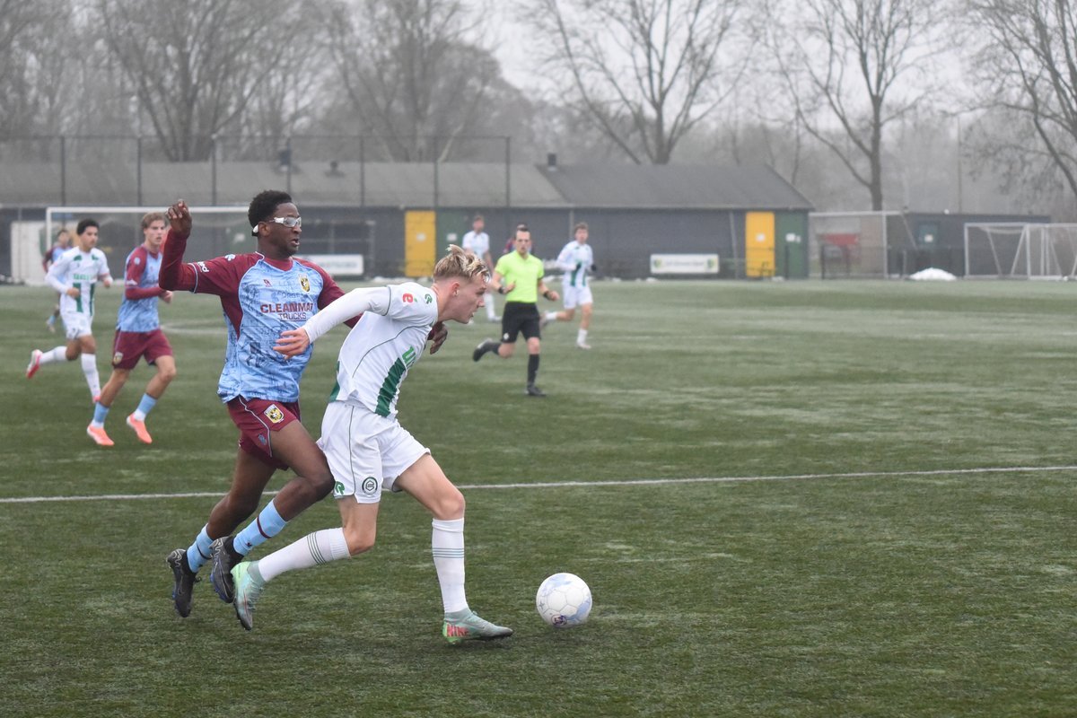 Na het behaalde kampioenschap in de najaarscompetitie en een verdiende rust traden de mannen van FC Groningen o21 vanmiddag op Corpus den Hoorn in de eerste wedstrijd van 2026 aan tegen Vitesse o21. Het leek wel of de wedstrijd in Oostenrijk of zo gespeeld werd want zulke hoge bergen sneeuw lagen er langs het veld. Het veld was daarentegen prima bespeelbaar.