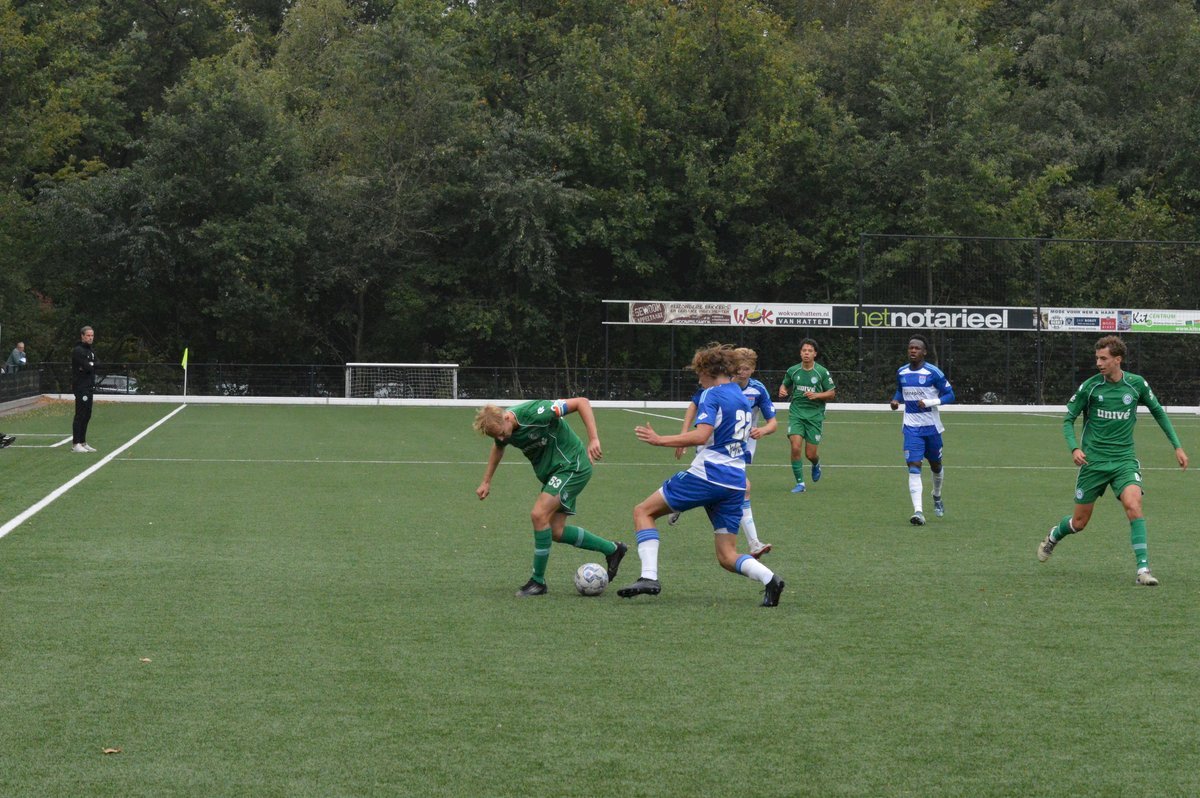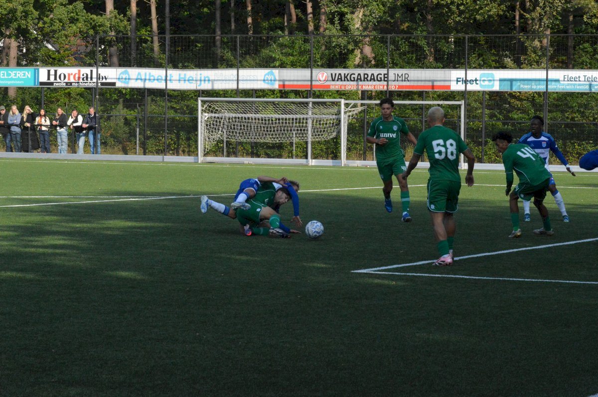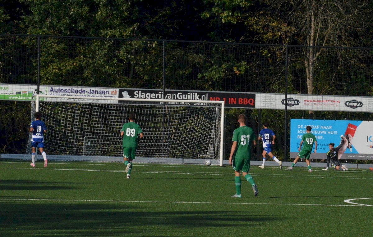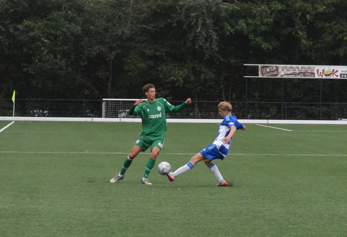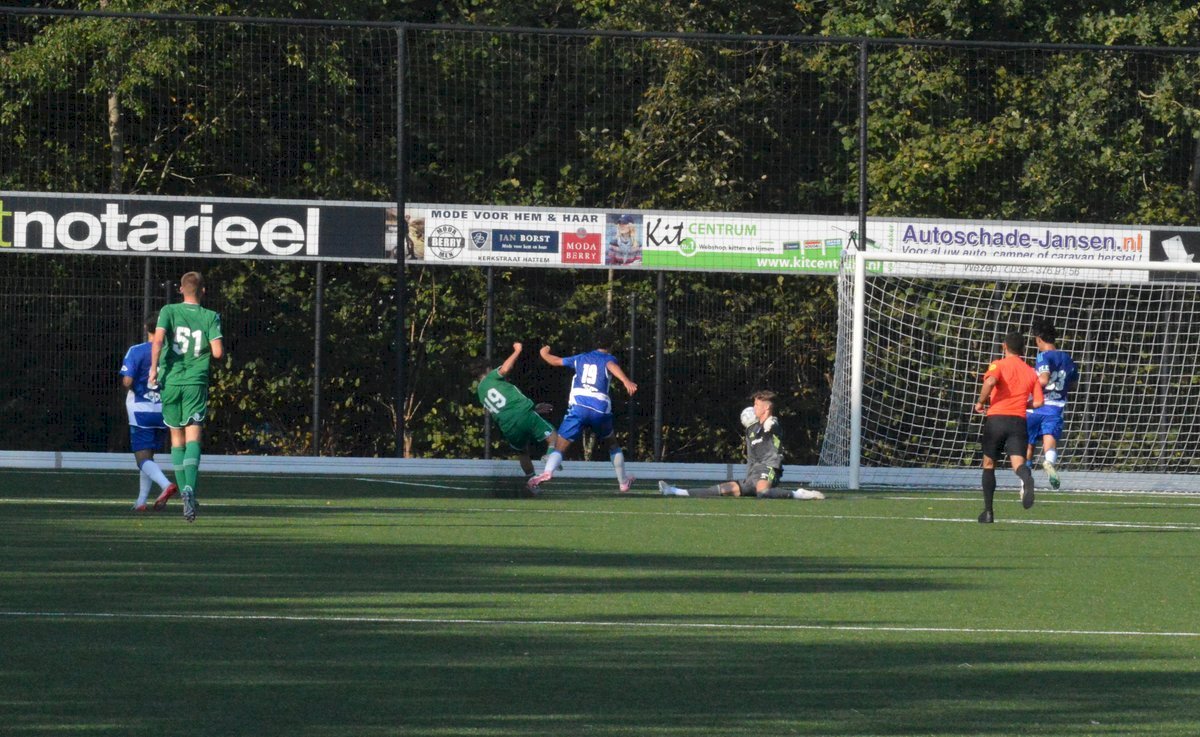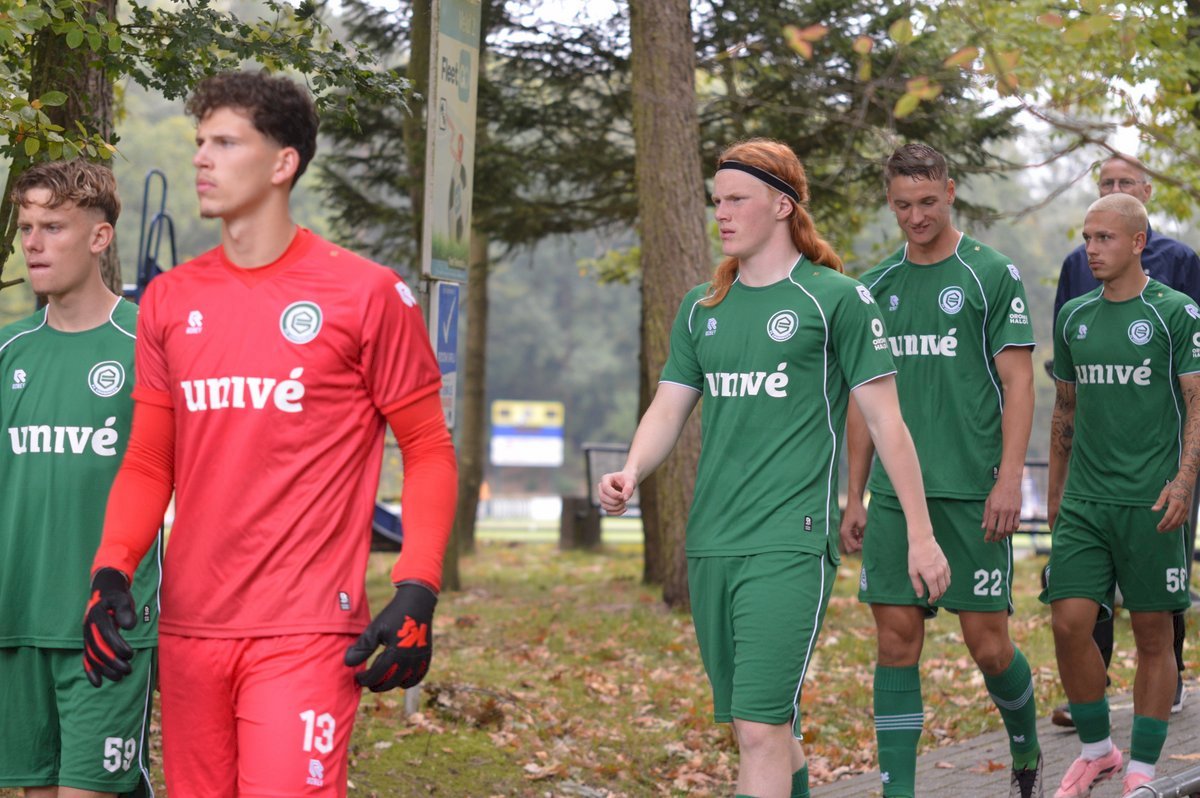 Vanaf het begin van de wedstrijd was niet te zien dat de thuisploeg nog geen punten hadden want men maakte het FC Groningen best wel moeilijk en gaven prima partij. Toch zag men in de eerste helft niet echt veel grote kansen en hoefden beide doelmannen bijna geen beslissende reddingen brengen. Ondanks dat er weinig grote kansen viel te noteren was het geen slechte wedstrijd om te bekijken en misschien mocht je van FC Groningen wel iets meer verwachten gezien de stand dus op de ranglijst. Als er echte kansen waren dan waren die wel voor FC Groningen want een schot van Levi Roeland kon ternauwernood gepareerd worden door doelman Len Bakker en een stiftbal van Marco Speelman eindige op de paal. Het bleef bij rust 0-0.