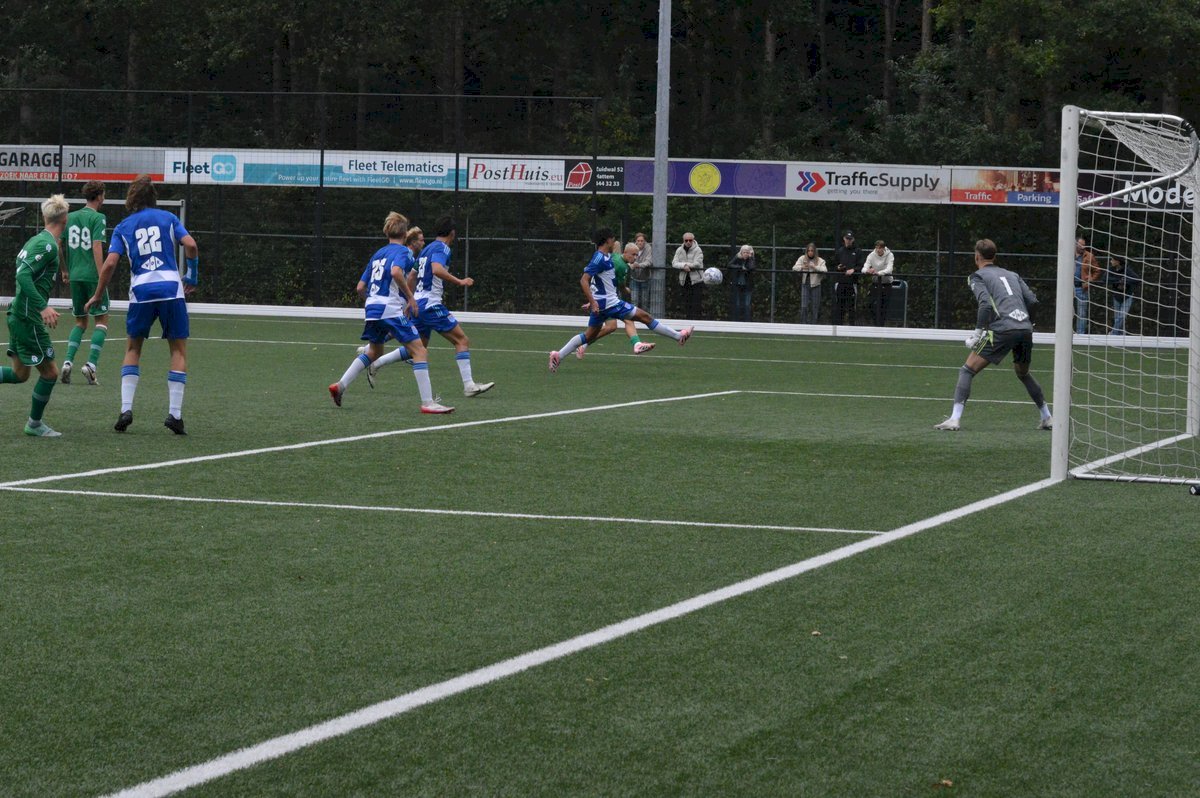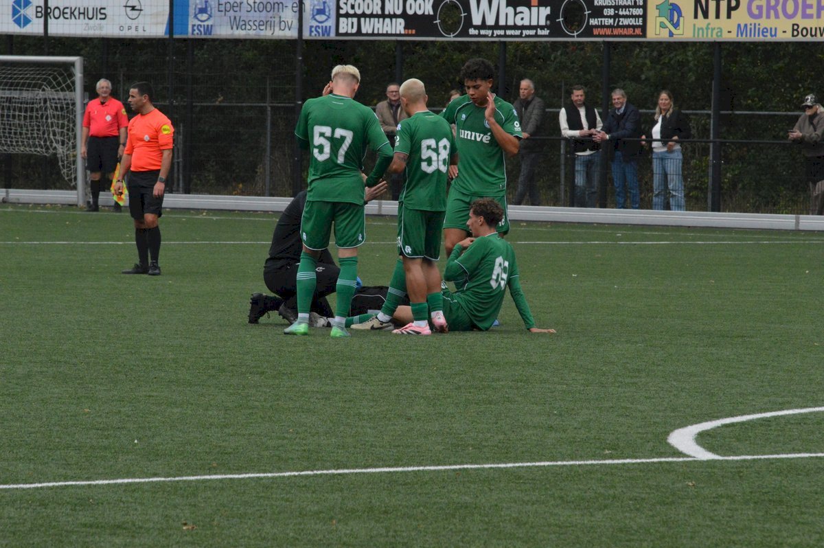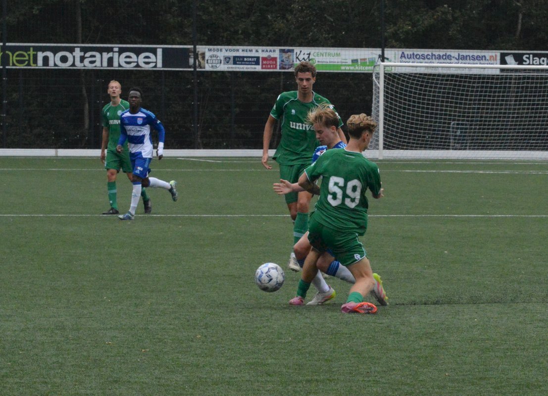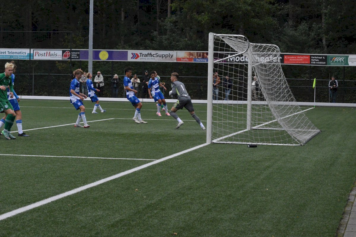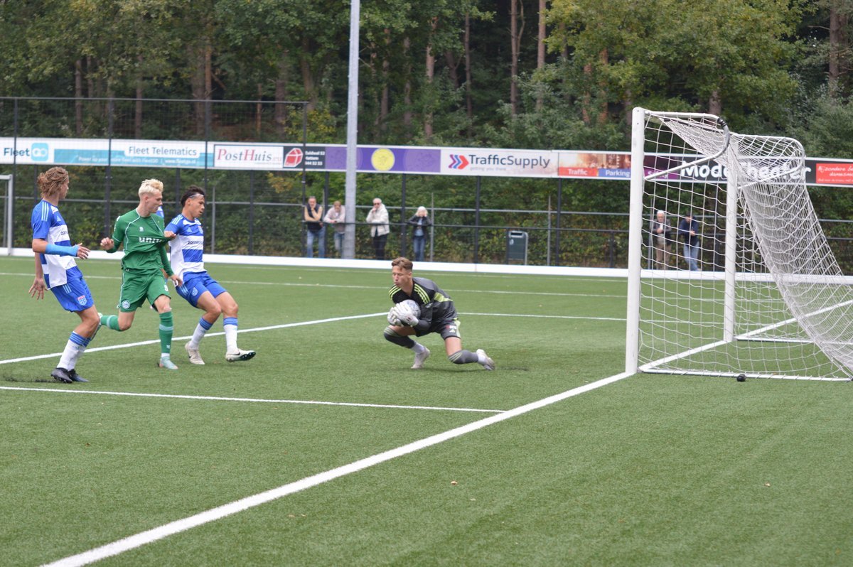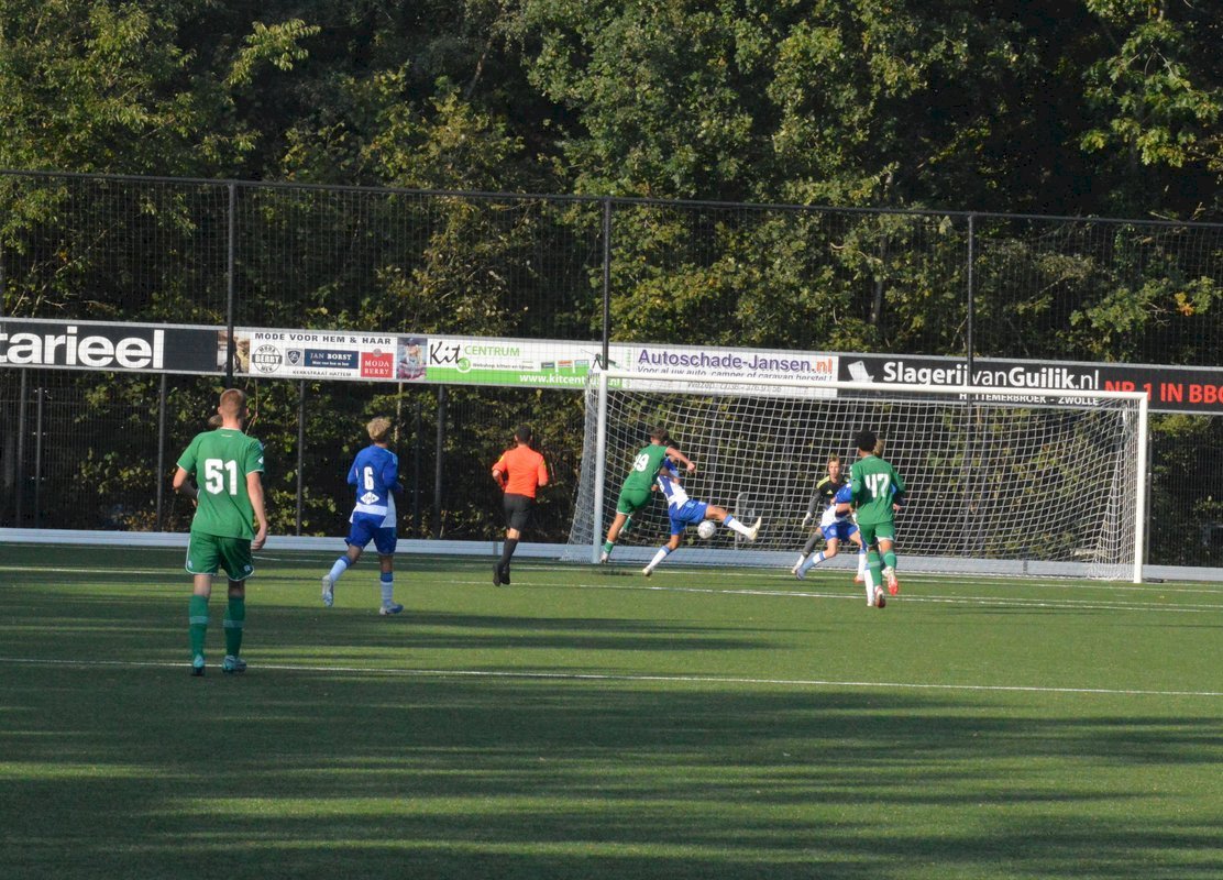 Vanaf het begin van de wedstrijd was niet te zien dat de thuisploeg nog geen punten hadden want men maakte het FC Groningen best wel moeilijk en gaven prima partij. Toch zag men in de eerste helft niet echt veel grote kansen en hoefden beide doelmannen bijna geen beslissende reddingen brengen. Ondanks dat er weinig grote kansen viel te noteren was het geen slechte wedstrijd om te bekijken en misschien mocht je van FC Groningen wel iets meer verwachten gezien de stand dus op de ranglijst. Als er echte kansen waren dan waren die wel voor FC Groningen want een schot van Levi Roeland kon ternauwernood gepareerd worden door doelman Len Bakker en een stiftbal van Marco Speelman eindige op de paal. Het bleef bij rust 0-0.