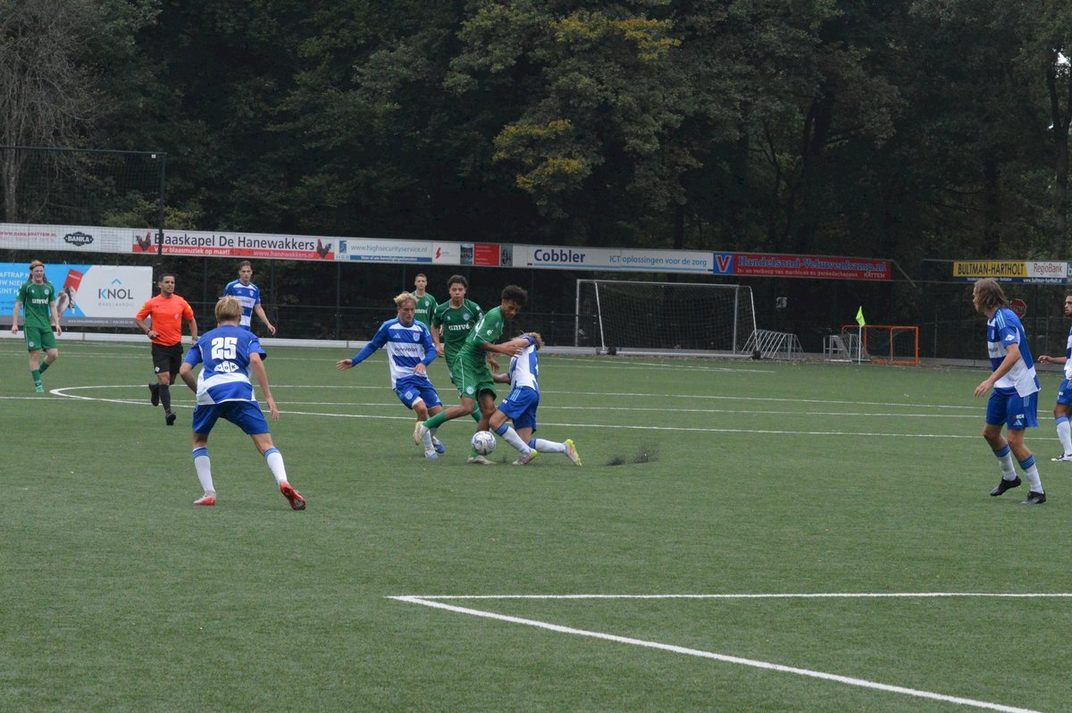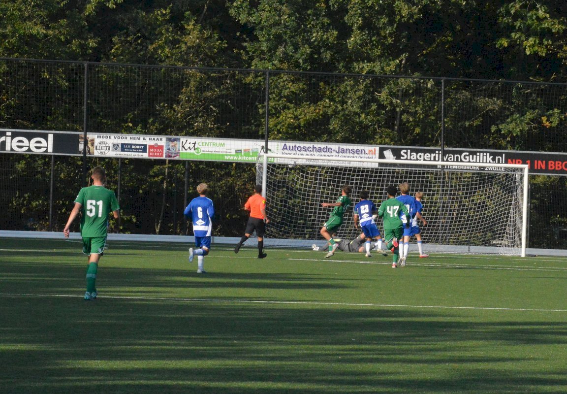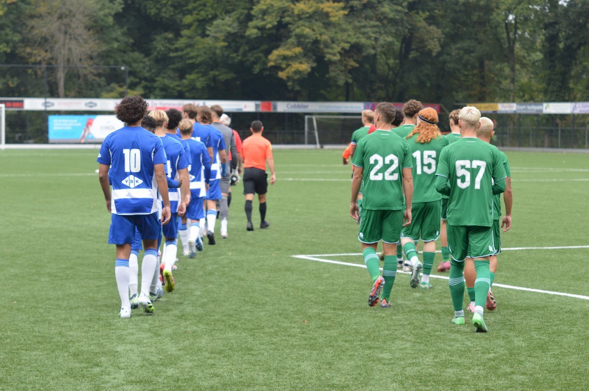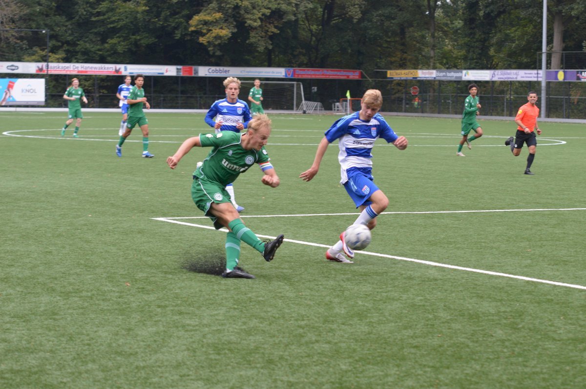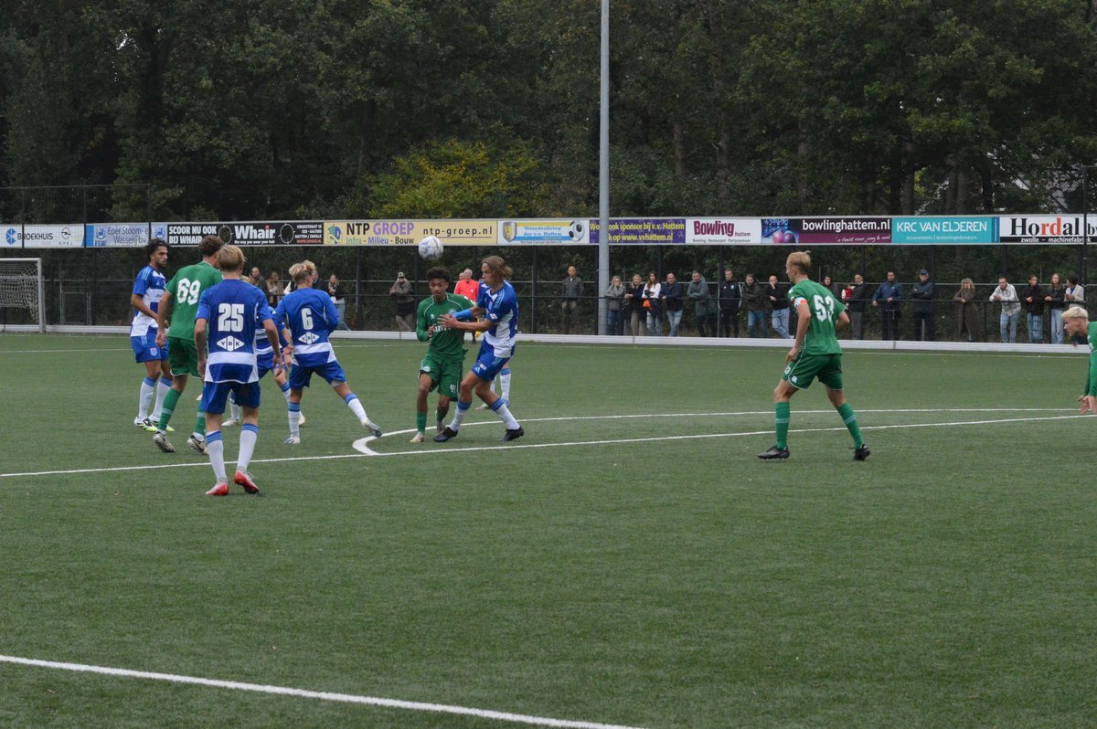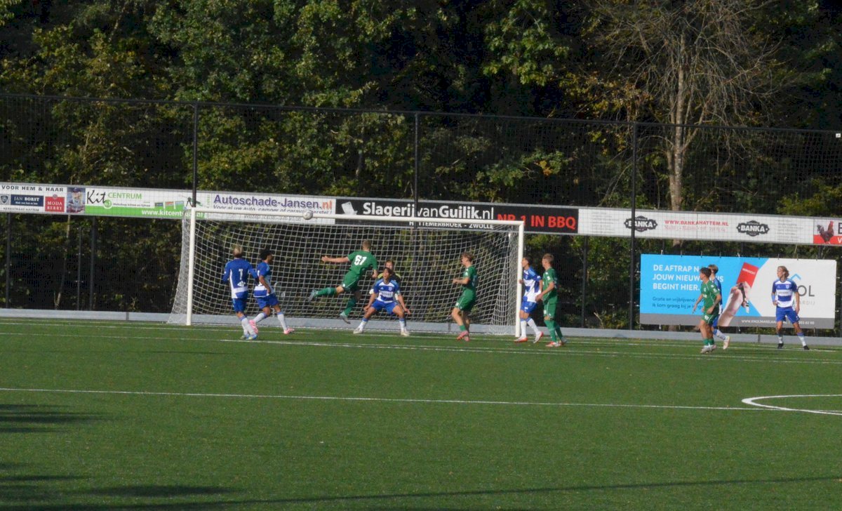 Vanaf het begin van de wedstrijd was niet te zien dat de thuisploeg nog geen punten hadden want men maakte het FC Groningen best wel moeilijk en gaven prima partij. Toch zag men in de eerste helft niet echt veel grote kansen en hoefden beide doelmannen bijna geen beslissende reddingen brengen. Ondanks dat er weinig grote kansen viel te noteren was het geen slechte wedstrijd om te bekijken en misschien mocht je van FC Groningen wel iets meer verwachten gezien de stand dus op de ranglijst. Als er echte kansen waren dan waren die wel voor FC Groningen want een schot van Levi Roeland kon ternauwernood gepareerd worden door doelman Len Bakker en een stiftbal van Marco Speelman eindige op de paal. Het bleef bij rust 0-0.