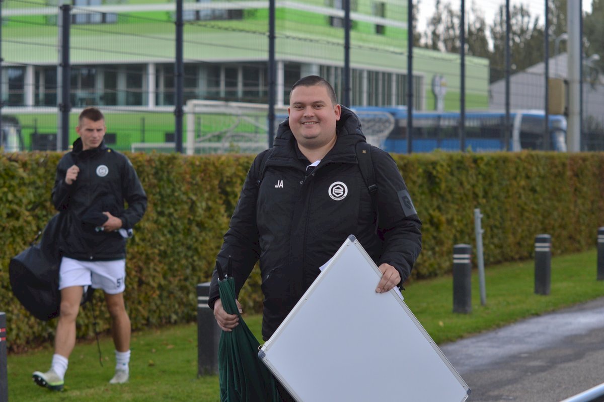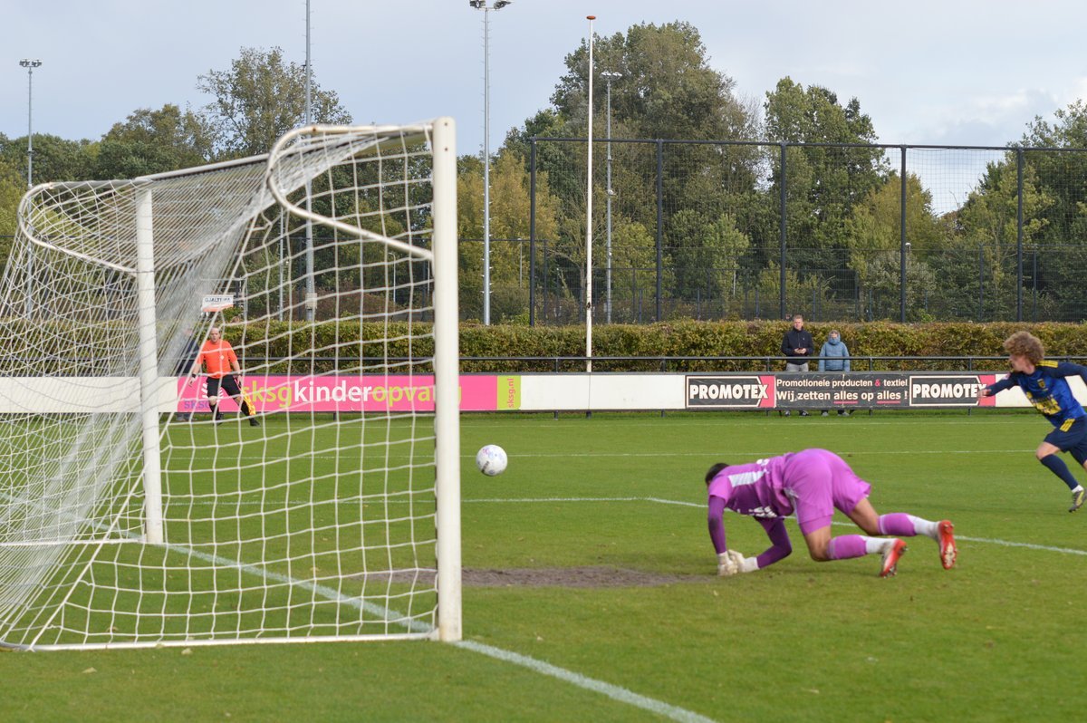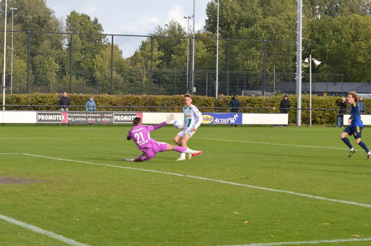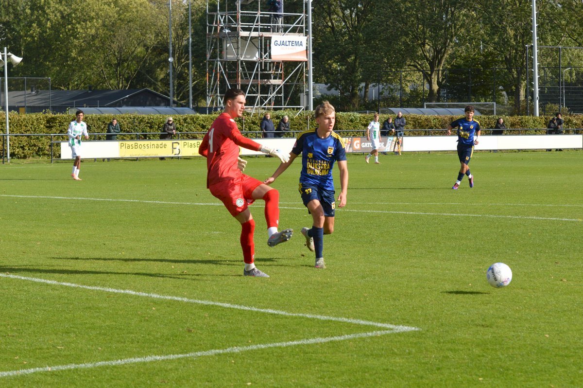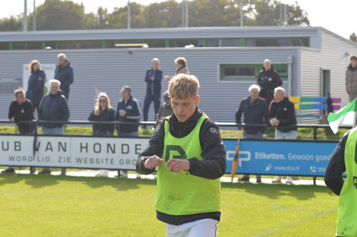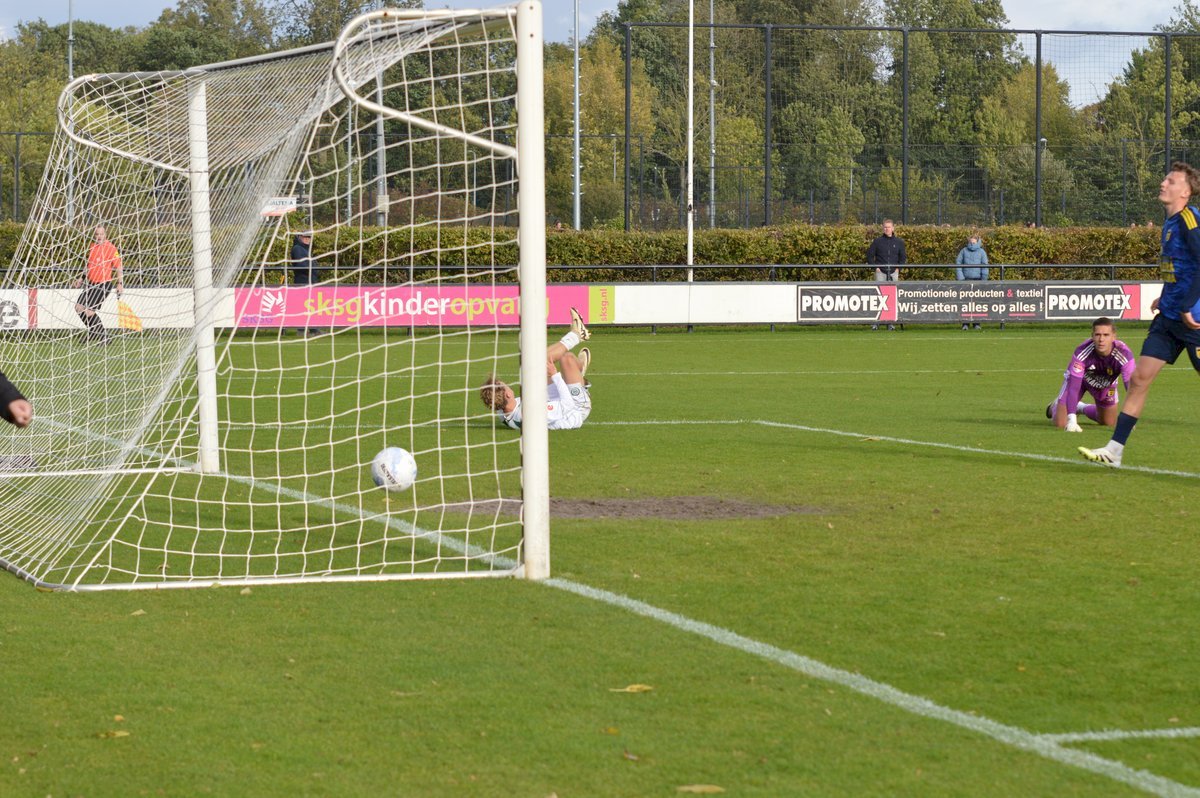 Vanmiddag op Sportpark Corpus den Hoorn in Groningen de topper in de Onder 21 Competitie Divisie 1 tussen de nummer één SC Cambuur o21 en de nummer twee FC Groningen o21. De Leeuwwarders hadden twee punten meer dan de Groningers dus bij winst van SC Cambuur liepen ze uit en bij winst van FC Groningen namen de Groningers de voorlopig koppositie over. FC Groningen was al vier wedstrijden op rijd ongeslagen dus het vertrouwen moest wel goed zijn, SC Cambuur was drie wedstrijden op rij ongeslagen. Onder toeziend oog van oud FC Groningen speler Remco Balk werd de wedstrijd gespeeld. Remco speelt tegenwoordig voor SC Cambuur en scoorde gisteravond nog twee keer tegen FC Emmen en bij Emmen scoorde Romano Postema weer. Ook FC Groningen trainer Dick Lukkien was aanwezig. We hebben Cambuur trainer Henk de Jong niet gezien. Omdat het de dag van de scheidsrechters was vandaag kreeg het arbitraal trio een bloemetje aangeboden van FC Groningen, een prachtige geste van de club.