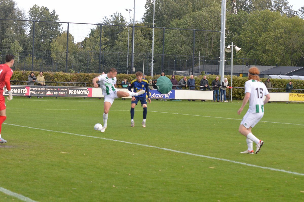 De wedstrijd werd gespeeld met af en toe een regenbui maar ook met harde wind waardoor sommige mensen problemen had met hun parapul. Het werd een prachtige wedstrijd om te zien met twee goed voetballende ploegen met veel snelheid aan beide kanten. De eerste helft waren de Friezen wel iets in het voordeel en kregen ook de meeste mogelijkheden om te scoren. De voorwaartse van SC Cambuur had het vizier niet altijd op scherp en via prima keeperswerk van Dirk Jan Baron bleef het lang 0-0. In de extra tijd van die eerste helft wist SC Cambuur het net wel te vinden. Een harde pegel van dichtbij werd in eerste instantie nog prima gekeerd door Dirk Jan Baron maar in de rebound is het Wiebe Kooistra die de 0-1 binnenschiet.