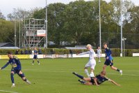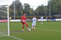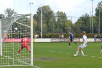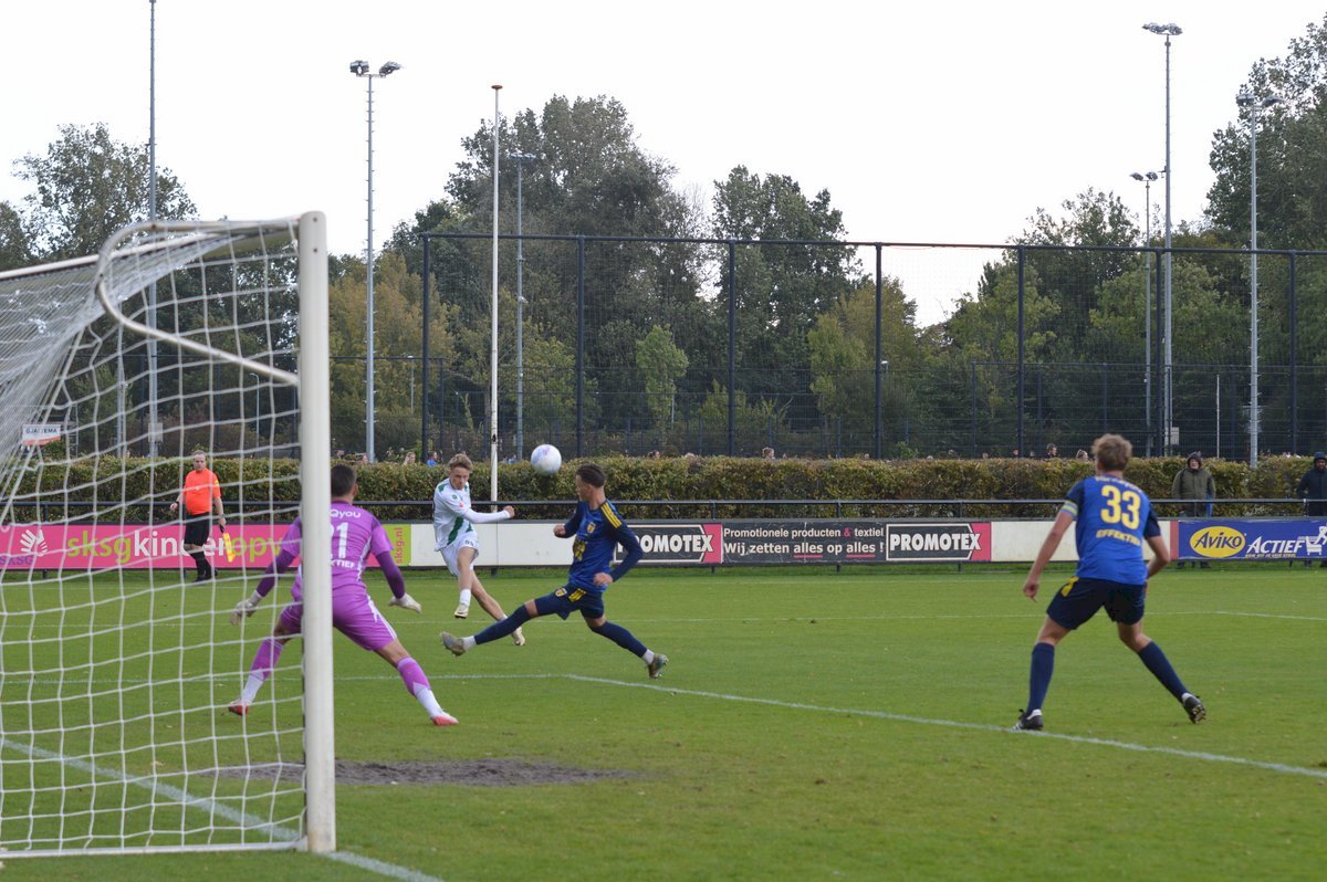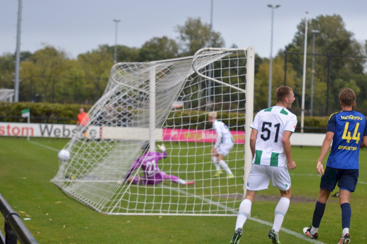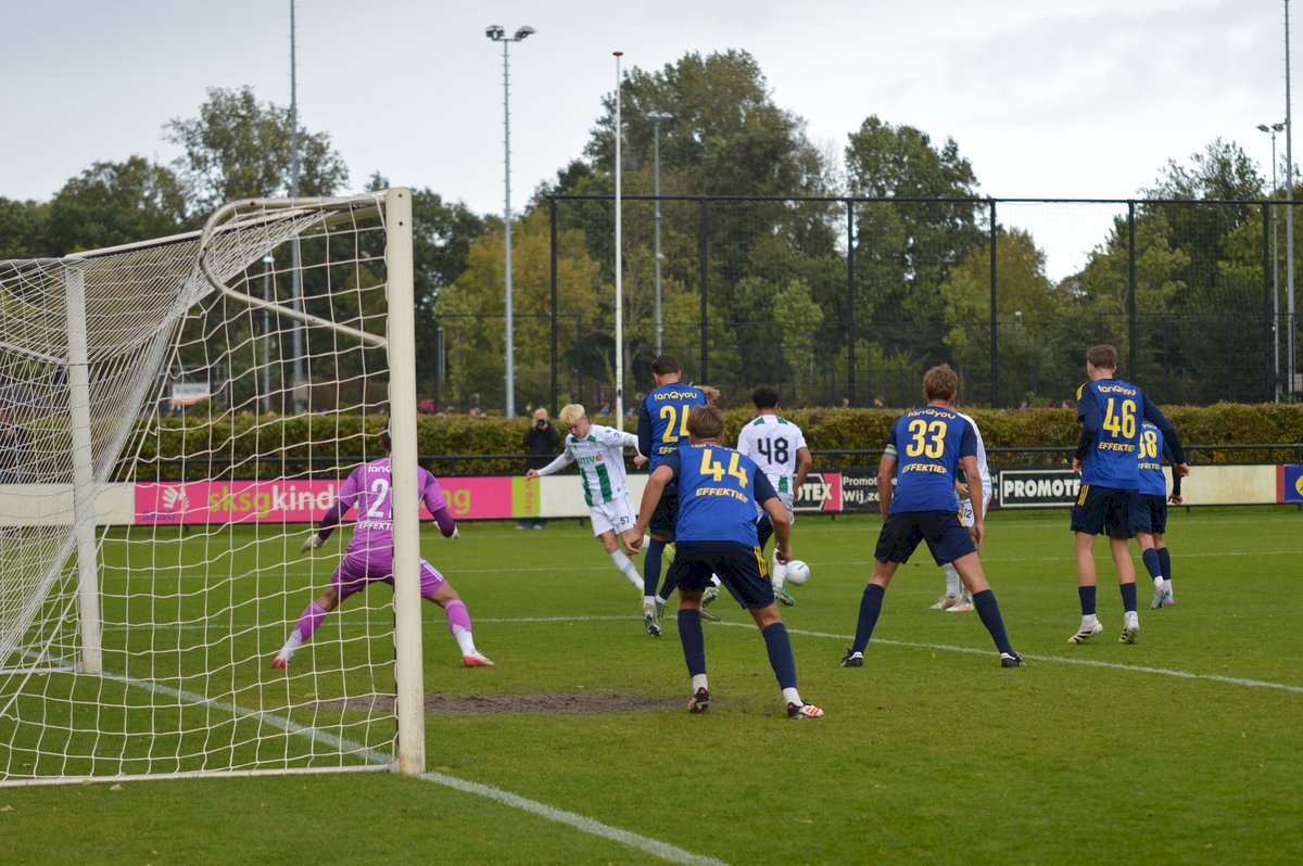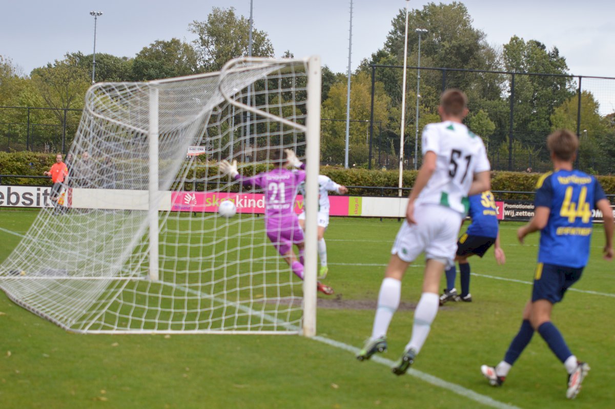 Het spel golfde daarna best wel heen en weer want beide ploegen gingen nog voor de drie punten. De grote kansen waren toch voor de thuisploeg en in de 90ste minuut kreeg FC Groningen de beloning. Een aanval via de linkerkant werd werkelijk fantastisch voorgegeven door Marco Speelman en bij de tweede paal stond Nils Eggens en die passeerde Jasper Meijster met ene krachtige kopstoot. Helaas is de foto wat wazig geworden maar we willen u hem wel laten zien dus plaatsen we hem. Hier bleef het dan bij en zo won FC Groningen met 2-1 en is het de nieuwe koploper in de stand.
