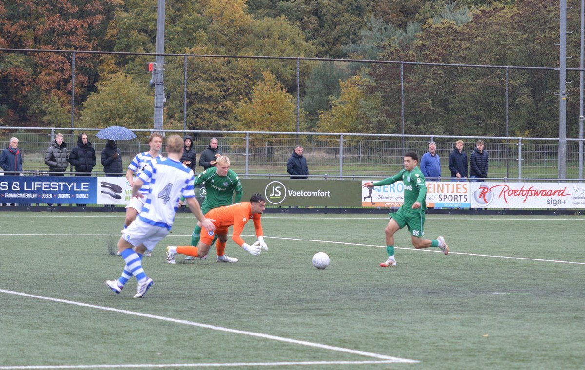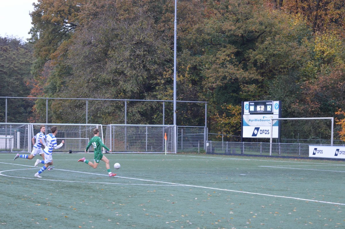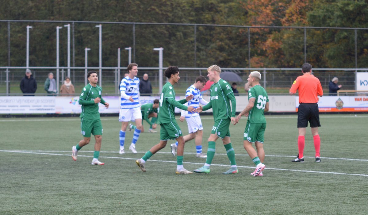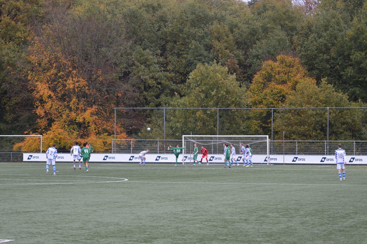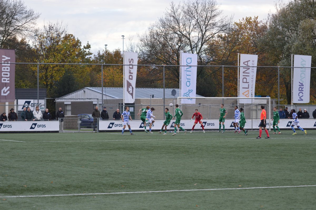 FC Groningen begon prima aan de wedstrijd en was duidelijk de betere ploeg in de eerste helft en al in de vierde minuut kwam de ploeg op voorsprong. Doelman Sten Kremers van de thuisploeg lijkt zich te vergissen als hij een bal kan oppakken en Yenio Holder komt er dan tussen maar de doelman tikt de bal net voor de voeten van Holder weg maar spits Nils Eggens is er dan als de kippen bij om de bal nog wel binnen te schieten, 0-1. Een lekker begin zo.