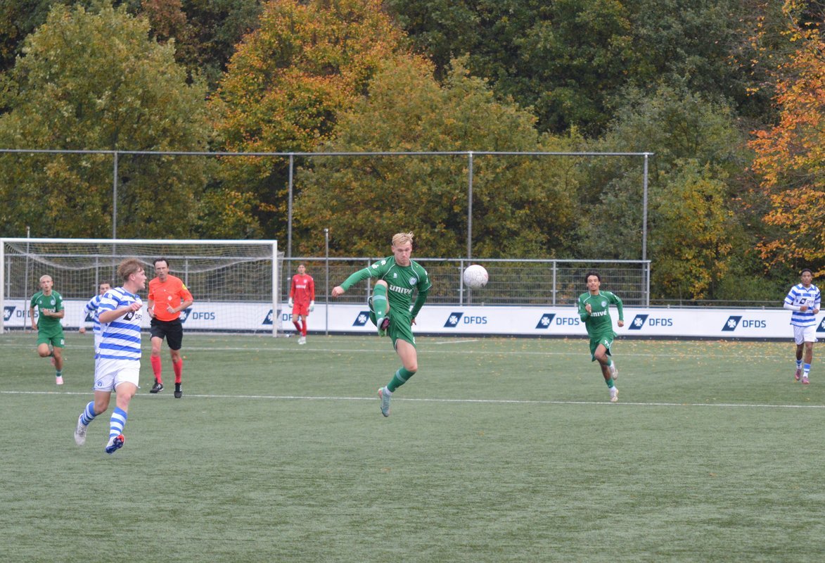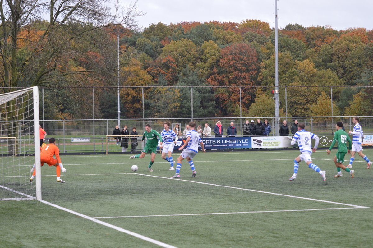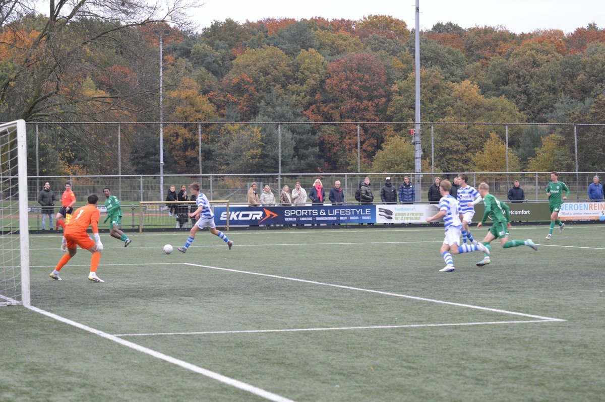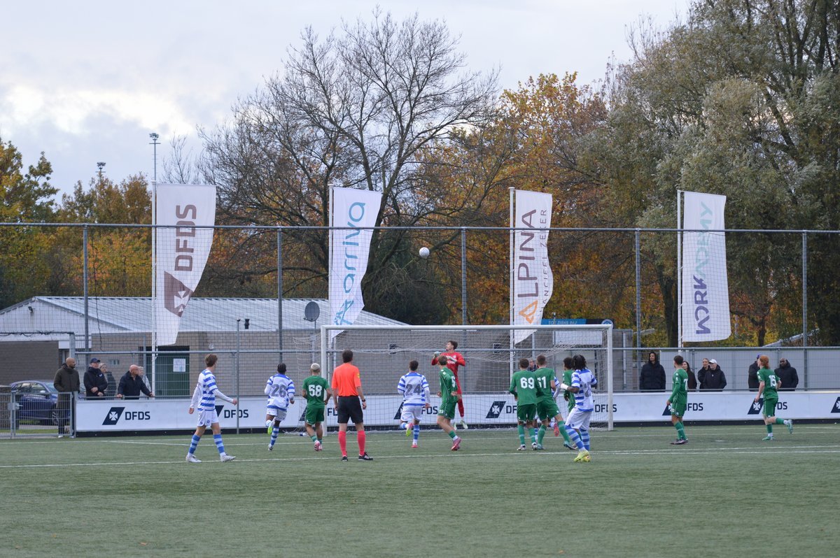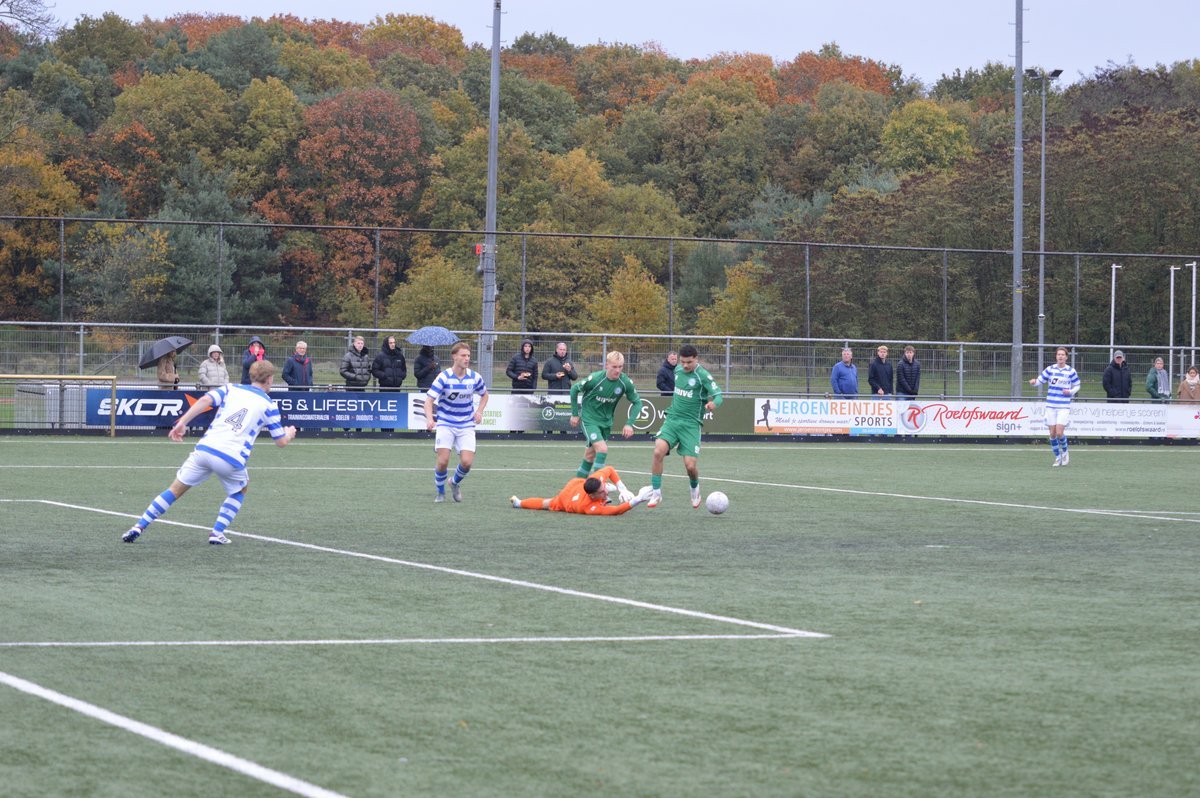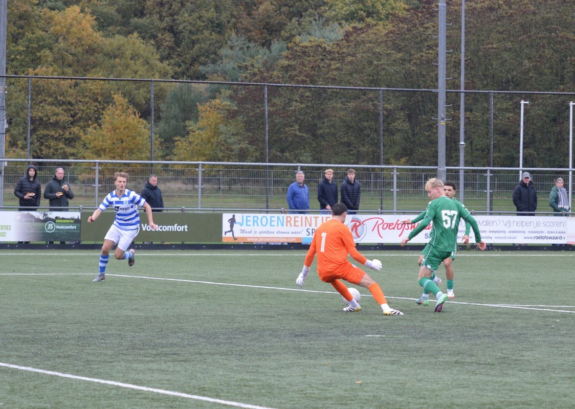 FC Groningen begon prima aan de wedstrijd en was duidelijk de betere ploeg in de eerste helft en al in de vierde minuut kwam de ploeg op voorsprong. Doelman Sten Kremers van de thuisploeg lijkt zich te vergissen als hij een bal kan oppakken en Yenio Holder komt er dan tussen maar de doelman tikt de bal net voor de voeten van Holder weg maar spits Nils Eggens is er dan als de kippen bij om de bal nog wel binnen te schieten, 0-1. Een lekker begin zo.