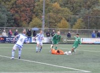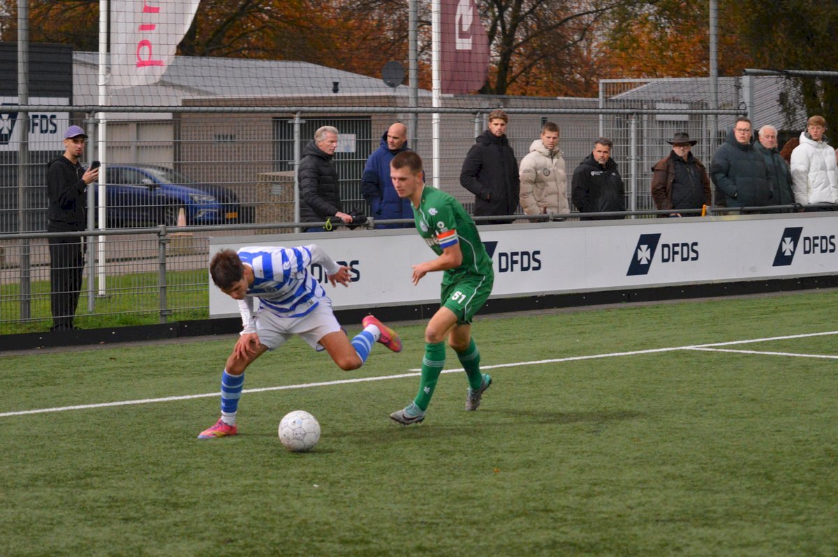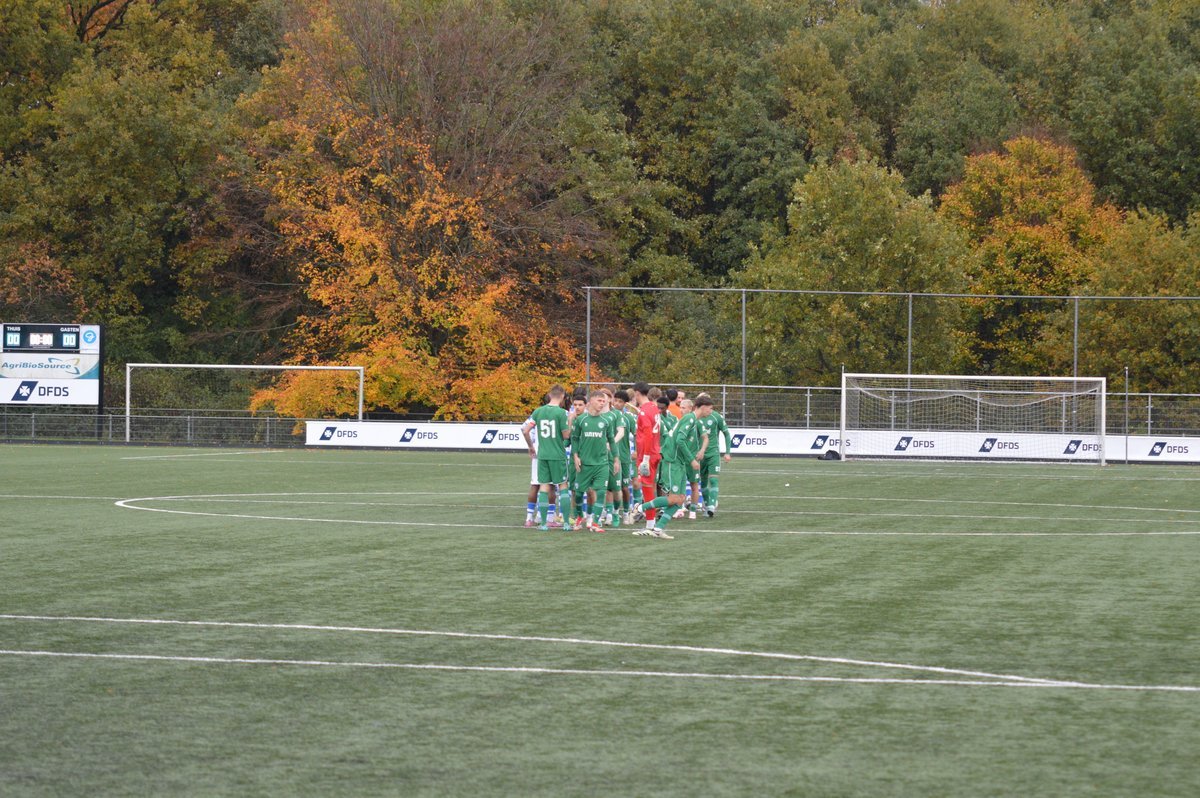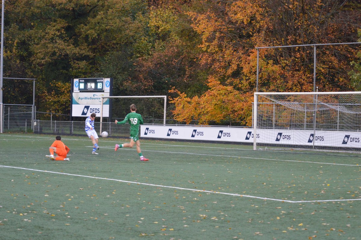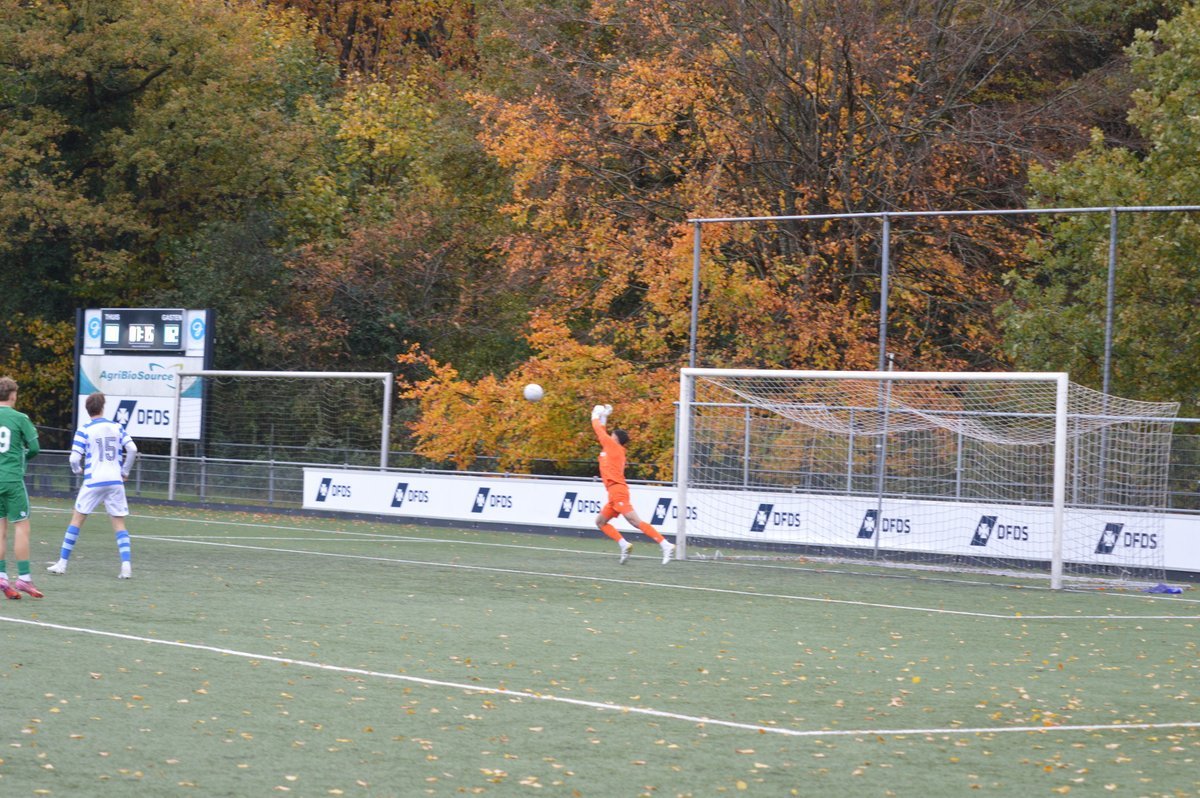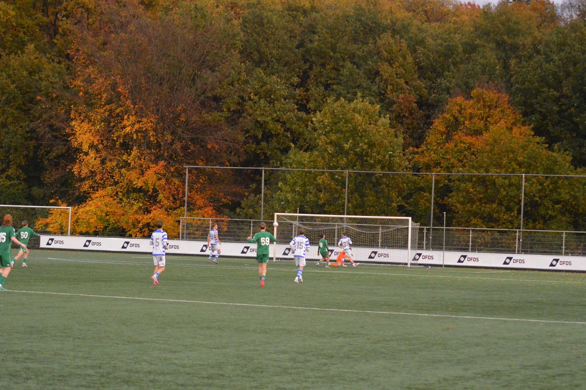 FC Groningen begon prima aan de wedstrijd en was duidelijk de betere ploeg in de eerste helft en al in de vierde minuut kwam de ploeg op voorsprong. Doelman Sten Kremers van de thuisploeg lijkt zich te vergissen als hij een bal kan oppakken en Yenio Holder komt er dan tussen maar de doelman tikt de bal net voor de voeten van Holder weg maar spits Nils Eggens is er dan als de kippen bij om de bal nog wel binnen te schieten, 0-1. Een lekker begin zo.