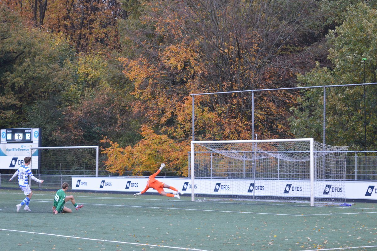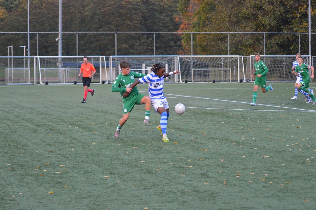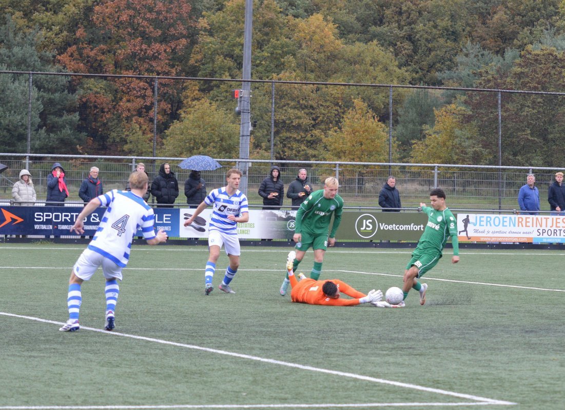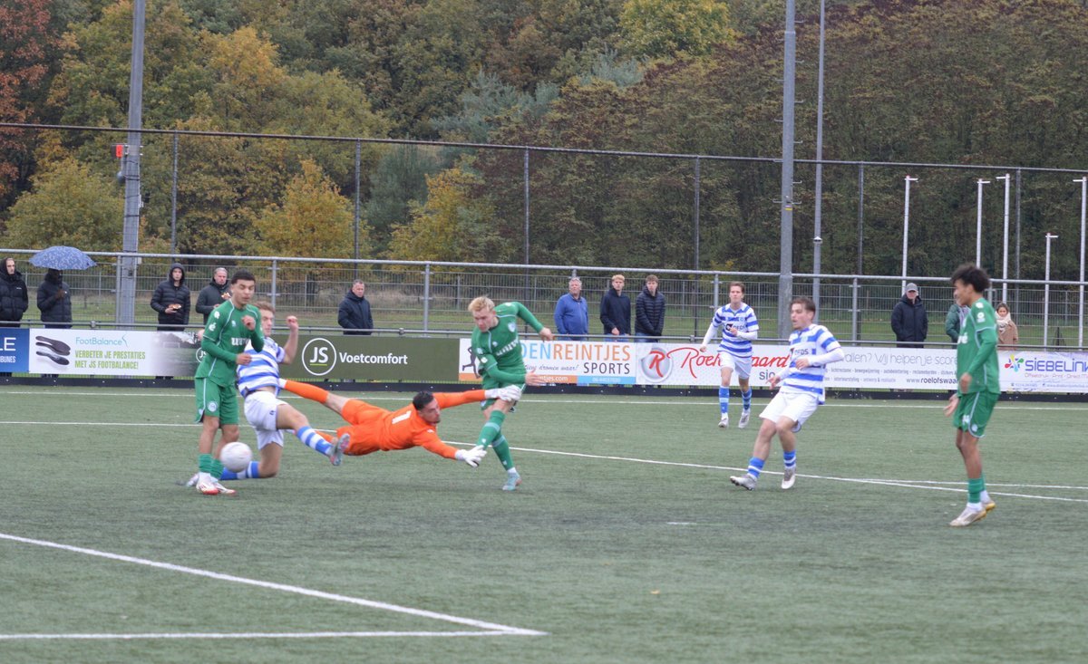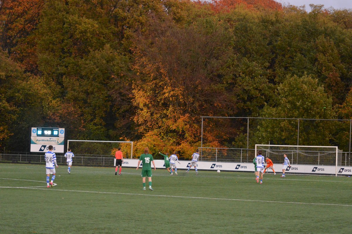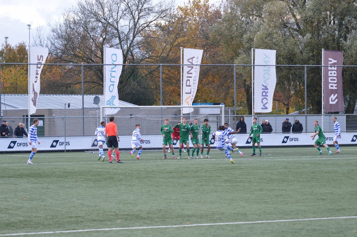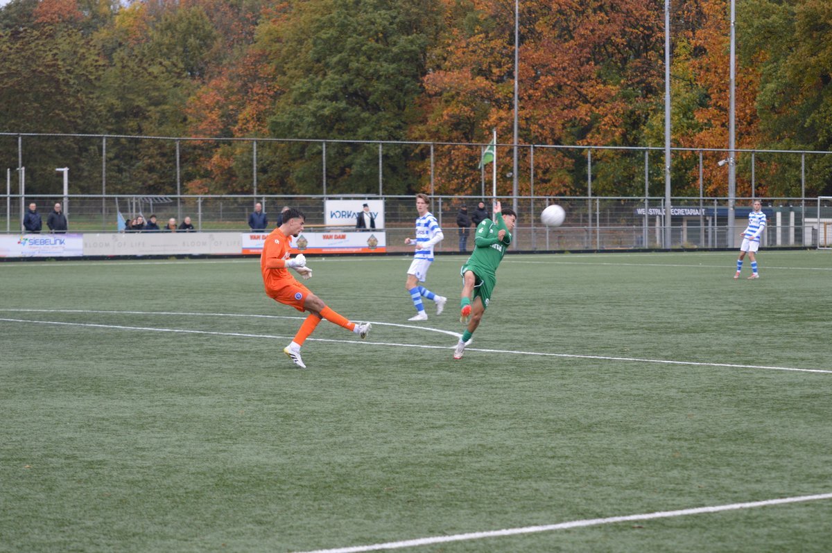 In de 66ste minuut maakte Benjamin Mambo de 1-3 en de thuisploeg ging vol op jacht naar meer. Als in de 70ste minuut dan ook nog Jermain Fernandes nog de 2-3 maakt weet je dat het alle hens aan dek is voor FC Groningen. Via Jari Kolthof en Levi Roeland kregen de Groningers nog kansen om de wedstrijd definitief in het slot te gooien maar beiden faalden oog in oog met de doelman en eigenlijk had de thuisploeg wel een strafschop verdiend in de laatste fase maar de in de tweede helft een zeer warrig fluitende scheidsrechter gaf die niet en daar mochten FC Groningen niet over klagen. Met kunst en vliegwerk soms bleven de mannen overeind en zo bleef het bij de 2-3 en nam FC Groningen qua veldspel wel de winst verdiend mee terug en als men dan ook nog hoort dan concurrent SC Cambuur met 5-4 klop kreeg in Zwolle kon de middag helemaal niet meer stuk. Door die nederlaag neemt FC Groningen de koppositie weer over en heeft nog een inhaalwedstrijd tegoed zelfs. Die wordt gespeeld op dinsdag 18 november op Corpus den Hoorn tegen PEC Zwolle.