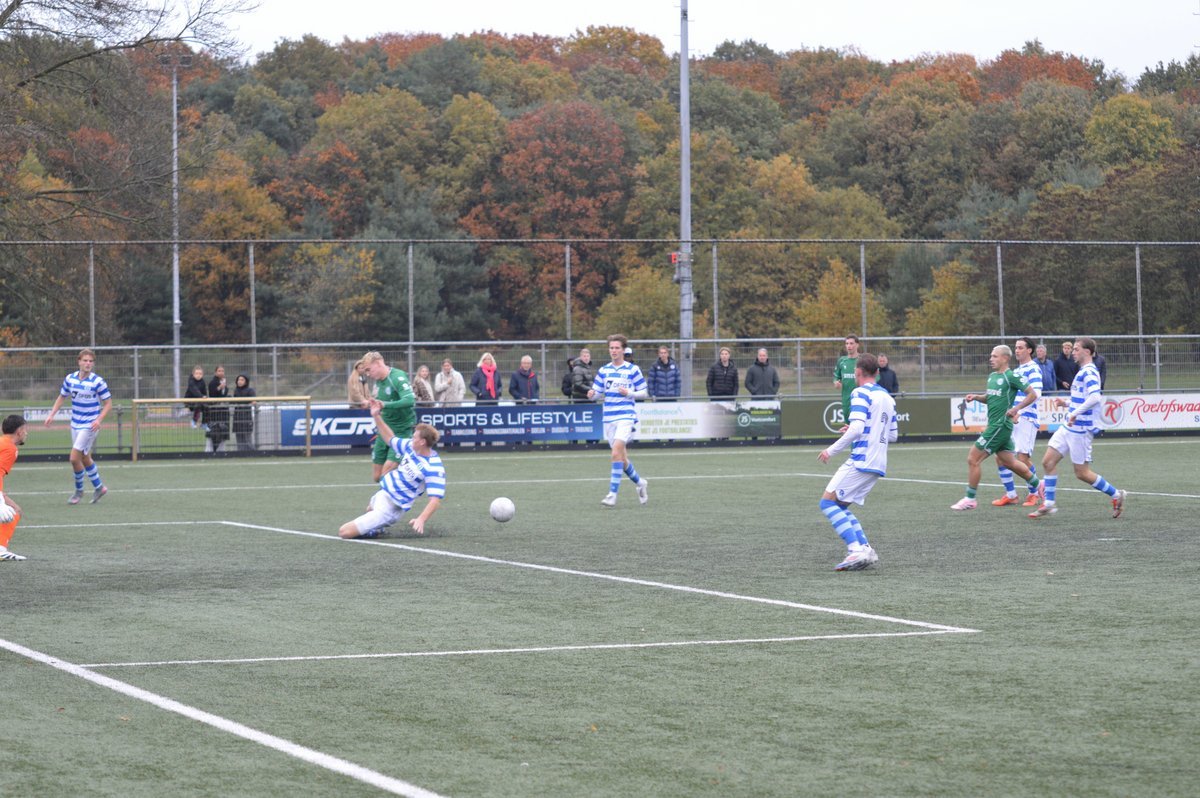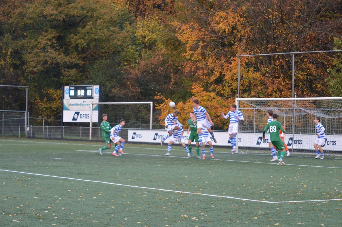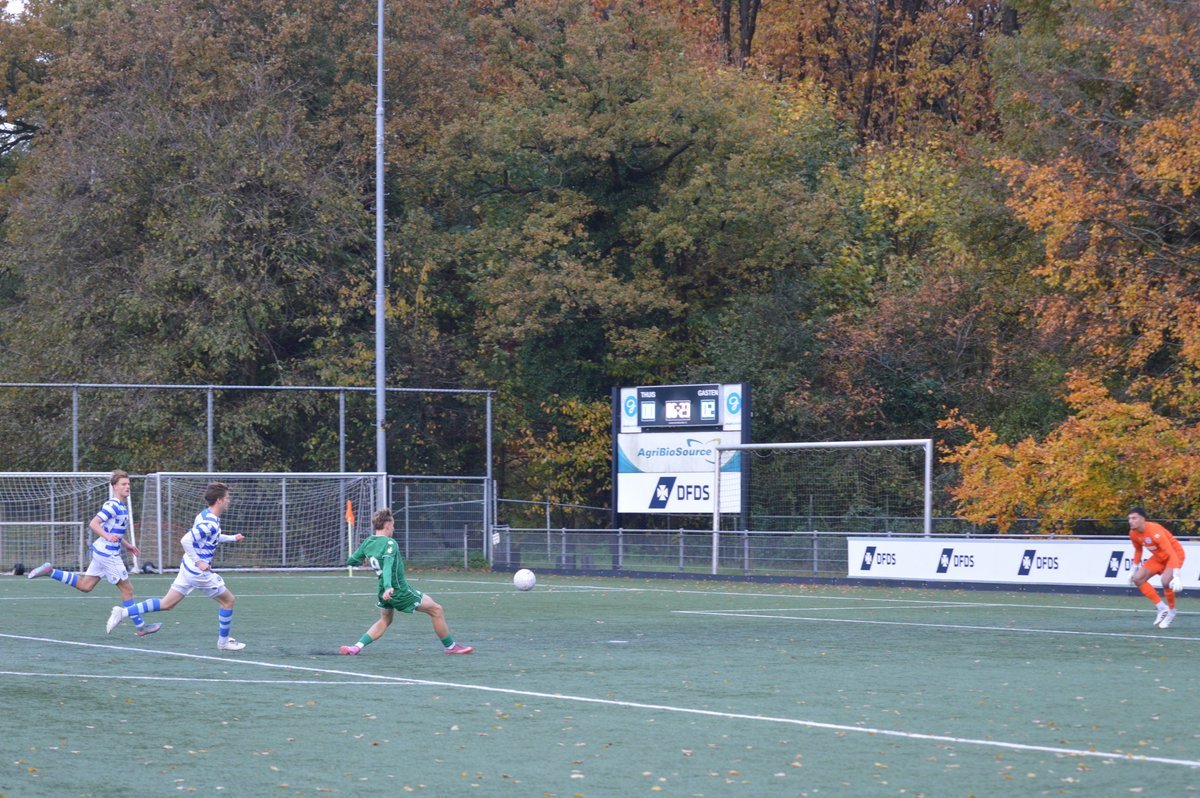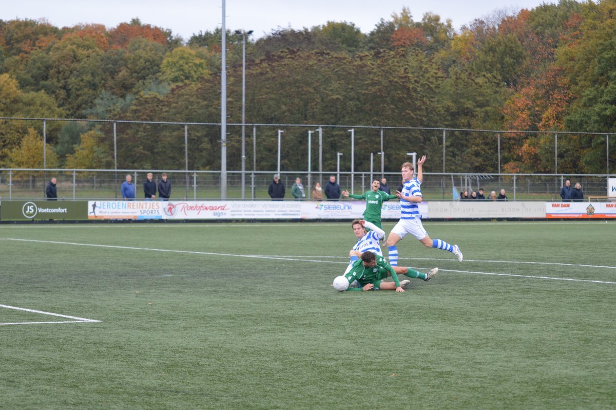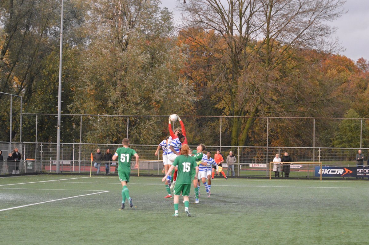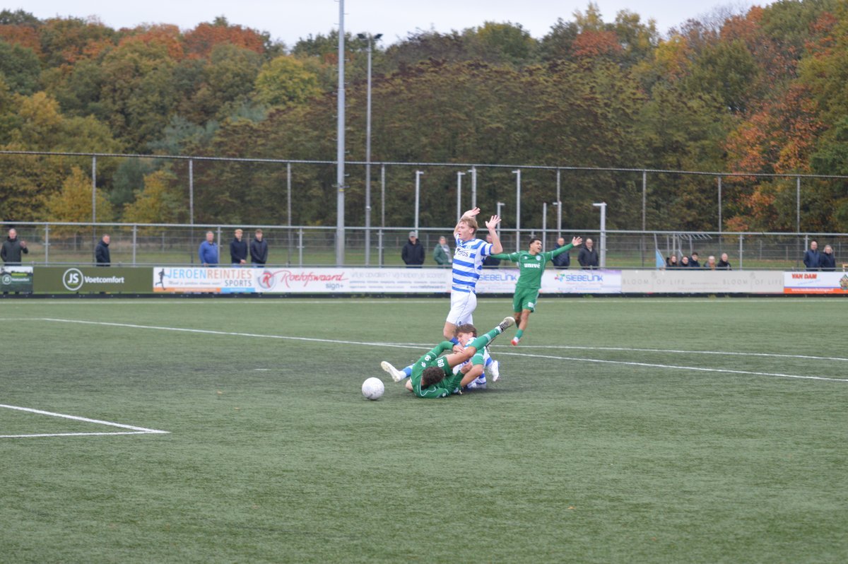 In de 66ste minuut maakte Benjamin Mambo de 1-3 en de thuisploeg ging vol op jacht naar meer. Als in de 70ste minuut dan ook nog Jermain Fernandes nog de 2-3 maakt weet je dat het alle hens aan dek is voor FC Groningen. Via Jari Kolthof en Levi Roeland kregen de Groningers nog kansen om de wedstrijd definitief in het slot te gooien maar beiden faalden oog in oog met de doelman en eigenlijk had de thuisploeg wel een strafschop verdiend in de laatste fase maar de in de tweede helft een zeer warrig fluitende scheidsrechter gaf die niet en daar mochten FC Groningen niet over klagen. Met kunst en vliegwerk soms bleven de mannen overeind en zo bleef het bij de 2-3 en nam FC Groningen qua veldspel wel de winst verdiend mee terug en als men dan ook nog hoort dan concurrent SC Cambuur met 5-4 klop kreeg in Zwolle kon de middag helemaal niet meer stuk. Door die nederlaag neemt FC Groningen de koppositie weer over en heeft nog een inhaalwedstrijd tegoed zelfs. Die wordt gespeeld op dinsdag 18 november op Corpus den Hoorn tegen PEC Zwolle.