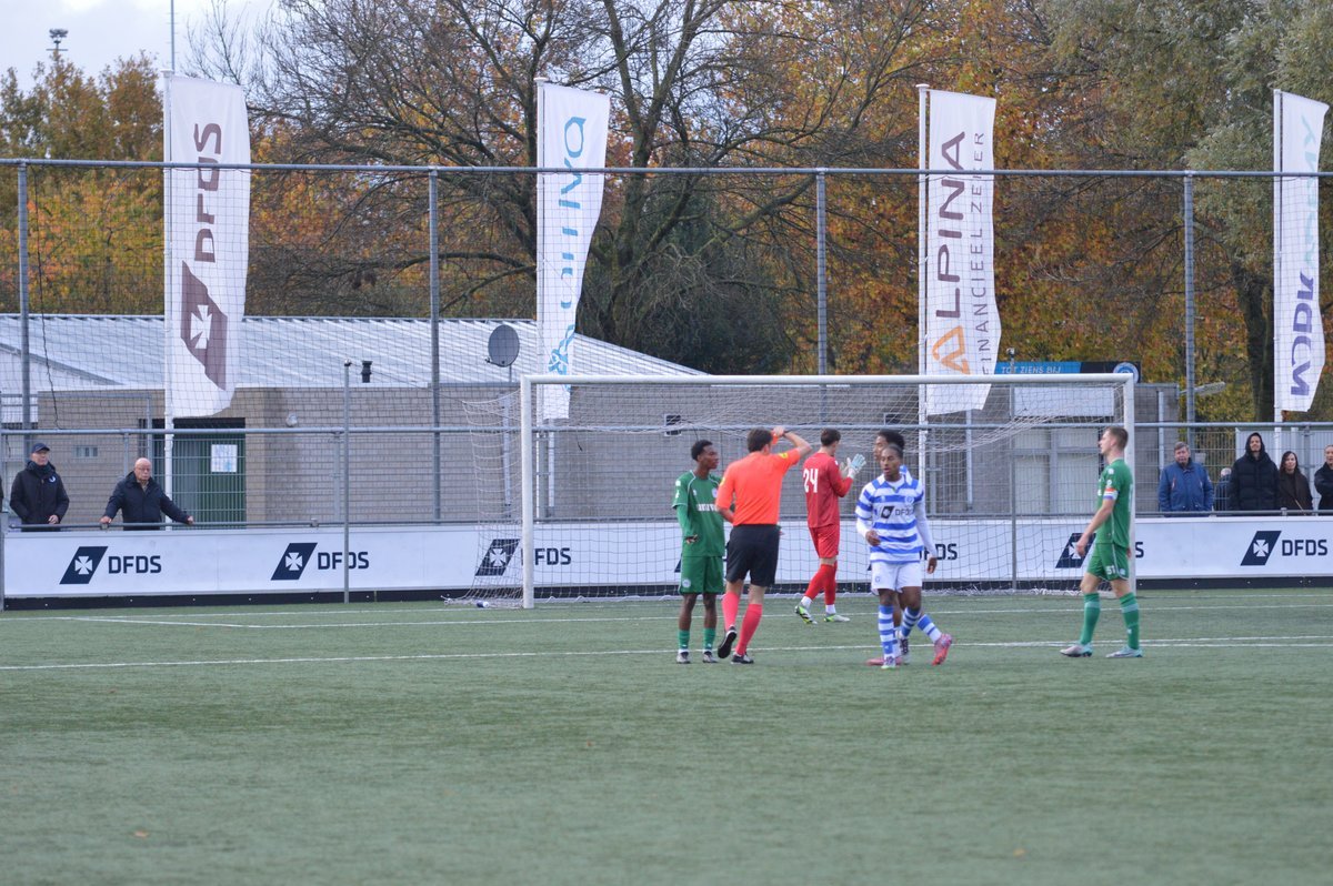 FC Groningen wisselt dan in de rust en dat maakt qua spelbeeld niet veel uit want ook in de tweede helft beginnen ze goed. Zeven minuten na de hervatting is het Jari Kolthof die met een prima pass Levi Roeland de mogelijkheid bied om te scoren en de van NAC Breda overgekomen aanvaller faalt niet en schiet de 0-3 binnen. Dan lijkt de wedstrijd beslist, met de nadruk op lijkt want de scheidsrechter neemt in de tweede helft wel de hoofdrol op zich. Waar hij in de eerste helft geen enkele kaart trok deed hij dat in de tweede helft maar liefst tien keer, Zes daarvan waren voor FC Groningen en Raylion Wilkerson kreeg er zelfs twee en dus rood.