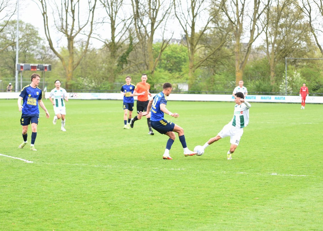 Voor de neutrale toeschouwer werd dit een prachtige wedstrijd met goed voetbal en veel strijd en passie. Alles was toch in het voordeel voor de thuisploeg want dit speelden een prima wedstrijd. In de eerste helft waren er echter weinig grote kansen te zien en velen dachten dat beide ploegen met de brilstand naar de rust ging maar daar dacht Ralph Peres anders over want in de 39ste minuut was hij attent na een hoekschop en knalde op mooie wijze de 0-1 tegen de touwen achter een kansloze Dirk Jan Baron. Dit was dan wel de ruststand.