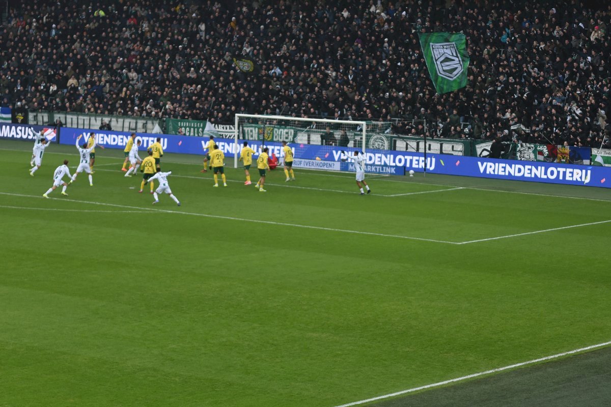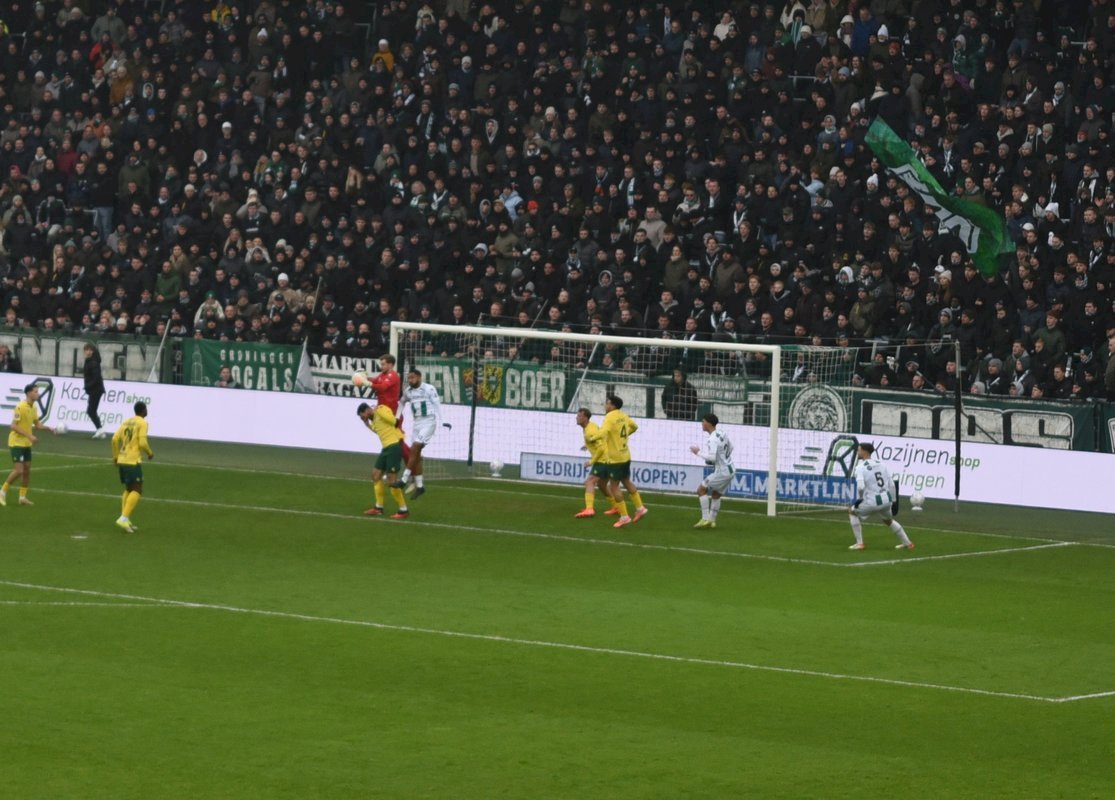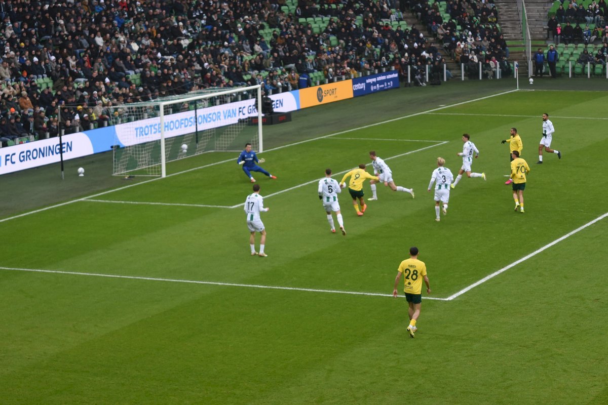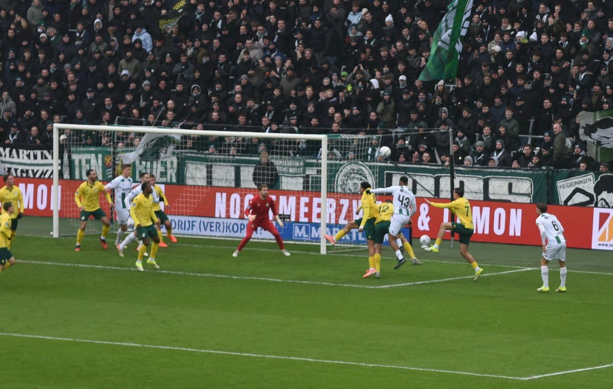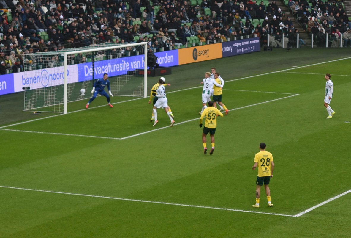 De Trots van het Noorden begon goed aan de wedstrijd en kreeg binnen een minuut twee hoekschoppen. Die leverden nog niet direct gevaar op. De derde corner deed dat wel. Dies Janse veranderde een schot van Younes Taha van richting en noteerde op die wijze zijn eerste treffer voor de FC, 1-0.