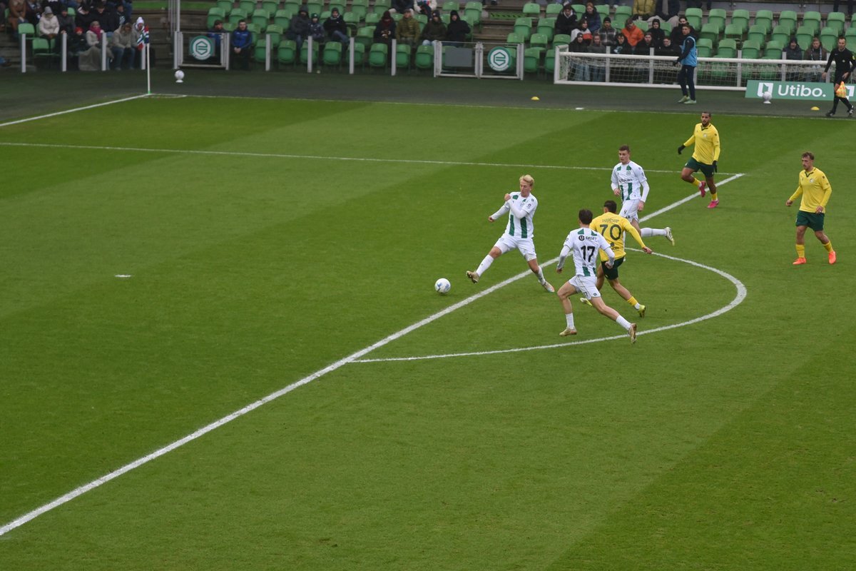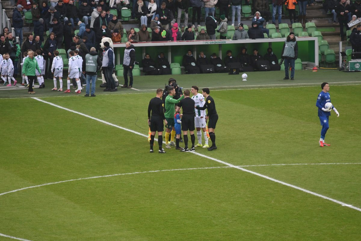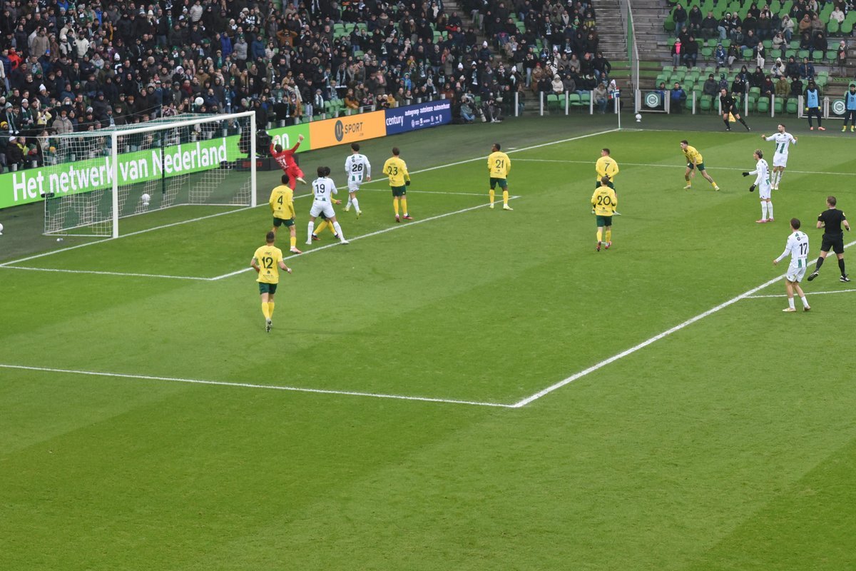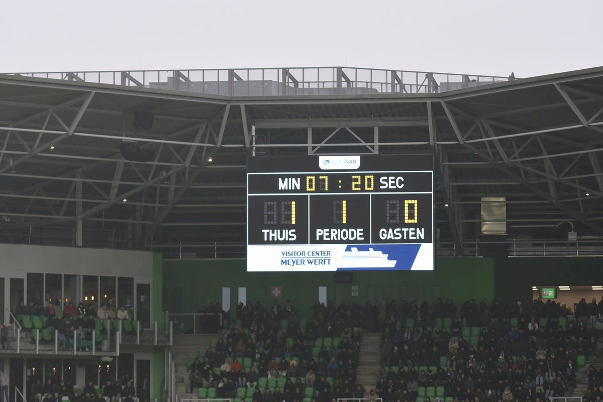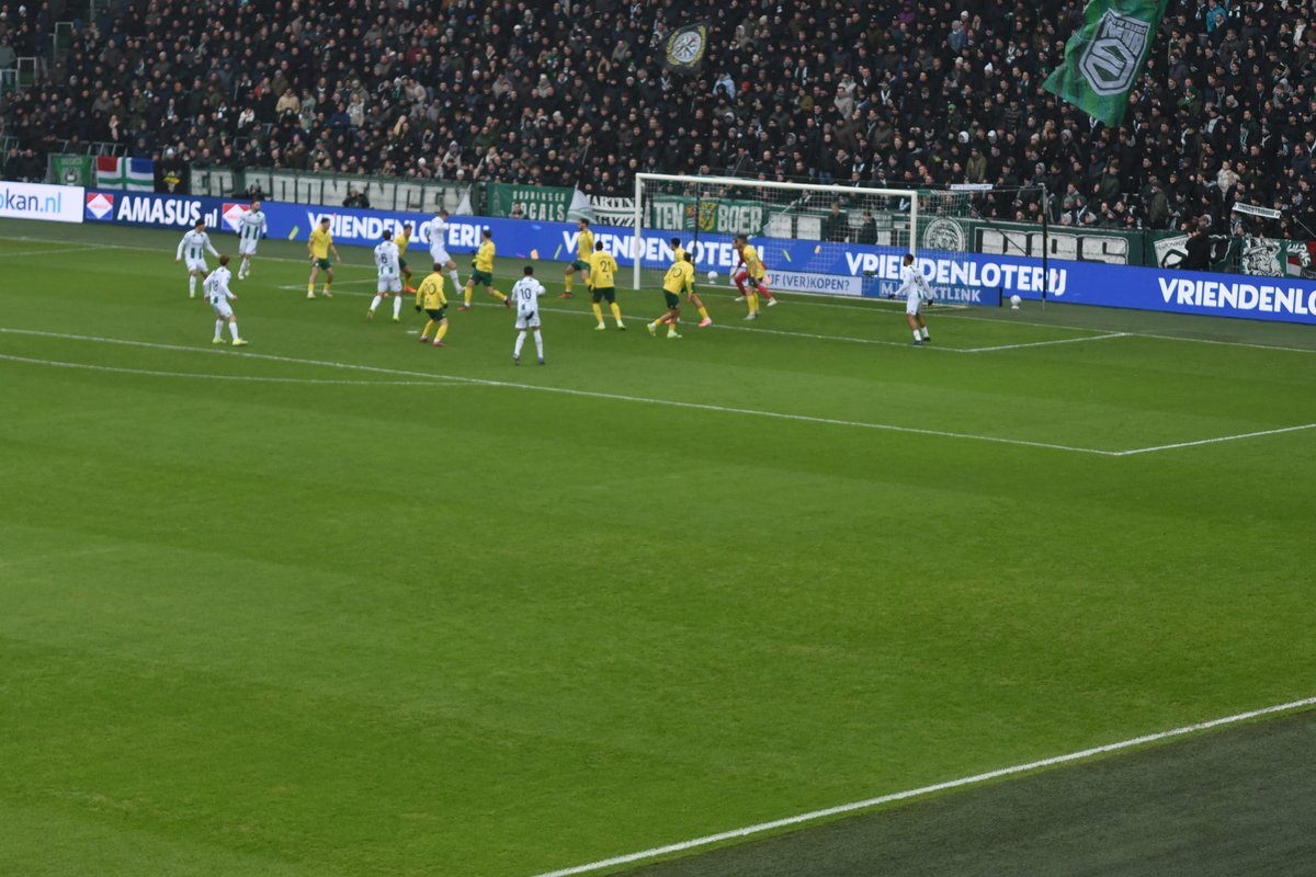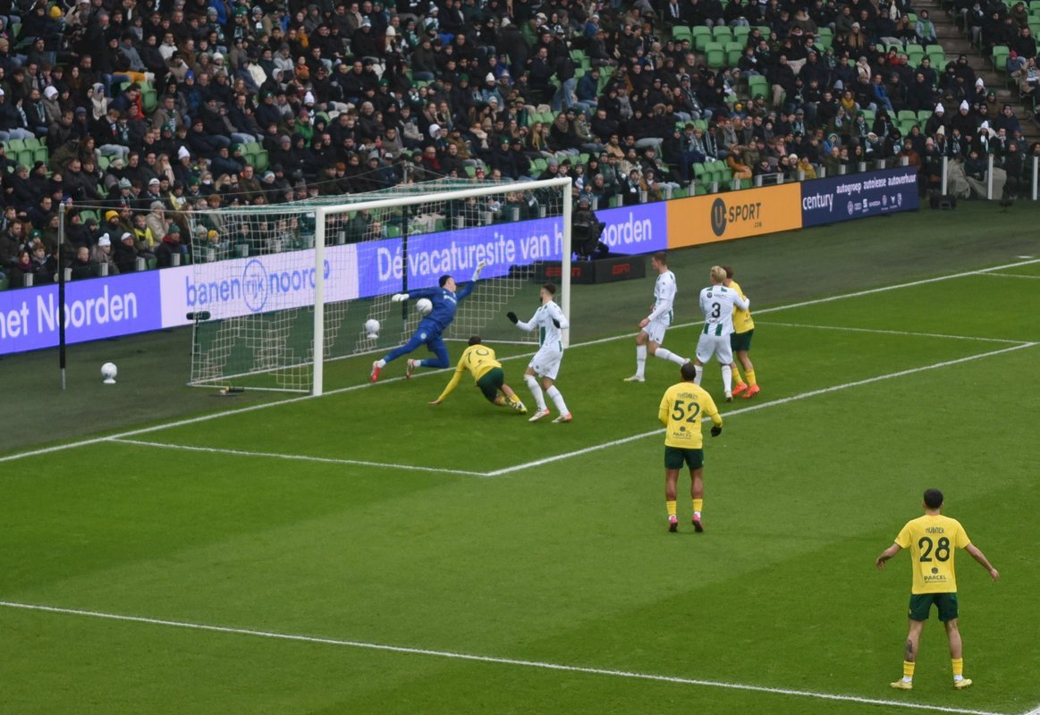 De Trots van het Noorden begon goed aan de wedstrijd en kreeg binnen een minuut twee hoekschoppen. Die leverden nog niet direct gevaar op. De derde corner deed dat wel. Dies Janse veranderde een schot van Younes Taha van richting en noteerde op die wijze zijn eerste treffer voor de FC, 1-0.