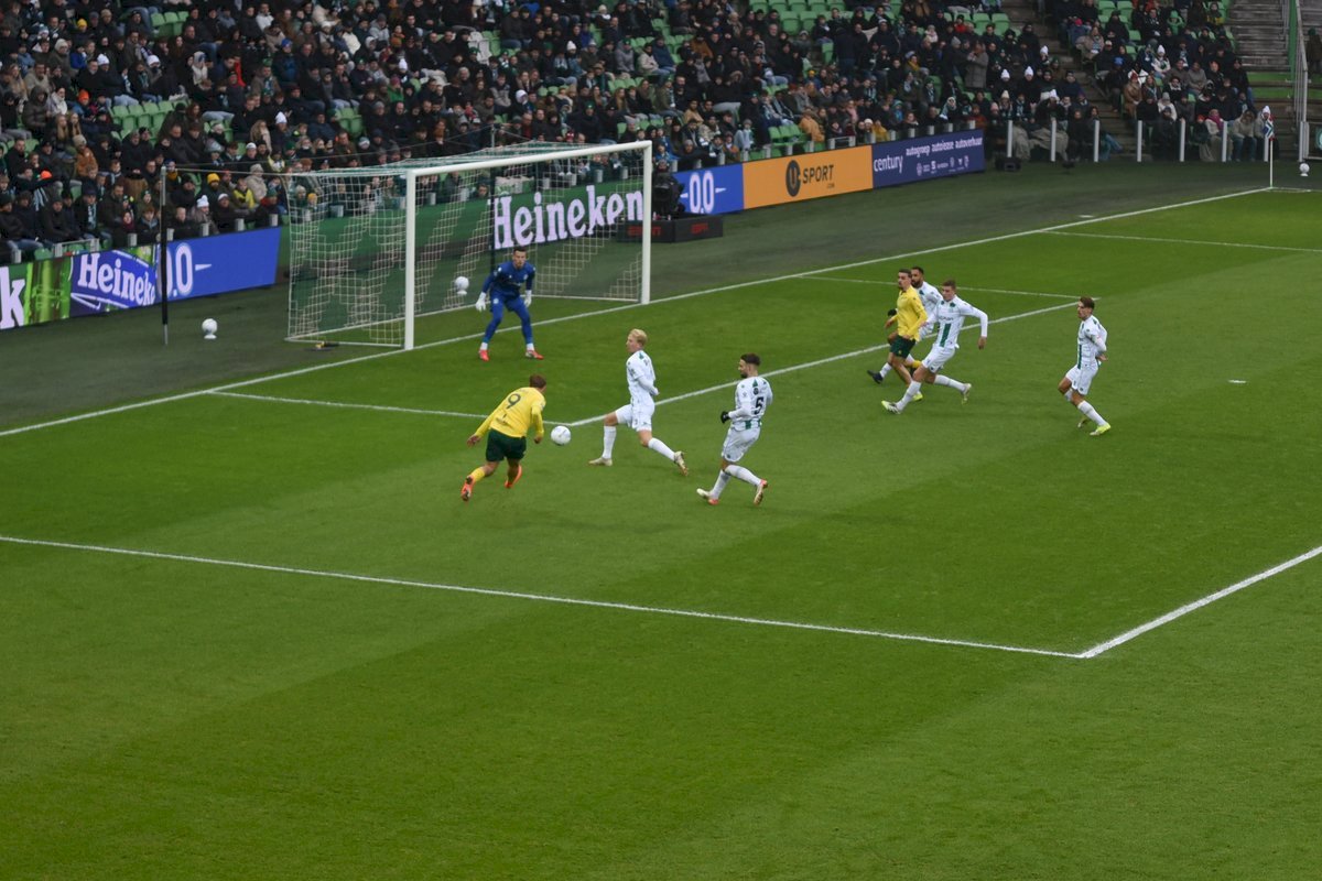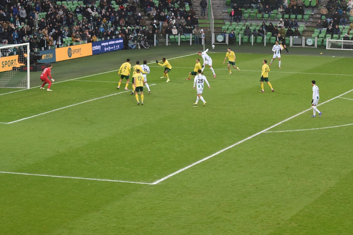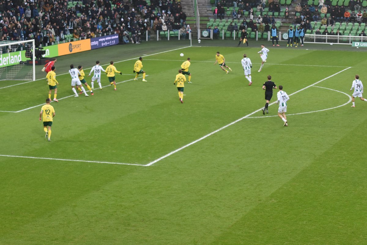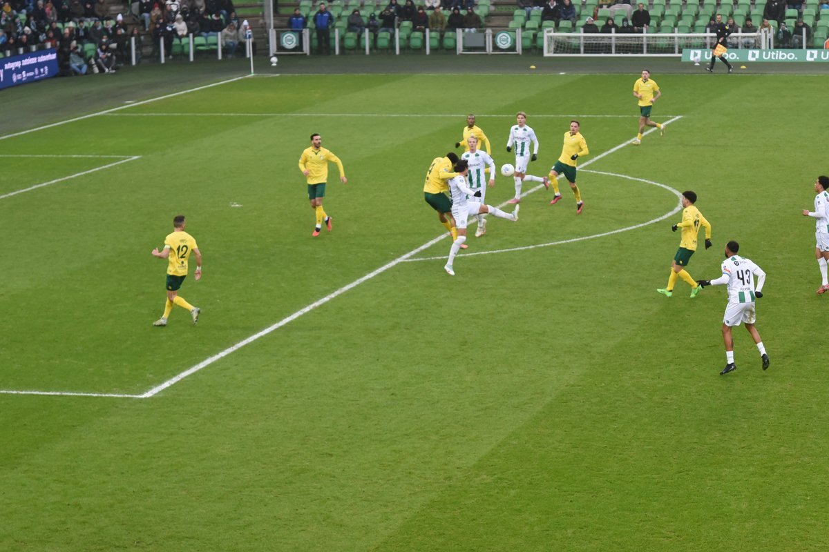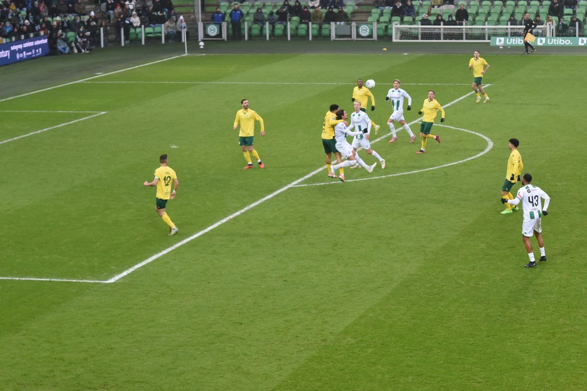 De Trots van het Noorden begon goed aan de wedstrijd en kreeg binnen een minuut twee hoekschoppen. Die leverden nog niet direct gevaar op. De derde corner deed dat wel. Dies Janse veranderde een schot van Younes Taha van richting en noteerde op die wijze zijn eerste treffer voor de FC, 1-0.
