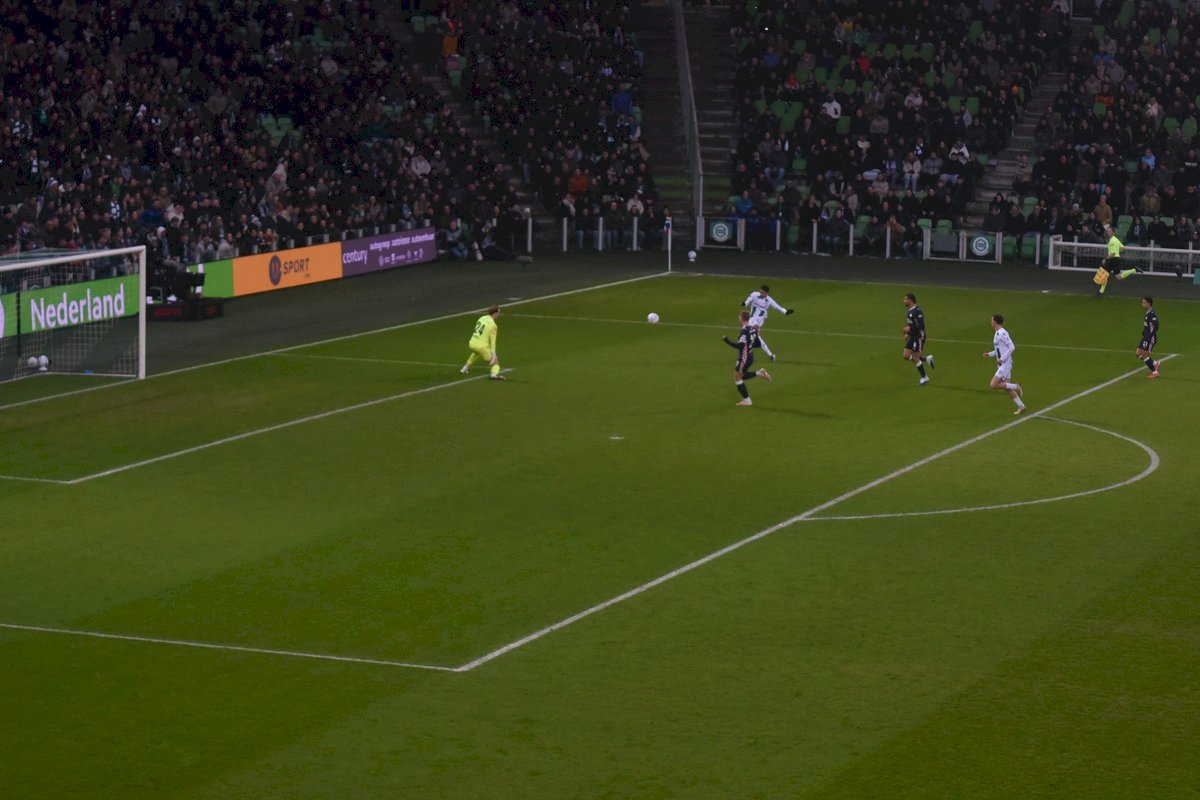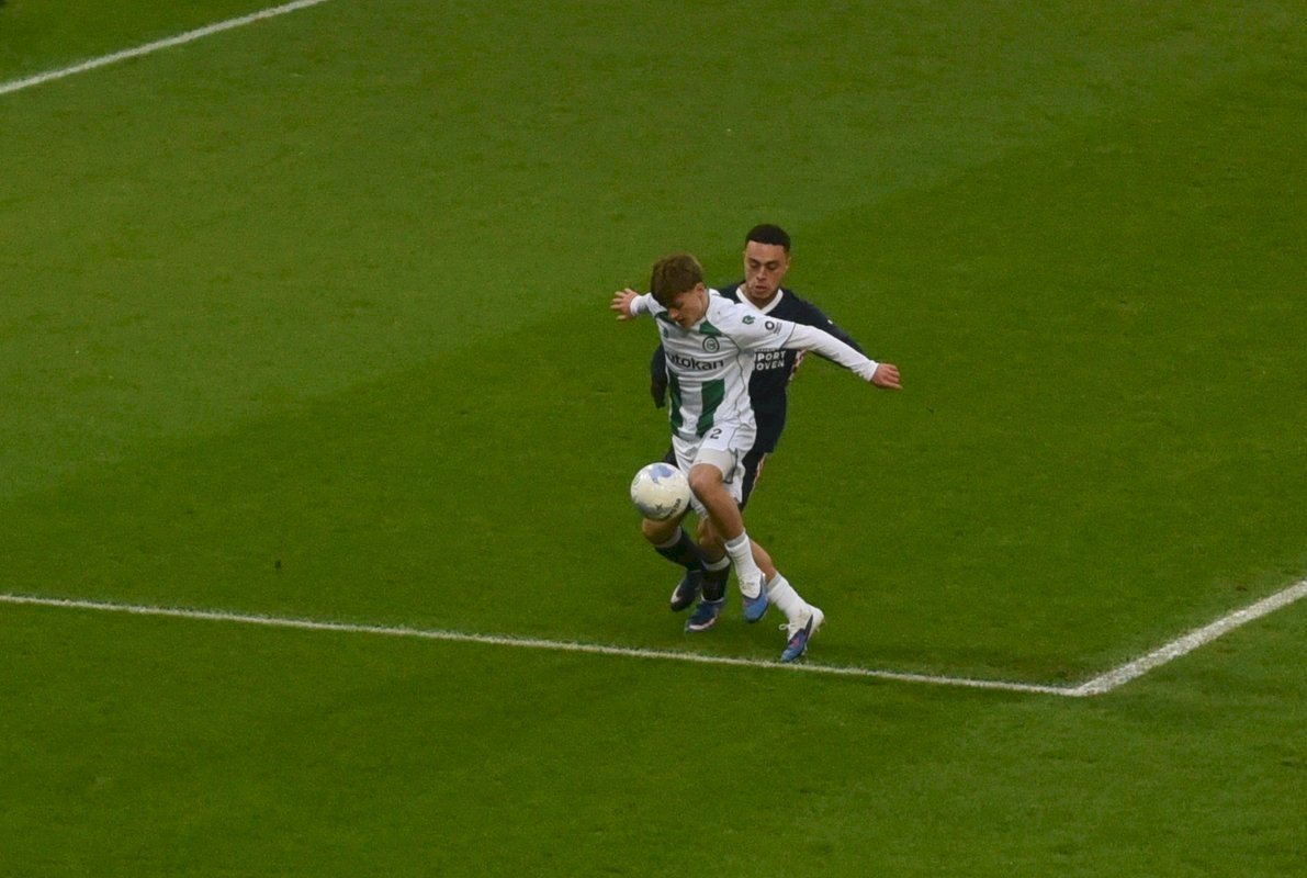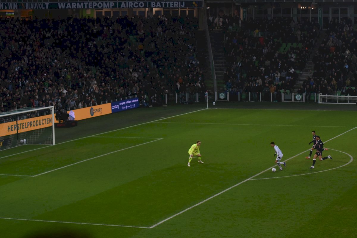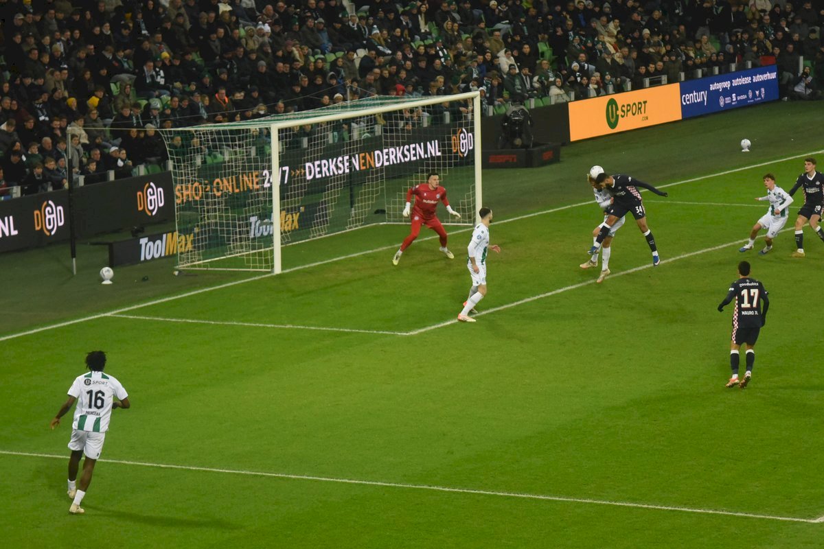 Taha kreeg na 35 minuten spelen een uitstekende mogelijkheid om zijn tweede van de middag te scoren. De inventeur snelde ervandoor en slaagde er opnieuw in om op Schiks af te snellen. Deze keer was de stift niet voldoende hoog, waardoor de doelman redding bood. Natuurlijk kwam ook PSV meerdere keren gevaarlijk voor het doel van Etienne Vaessen. Paul Wanner schoot op de binnenkant van de paal, waardoor de bal gevaarlijk aan de linkerzijde van de doellijn bleef rollen. Vaessen zorgde later in de wedstrijd voor een indrukwekkende redding op een inzet van Ismael Saibari. De FC streed naar de rust, gesteund door een fanatiek en gepassioneerd Euroborg.