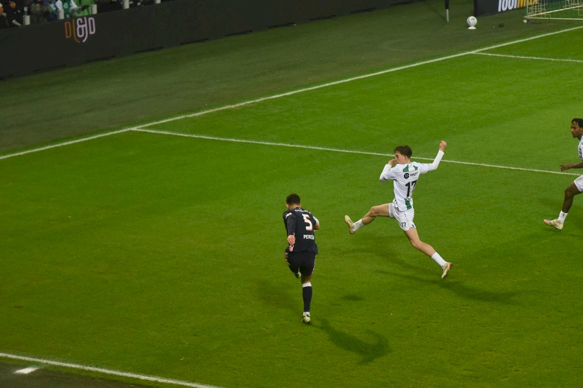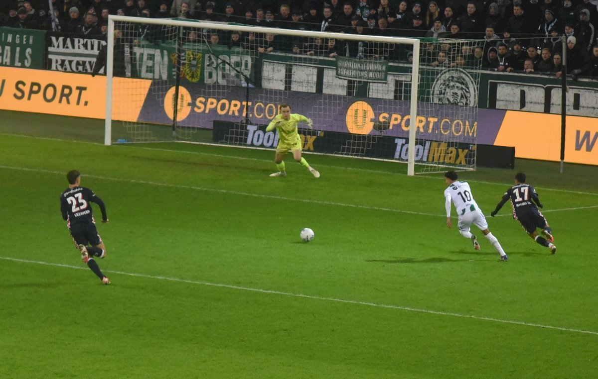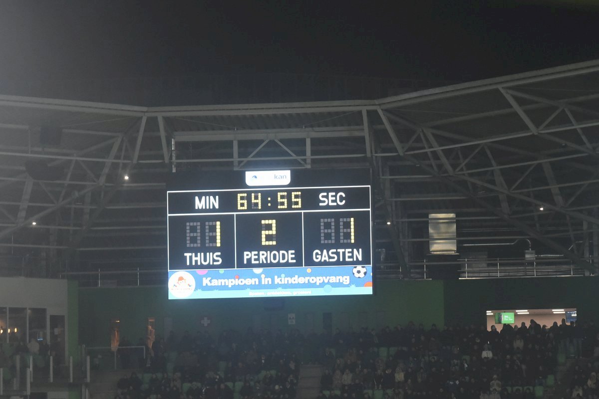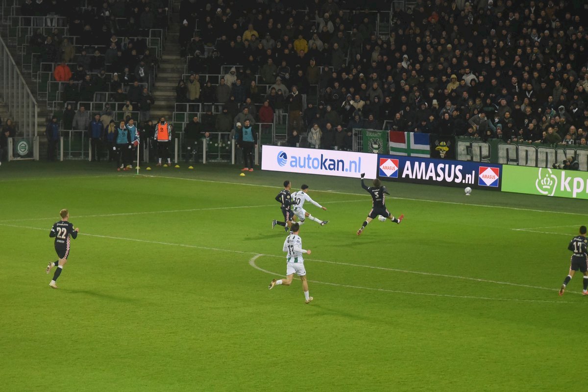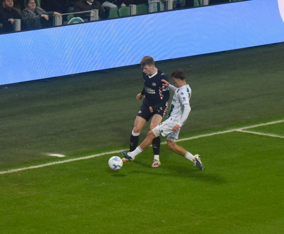 Taha kreeg na 35 minuten spelen een uitstekende mogelijkheid om zijn tweede van de middag te scoren. De inventeur snelde ervandoor en slaagde er opnieuw in om op Schiks af te snellen. Deze keer was de stift niet voldoende hoog, waardoor de doelman redding bood. Natuurlijk kwam ook PSV meerdere keren gevaarlijk voor het doel van Etienne Vaessen. Paul Wanner schoot op de binnenkant van de paal, waardoor de bal gevaarlijk aan de linkerzijde van de doellijn bleef rollen. Vaessen zorgde later in de wedstrijd voor een indrukwekkende redding op een inzet van Ismael Saibari. De FC streed naar de rust, gesteund door een fanatiek en gepassioneerd Euroborg.