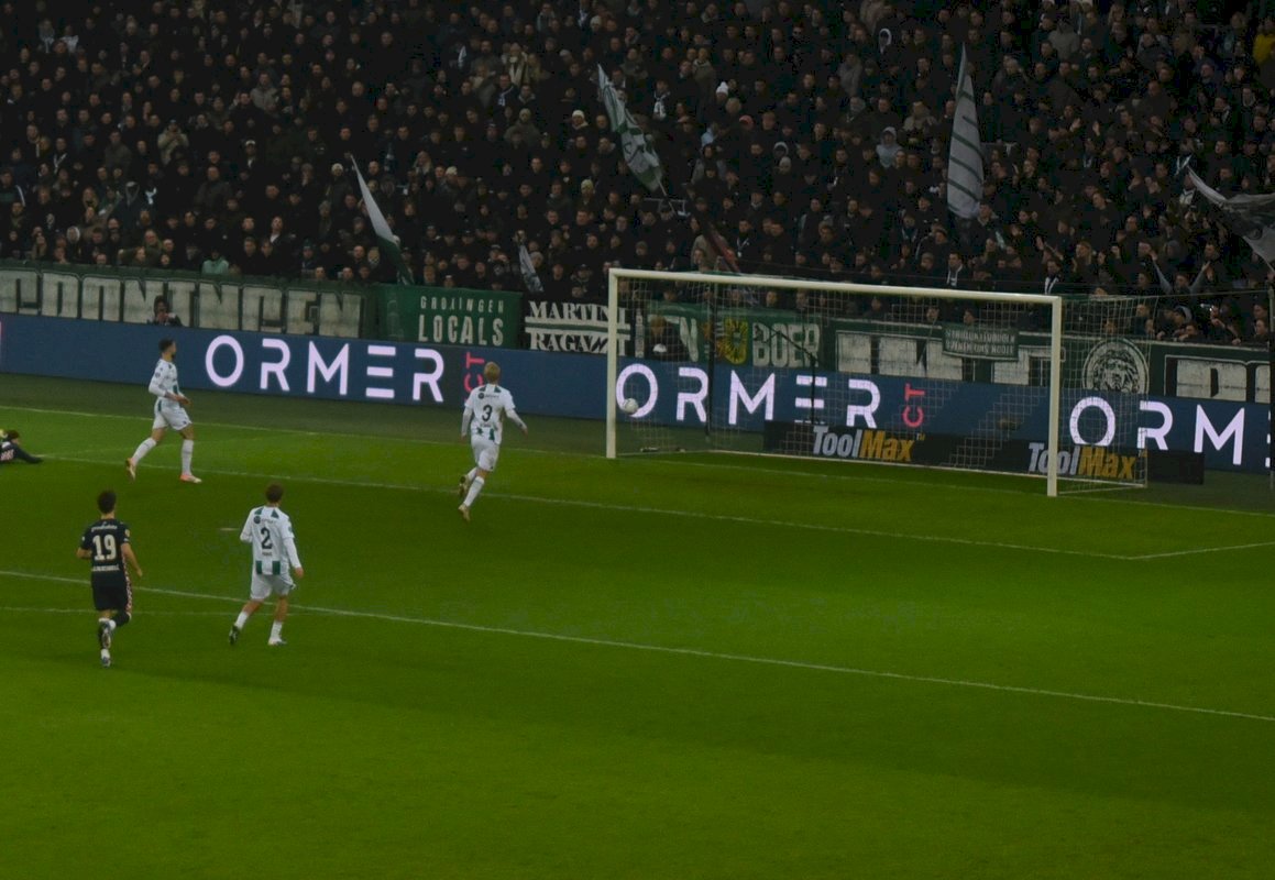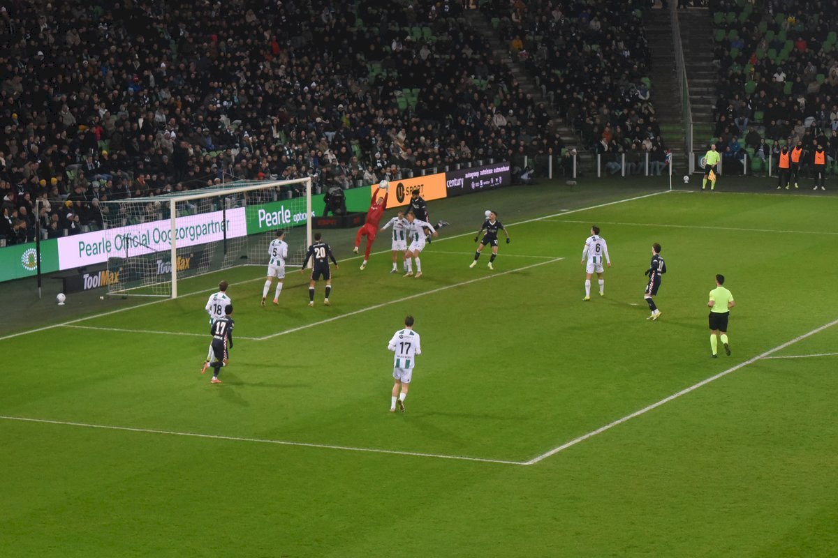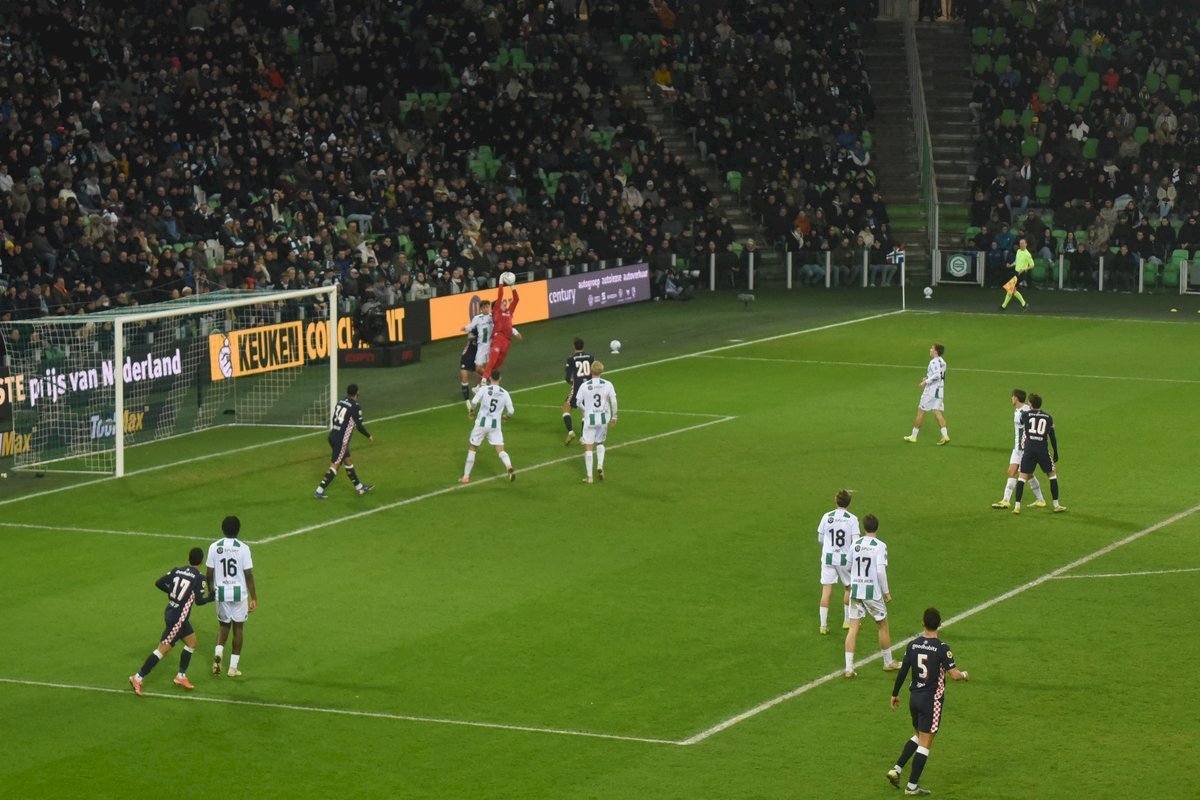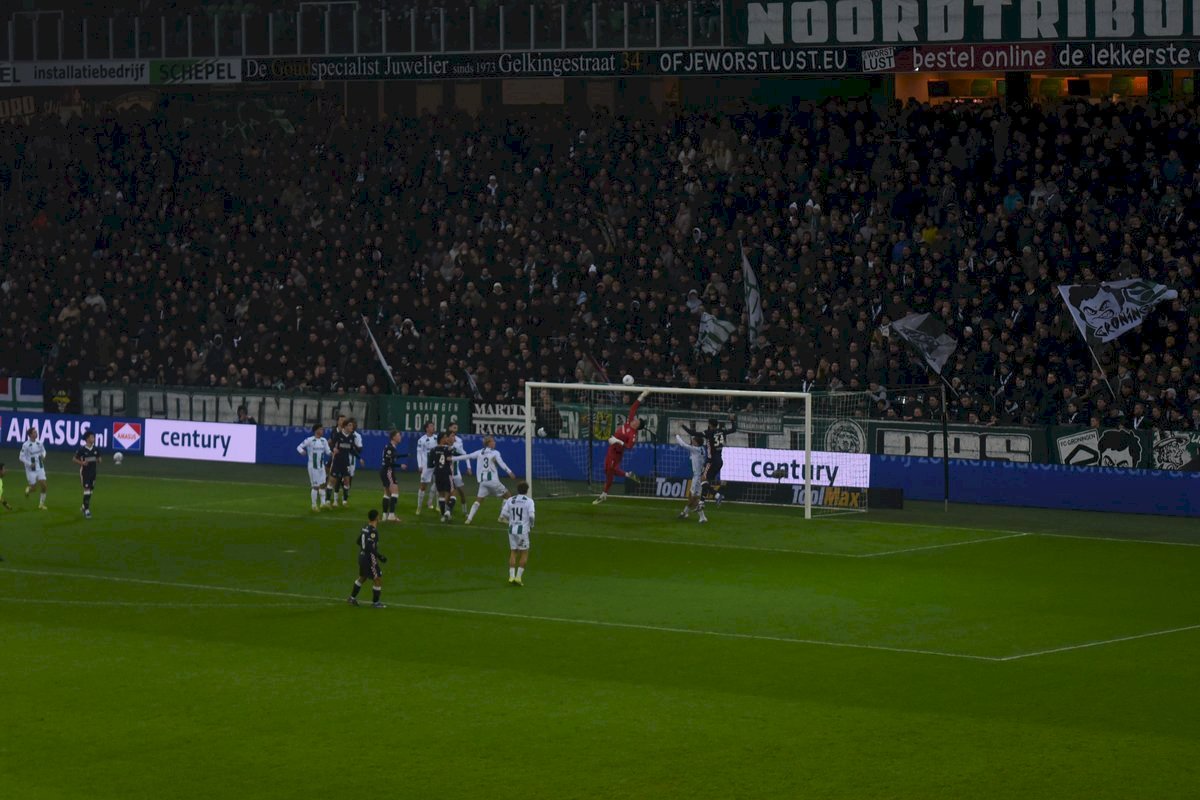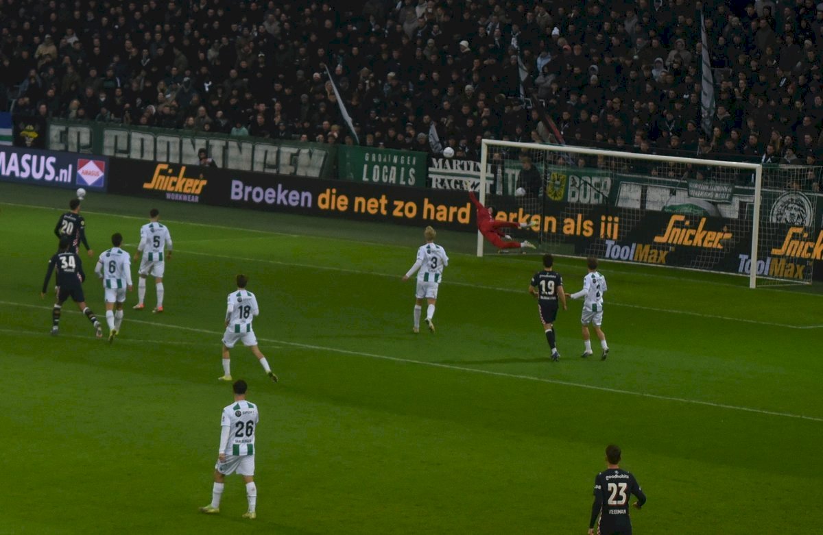 Op de late zondagmiddag speelde FC Groningen tegen aanstaande landskampioen PSV en verloor onterecht met 1-2. De manier waarop FC Groningen deze wedstrijd verloor roept vraagtekens op want de hoekschop waaruit die 1-2 werd gescoord had nooit toegekend mogen worden want de bal lag duidelijk ver buiten het vak (zie foto hieronder) waar de hoekschop genomen moet worden. Een zure manier van verliezen en laten we het er maar ‘geluk van de landskampioen’ houden. Toch speelde FC Groningen een prima wedstrijd en had echt meer verdiend dan een nederlaag. De 17-jarige Ryan Metu, afkomstig uit de Opleiding, debuteerde als invaller voor de FC.