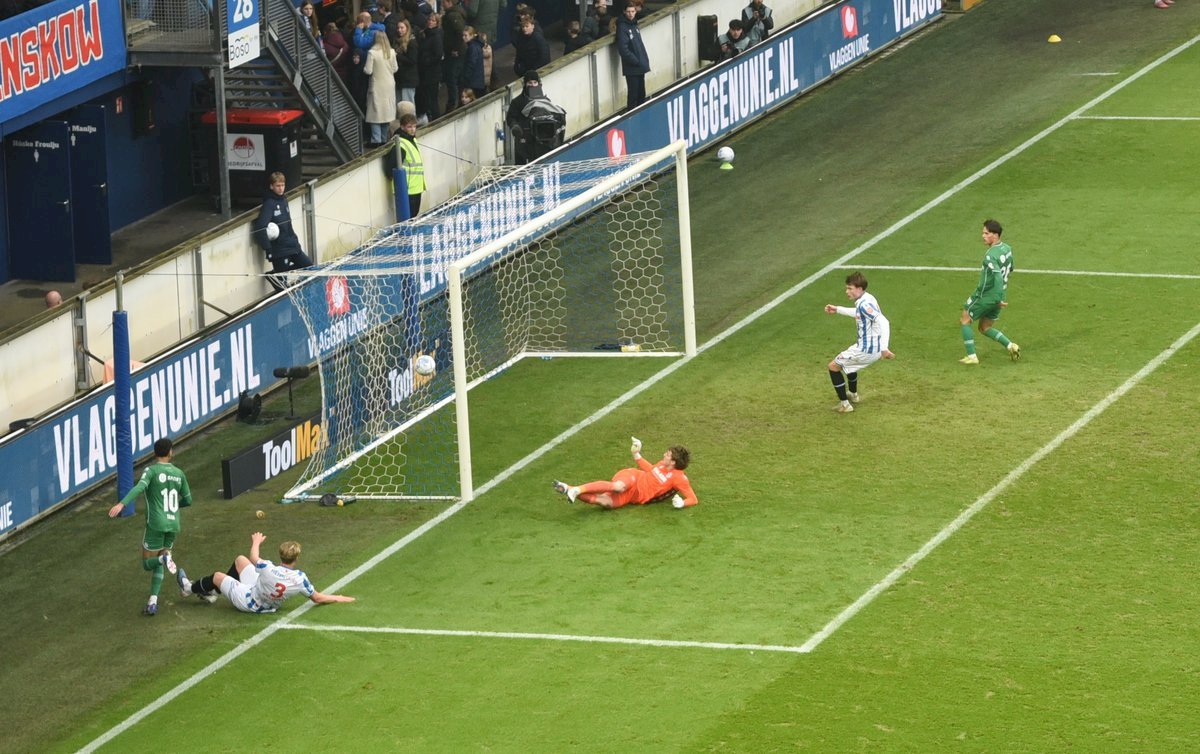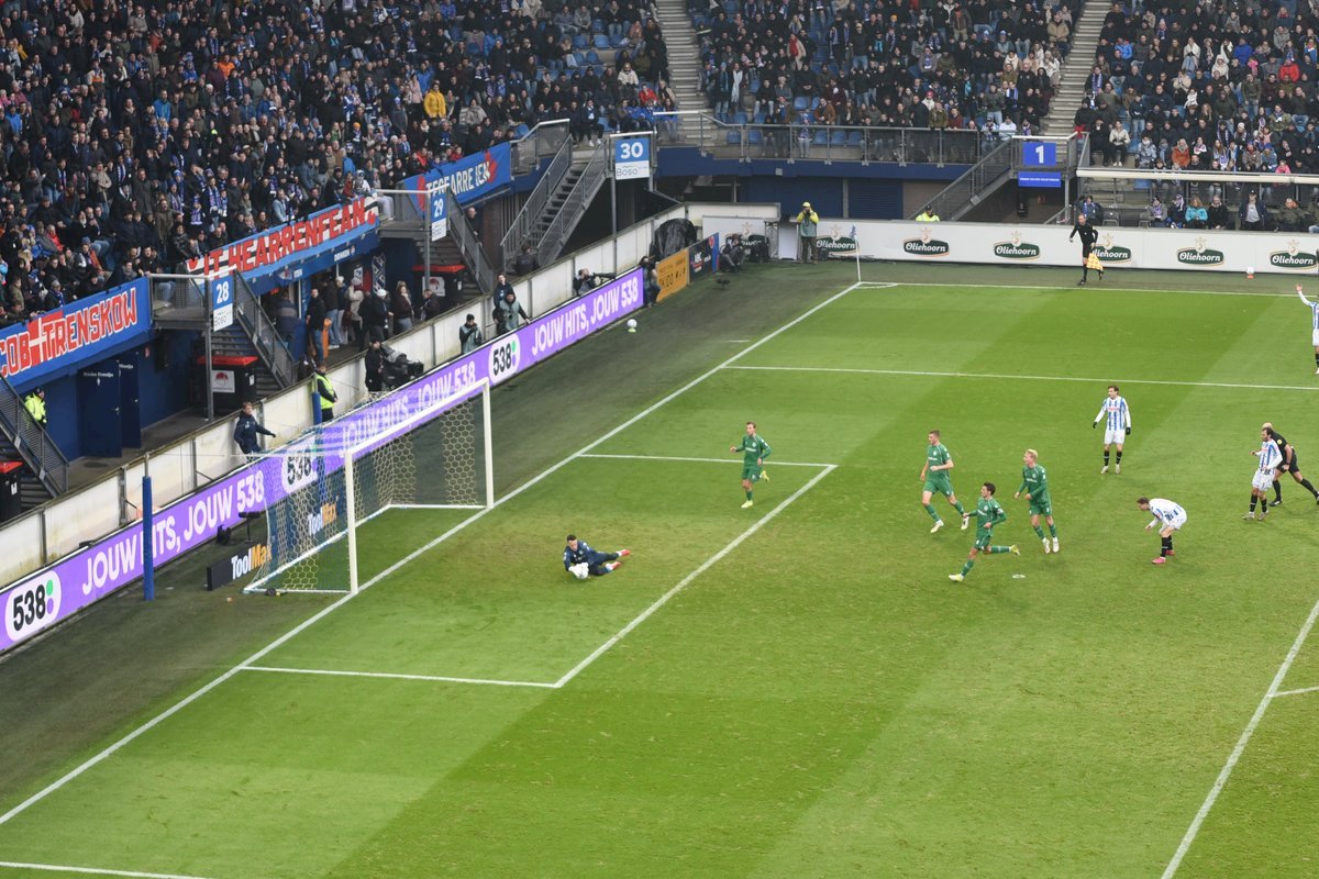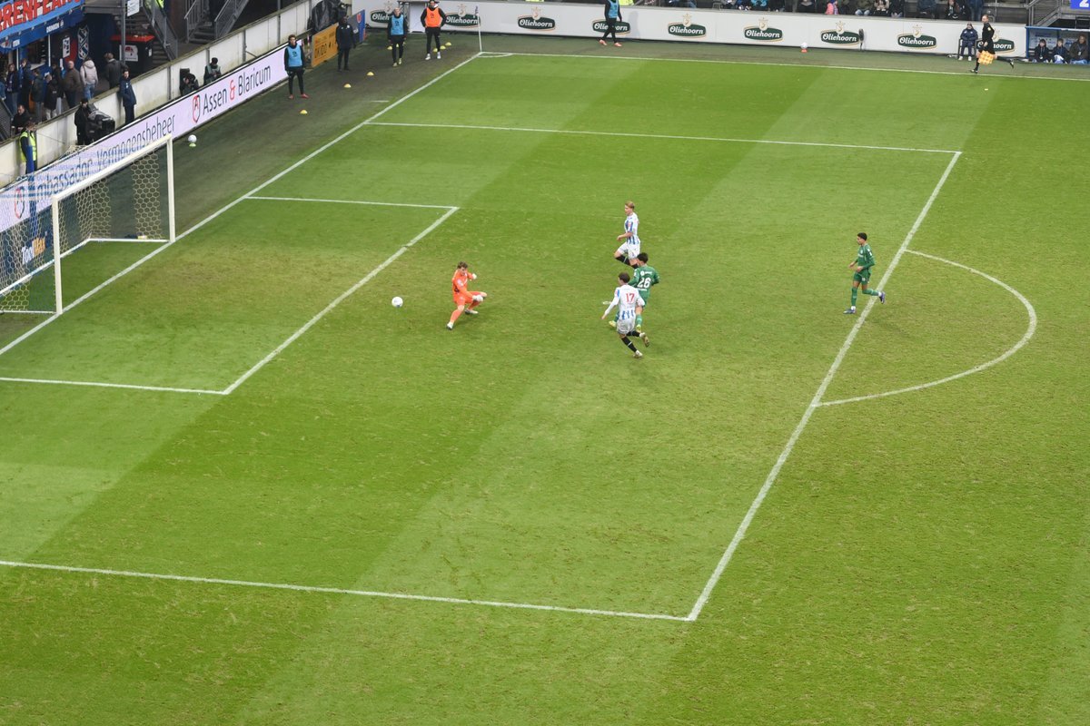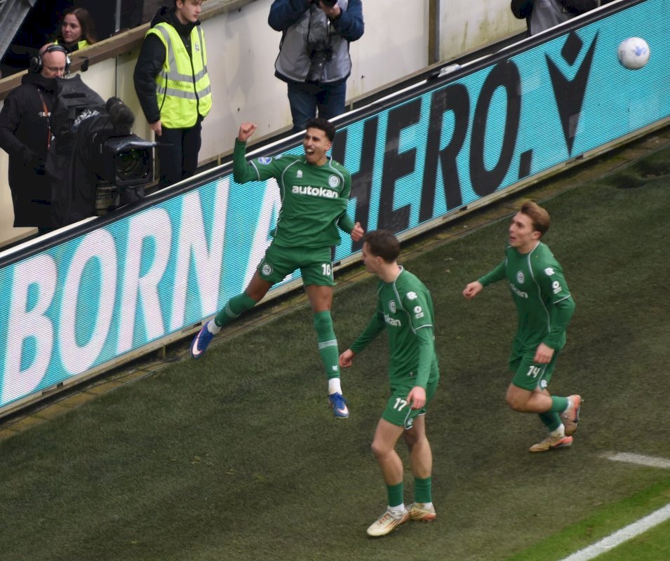 FC Groningen nam vanaf het begin van de tweede helft het heft in handen en drukte de thuisploeg terug. De tweede helft was dertien minuten oud toen het uitvak kon juichen als Hidde Jurjus met een perfecte bal Younes Taha wegstuurt en die sprint zijn tegenstander Maas Willemssen eruit en trekt de bal op de achterlijn terug en via Bernt Klaverboer valt de bal binnen, 0-1.