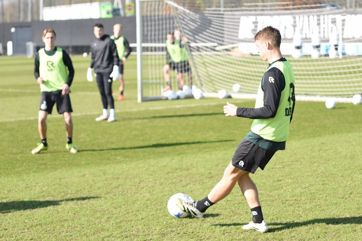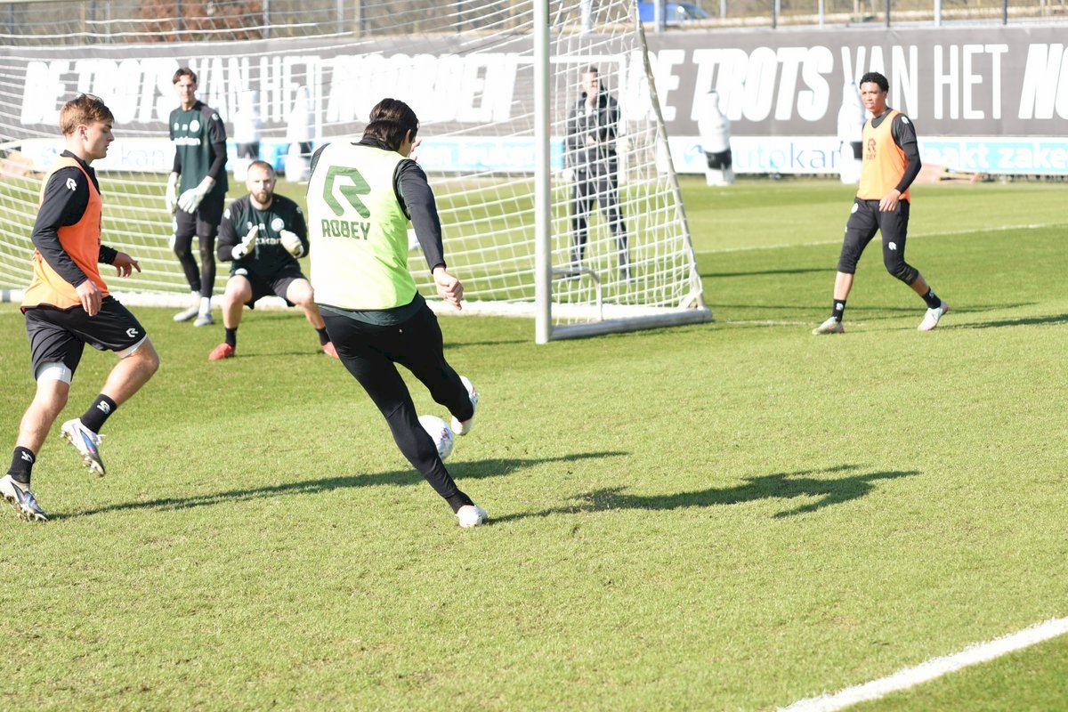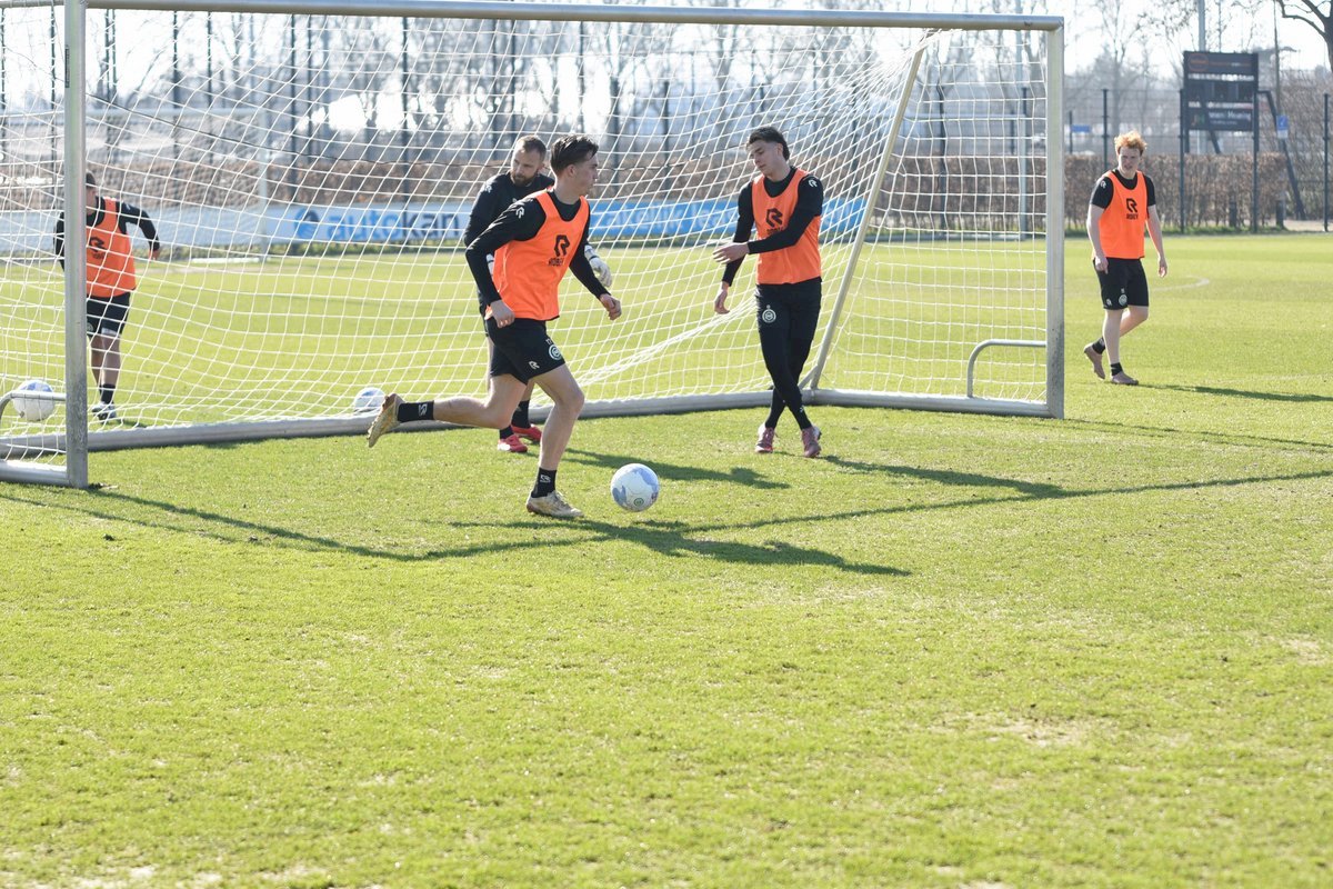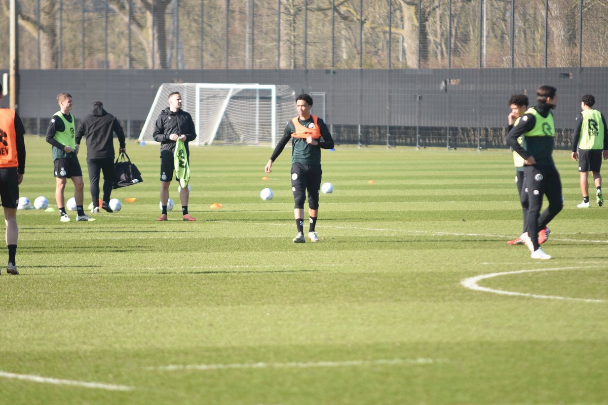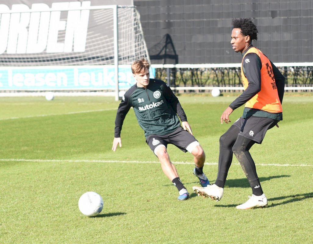 Vanmorgen trainde de eerste selectie van FC Groningen in aanloop naar de wedstrijd tegen de recordkampioen Ajax van zaterdagmiddag 16.30 uur. Een wedstrijd die eigenlijk gewonnen moet worden want anders staat de teller op zeven wedstrijd zonder zege en dat wil je niet graag. Dan moet de FC het ook nog doen zonder hun zwaar geblesseerde aanvoerder Stije Resink en zonder de geschorste Younes Taha. Zoals de training vanmorgen uitwees is het mogelijk dat Dick Lukkien voor Travis Hernes kiest als vervanger van Younes Taha en uiteraard zoals verwacht Jorg Schreuders op de plek van Stije Resink. Hierbij een aantal foto’s van de training van hedenmorgen.