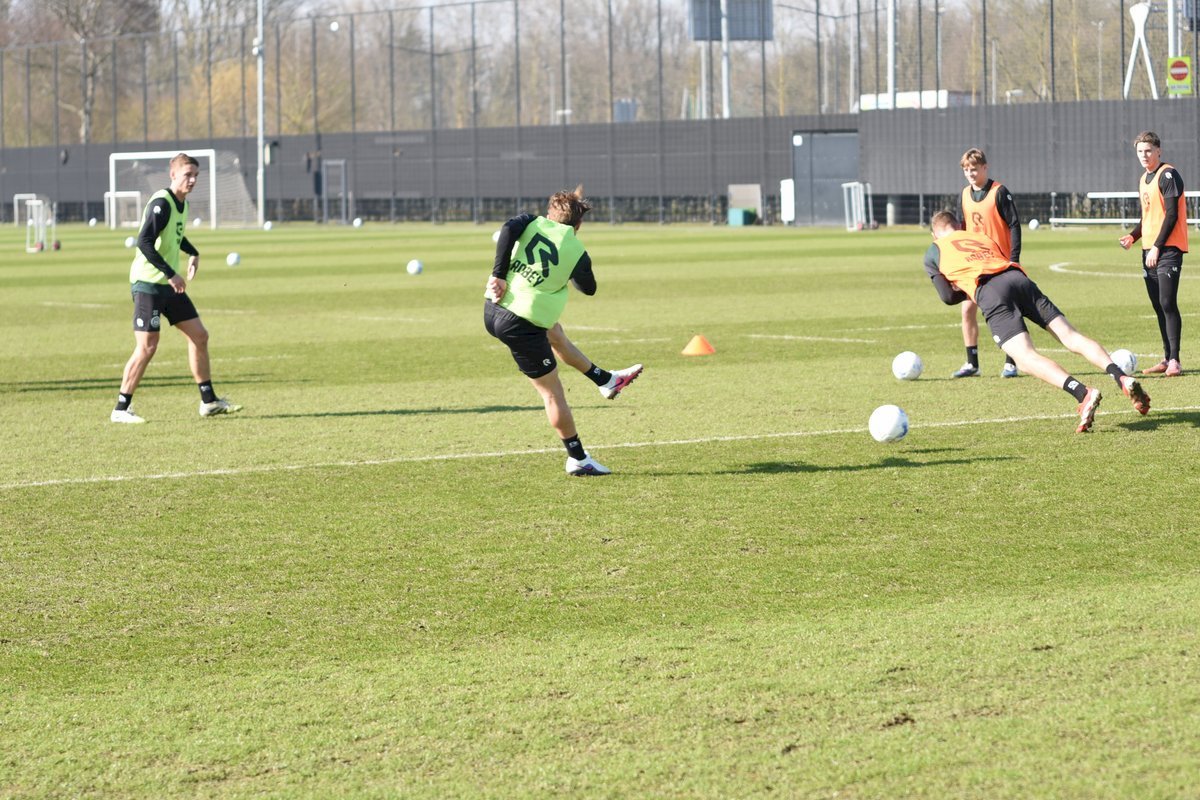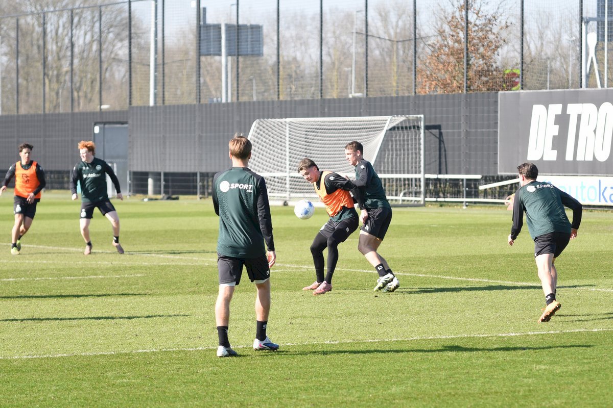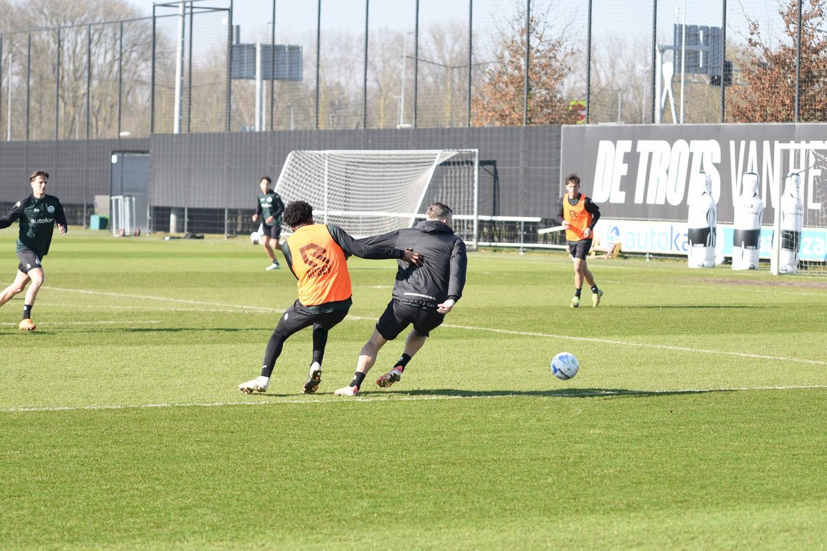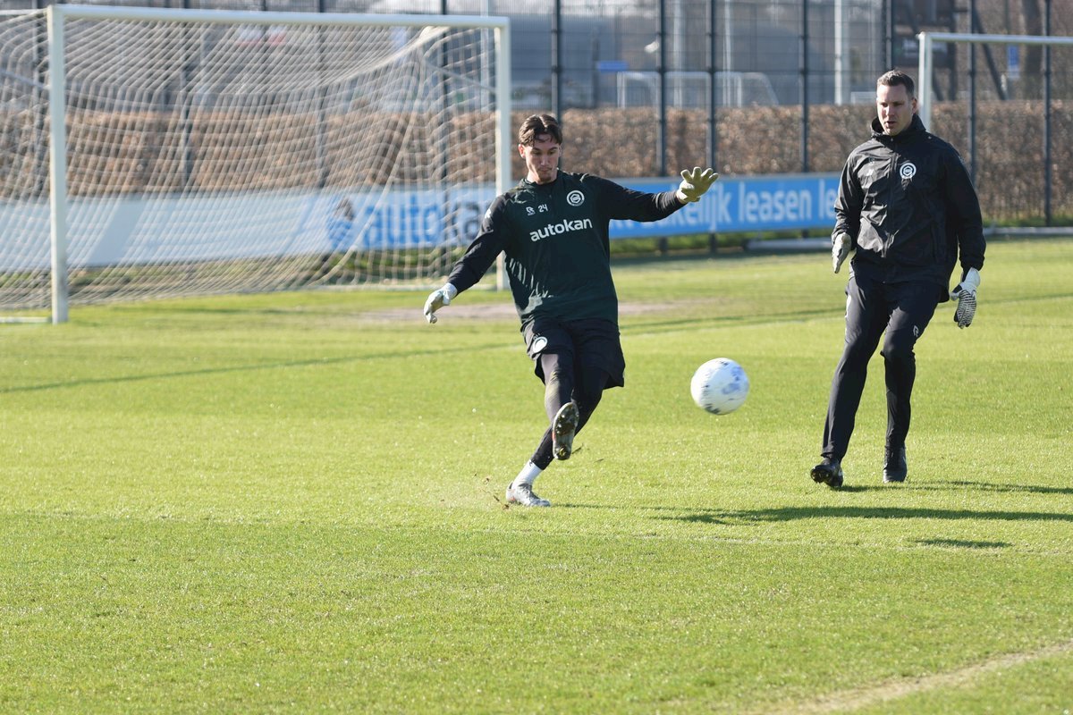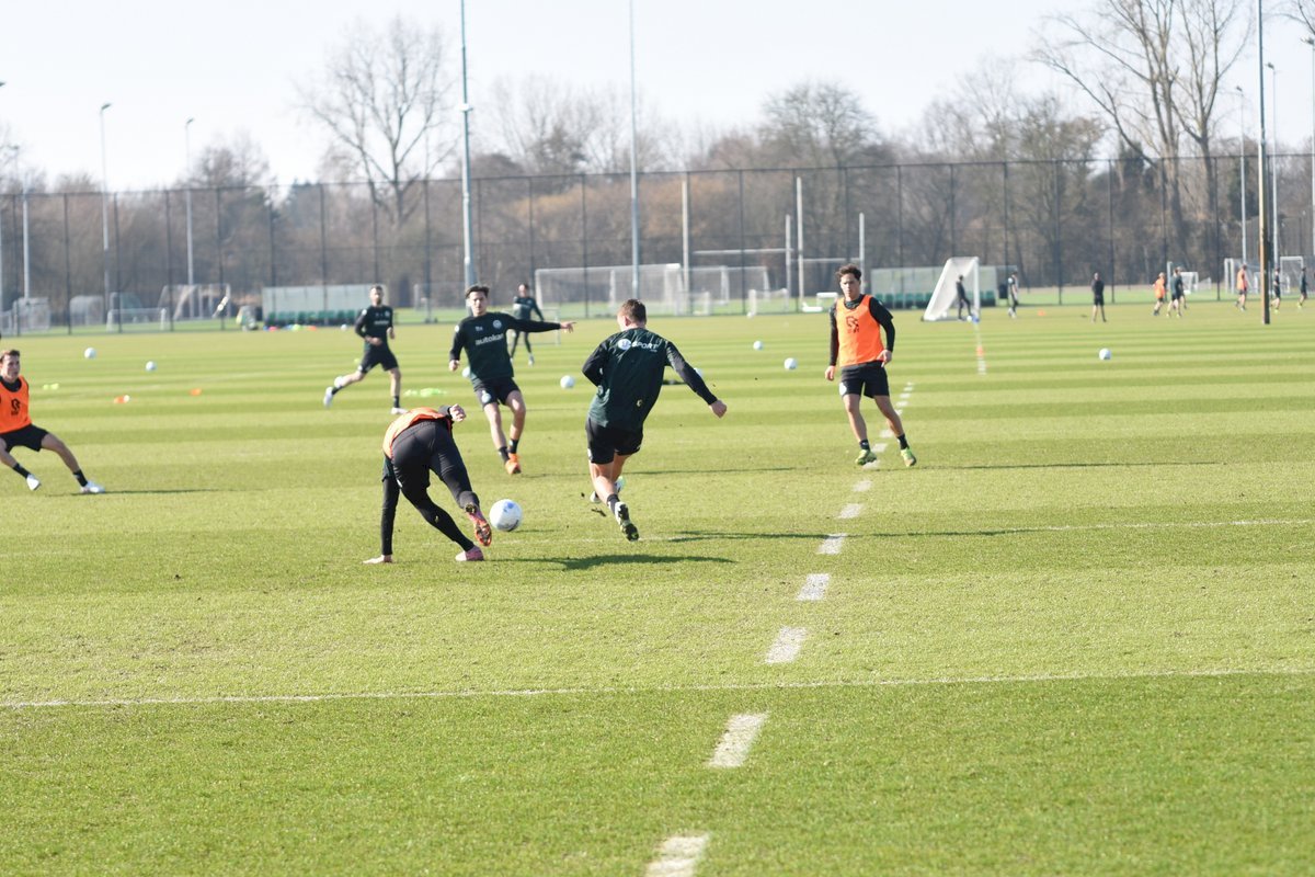 Vanmorgen trainde de eerste selectie van FC Groningen in aanloop naar de wedstrijd tegen de recordkampioen Ajax van zaterdagmiddag 16.30 uur. Een wedstrijd die eigenlijk gewonnen moet worden want anders staat de teller op zeven wedstrijd zonder zege en dat wil je niet graag. Dan moet de FC het ook nog doen zonder hun zwaar geblesseerde aanvoerder Stije Resink en zonder de geschorste Younes Taha. Zoals de training vanmorgen uitwees is het mogelijk dat Dick Lukkien voor Travis Hernes kiest als vervanger van Younes Taha en uiteraard zoals verwacht Jorg Schreuders op de plek van Stije Resink. Hierbij een aantal foto’s van de training van hedenmorgen.