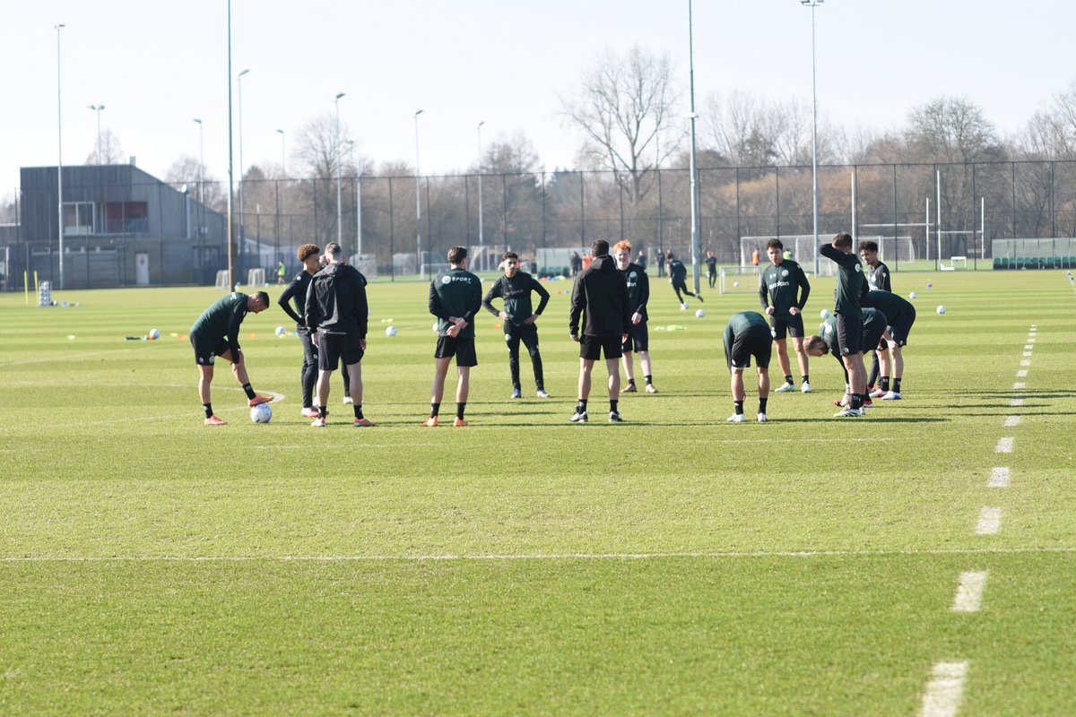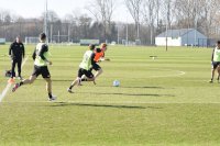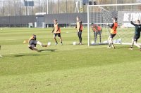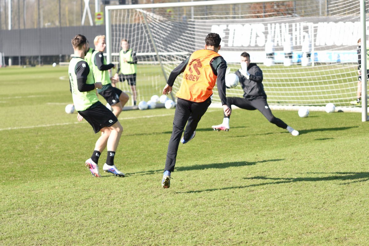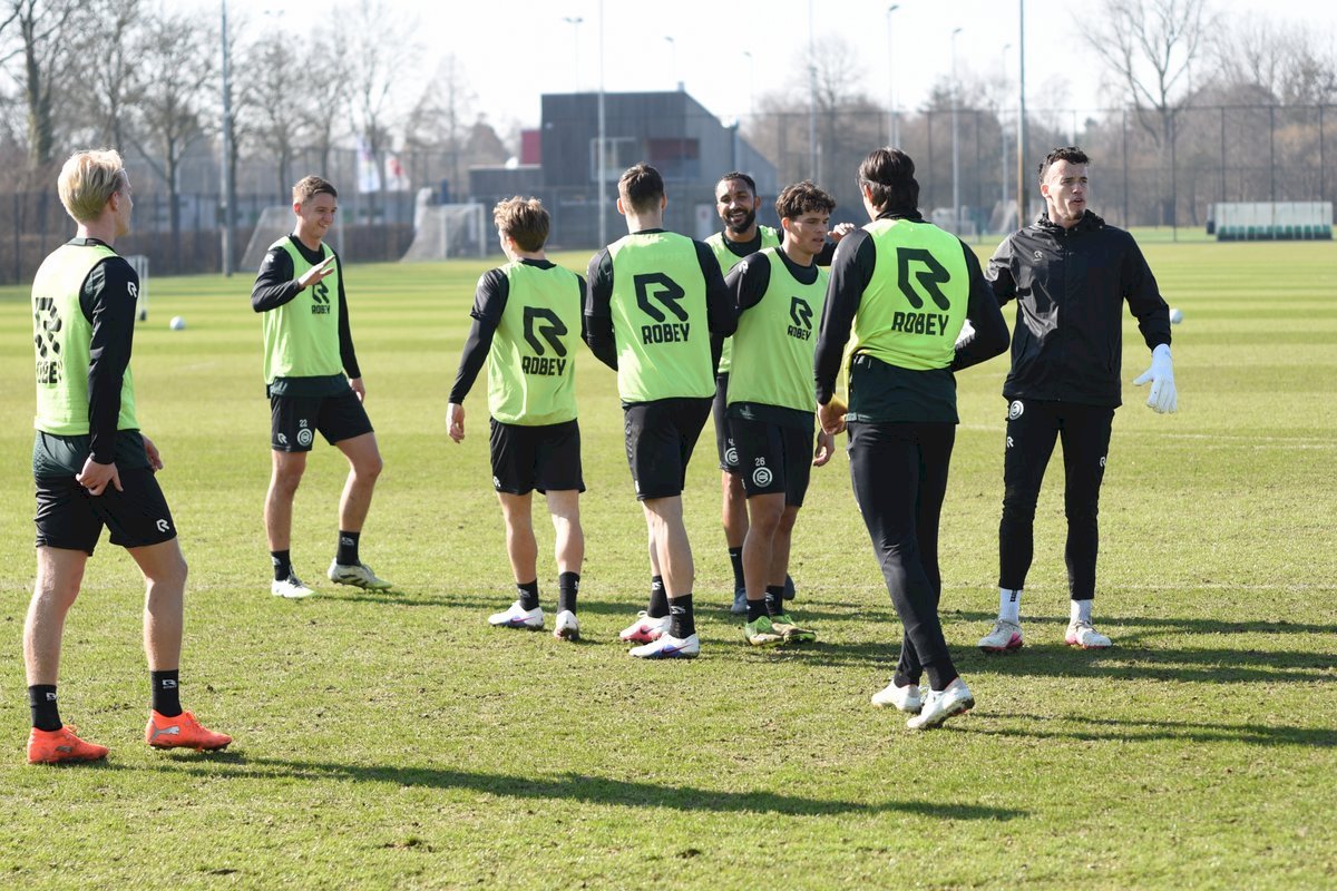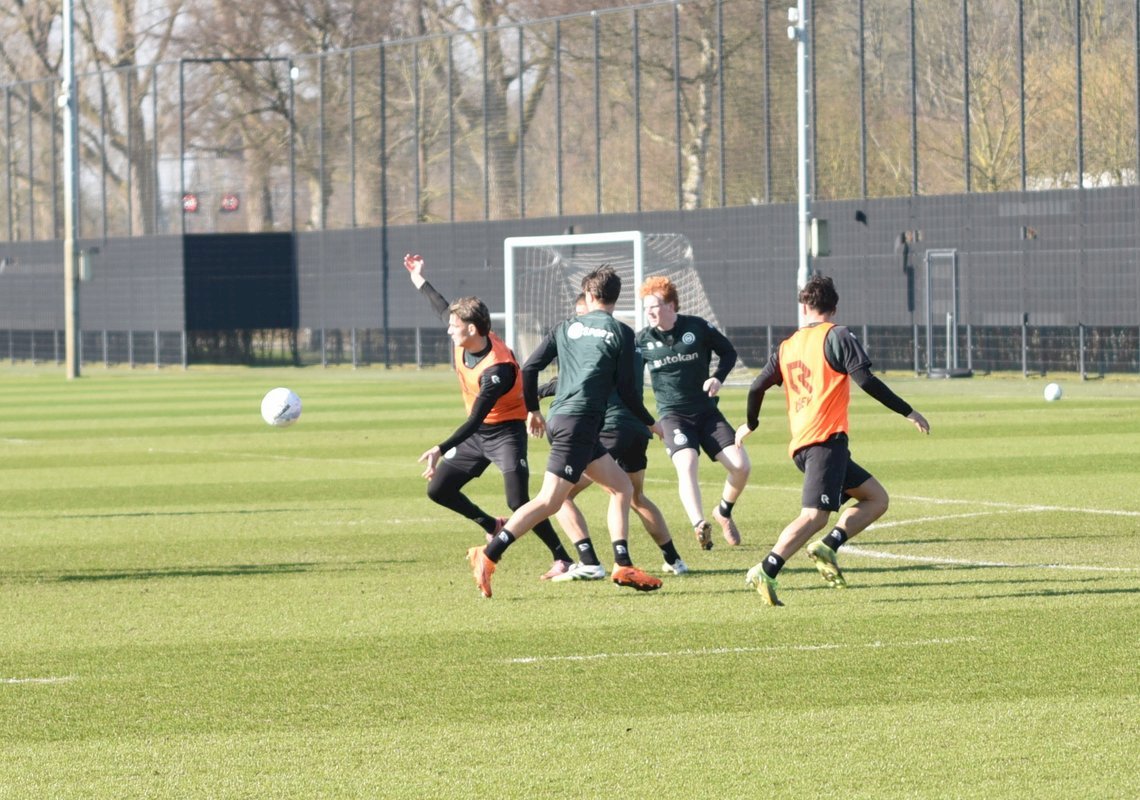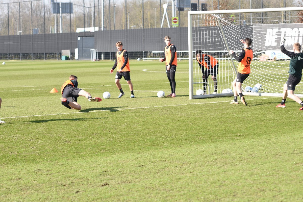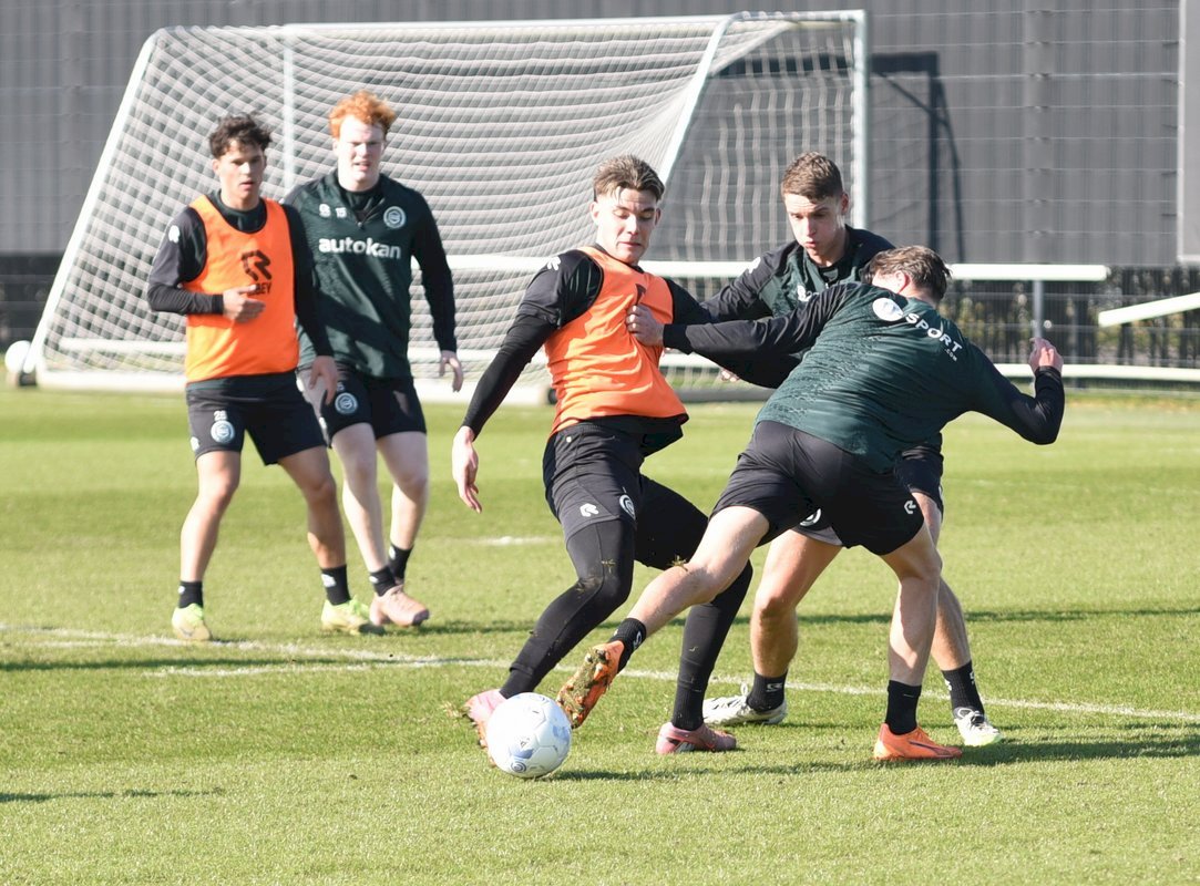 Vanmorgen trainde de eerste selectie van FC Groningen in aanloop naar de wedstrijd tegen de recordkampioen Ajax van zaterdagmiddag 16.30 uur. Een wedstrijd die eigenlijk gewonnen moet worden want anders staat de teller op zeven wedstrijd zonder zege en dat wil je niet graag. Dan moet de FC het ook nog doen zonder hun zwaar geblesseerde aanvoerder Stije Resink en zonder de geschorste Younes Taha. Zoals de training vanmorgen uitwees is het mogelijk dat Dick Lukkien voor Travis Hernes kiest als vervanger van Younes Taha en uiteraard zoals verwacht Jorg Schreuders op de plek van Stije Resink. Hierbij een aantal foto’s van de training van hedenmorgen.