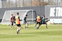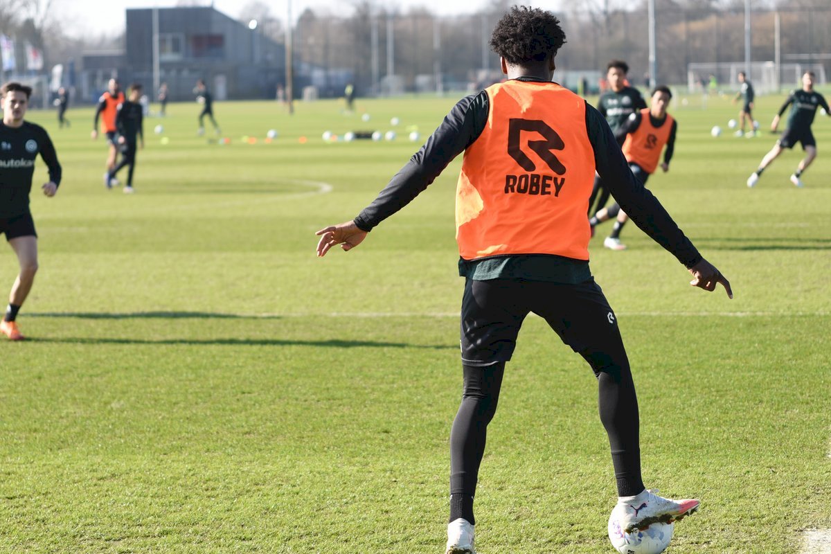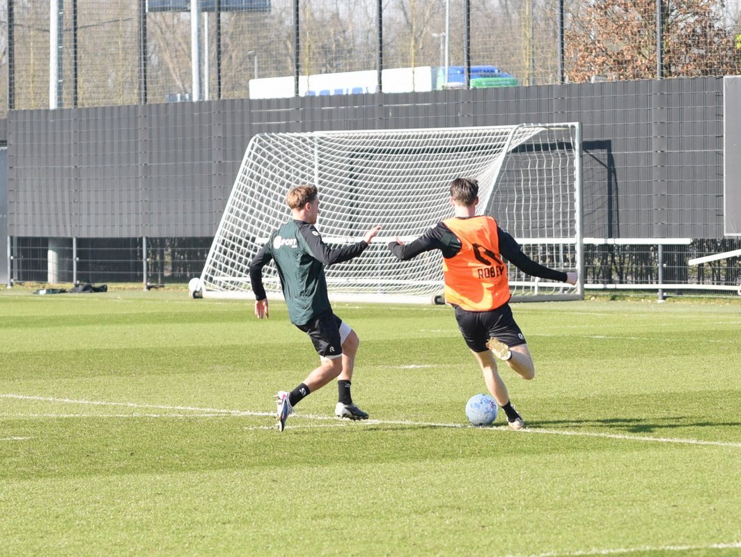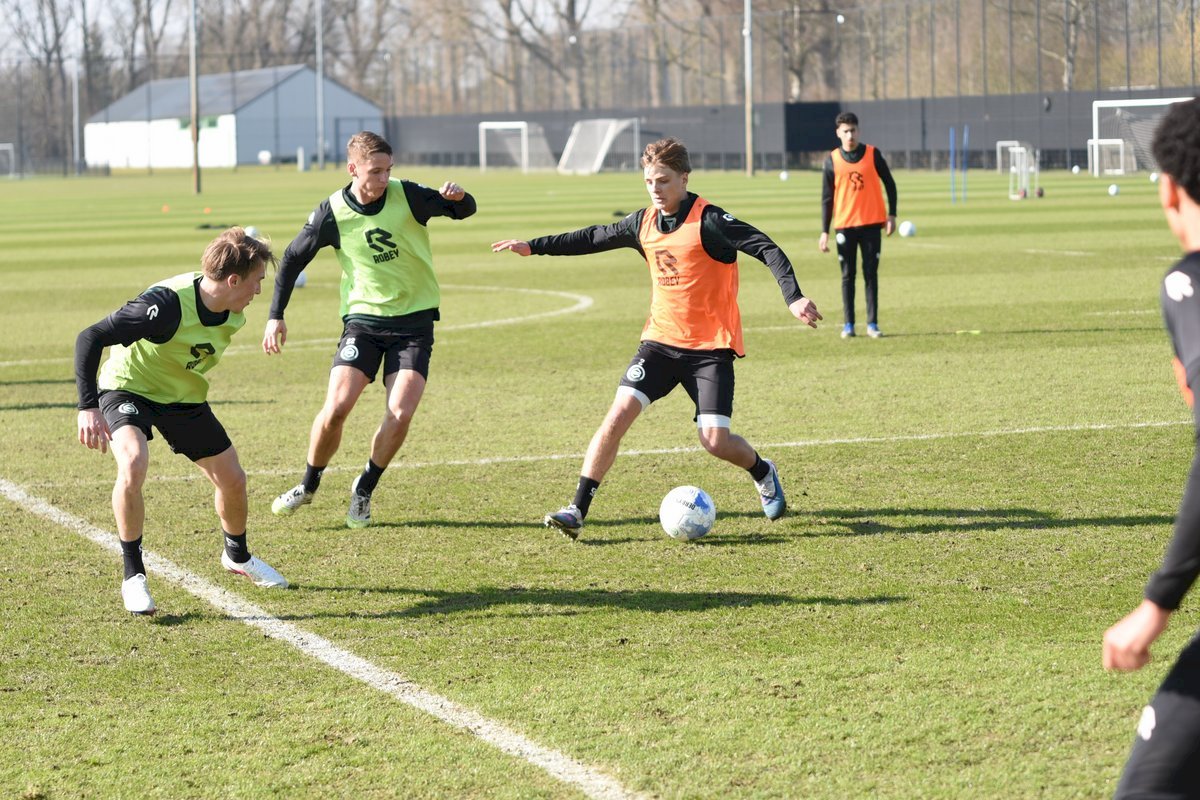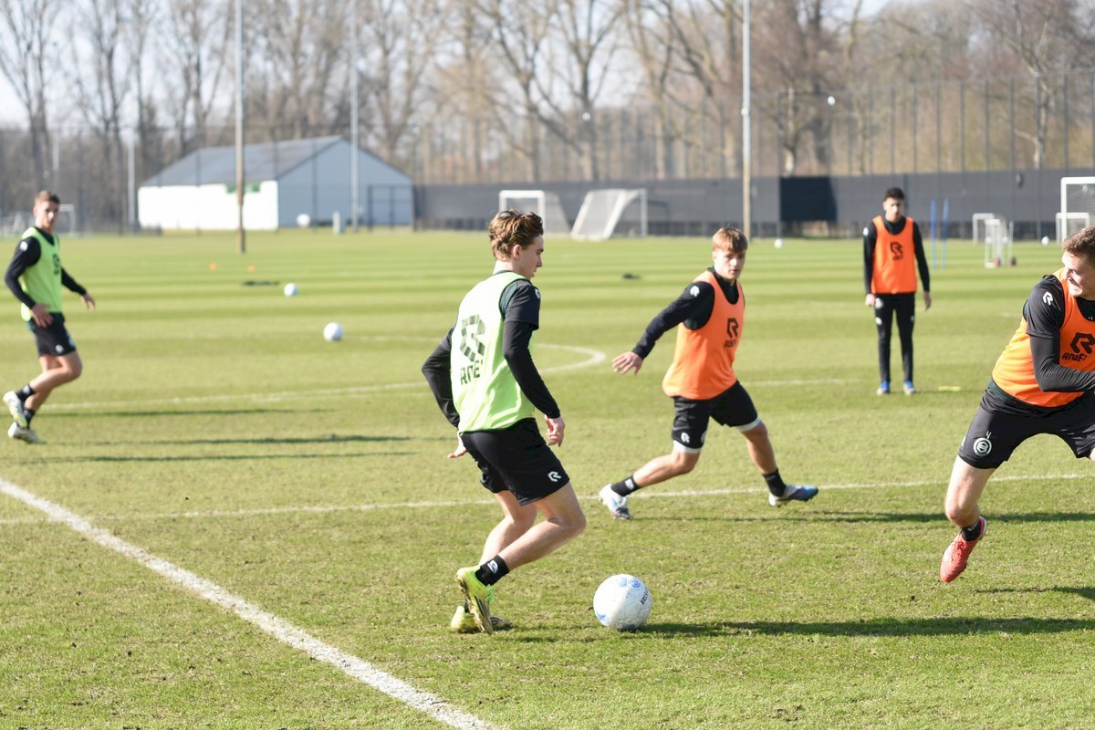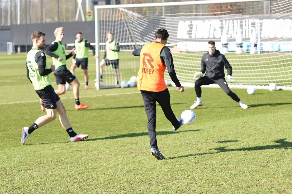 Vanmorgen trainde de eerste selectie van FC Groningen in aanloop naar de wedstrijd tegen de recordkampioen Ajax van zaterdagmiddag 16.30 uur. Een wedstrijd die eigenlijk gewonnen moet worden want anders staat de teller op zeven wedstrijd zonder zege en dat wil je niet graag. Dan moet de FC het ook nog doen zonder hun zwaar geblesseerde aanvoerder Stije Resink en zonder de geschorste Younes Taha. Zoals de training vanmorgen uitwees is het mogelijk dat Dick Lukkien voor Travis Hernes kiest als vervanger van Younes Taha en uiteraard zoals verwacht Jorg Schreuders op de plek van Stije Resink. Hierbij een aantal foto’s van de training van hedenmorgen.