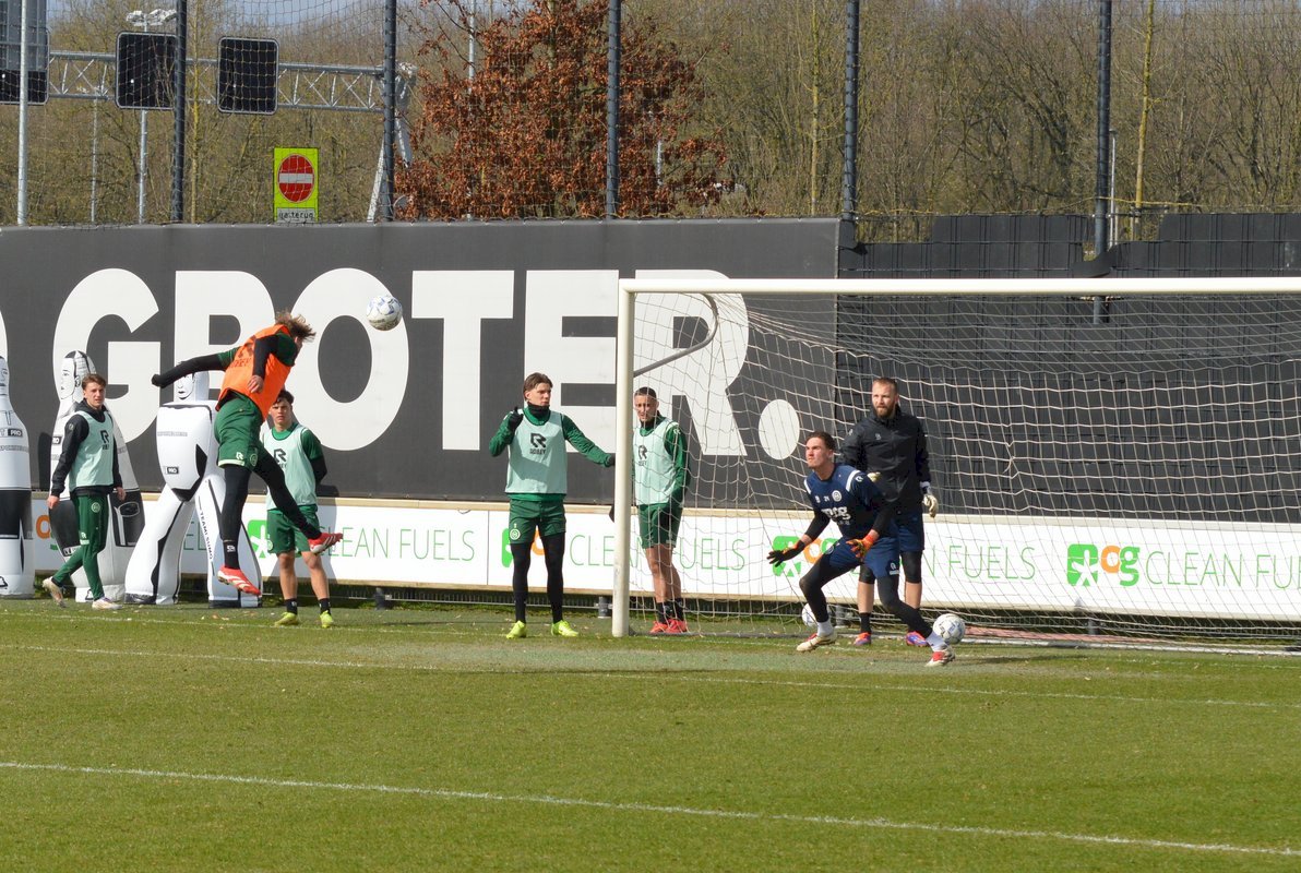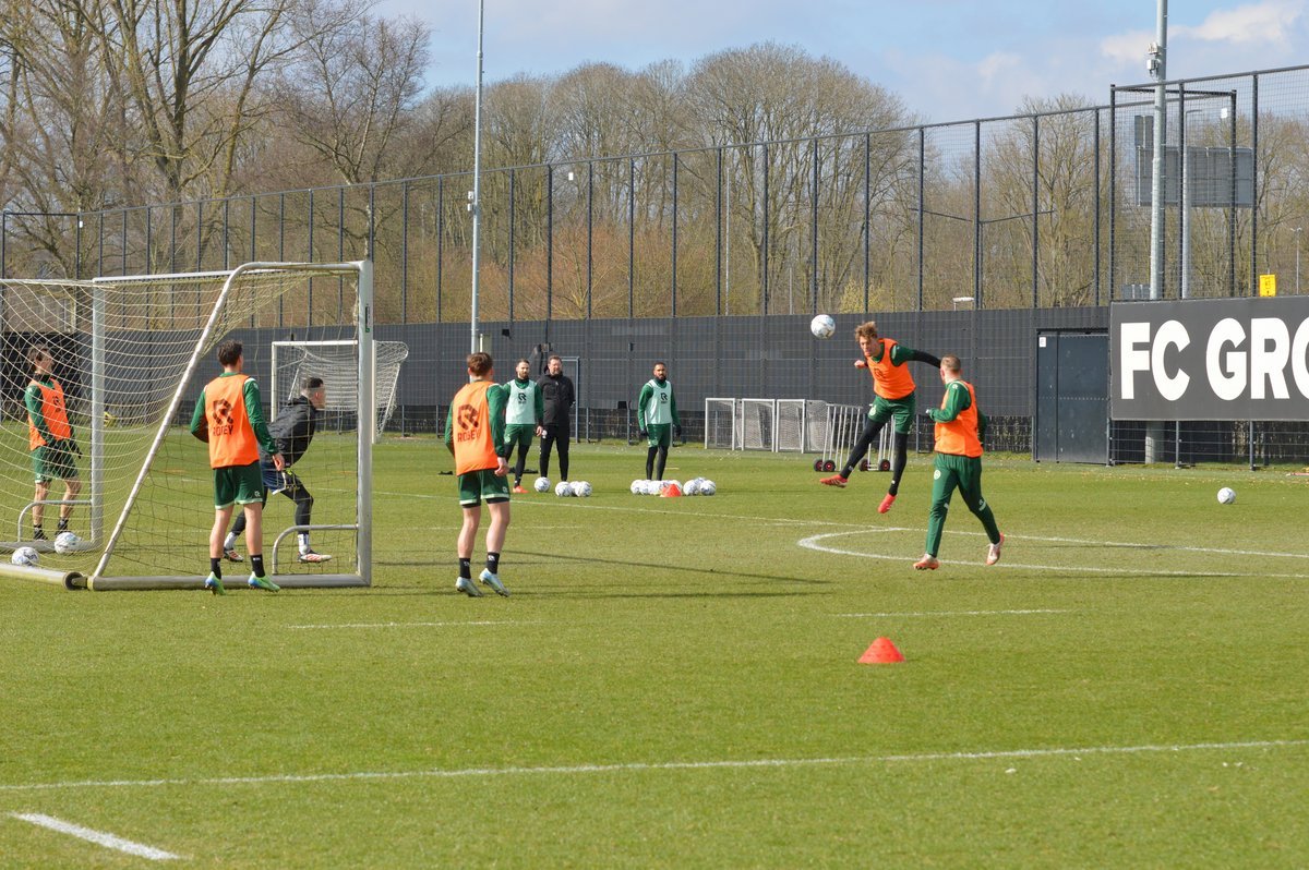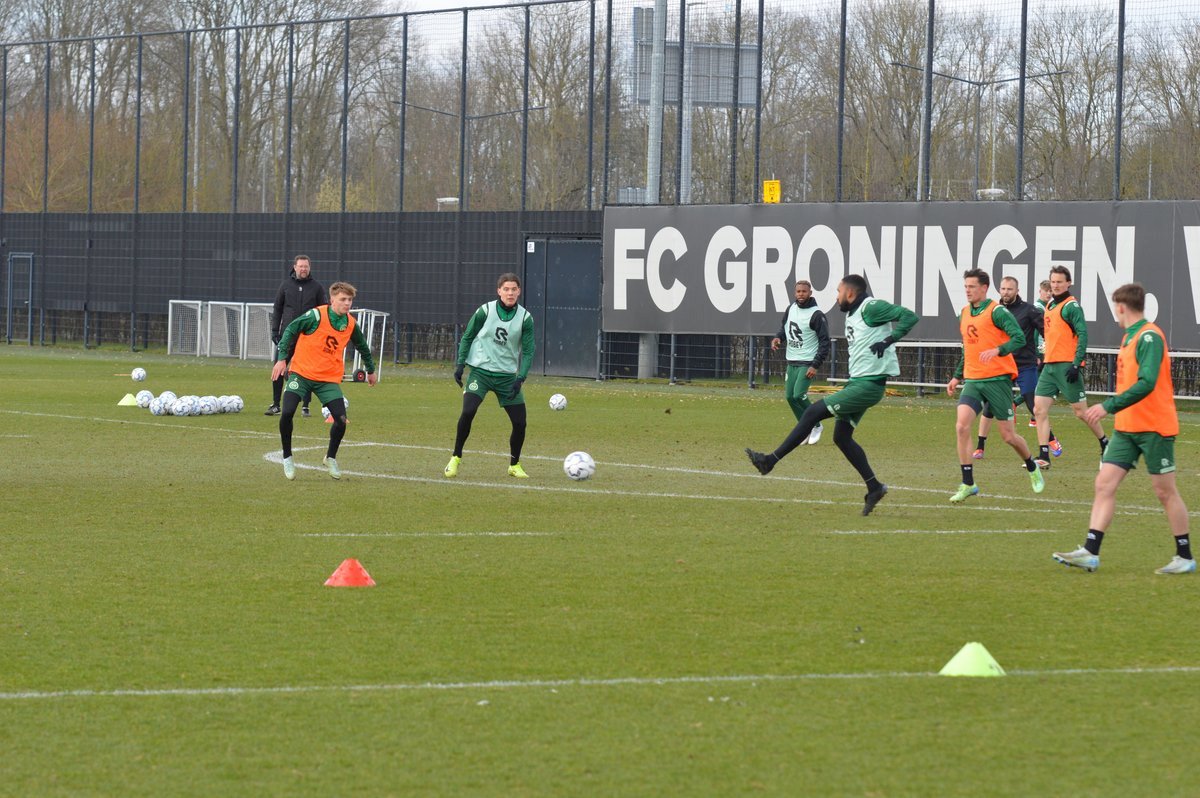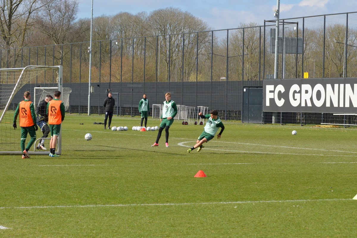 FC Groningen trainde vandaag voor de laatste keer in aanloop naar de belangrijke wedstrijd tegen Fortuna Sittard van zondagmiddag. Er werd veel getraind op afwerken op de goal en vele mooie goals werden gescoord. Een mooi moment was ook de aanwezigheid van de vrouw en zoon van doelman Etienne Vaessen en natuurlijk mocht zoonlief even met papa op het veld voetballen.