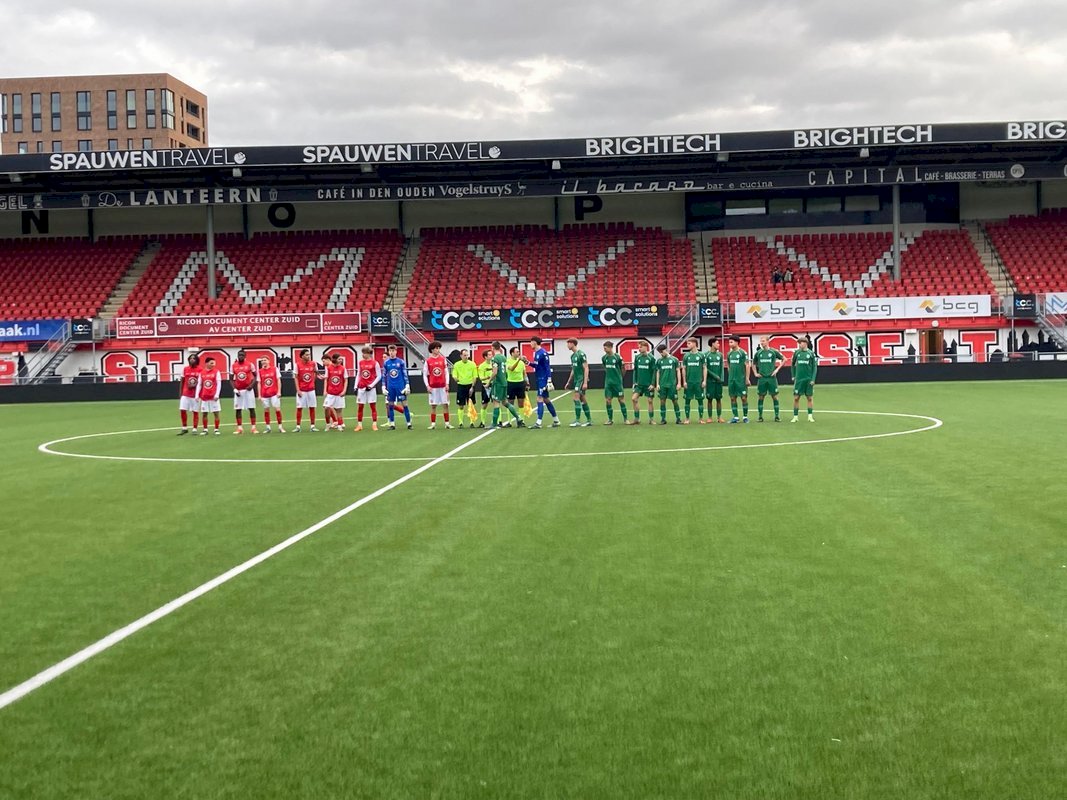 Voor FC Groningen o21 wachtte vandaag een mooie reis want in het bekertoernooi moesten de boys naar Maastricht waar MVV onder 21 op hun wachtte. Een lange reis dus en als je dan met een goed resultaat terug komt is de reis toch minder vervelend. Wij waren niet bij de wedstrijd aanwezig maar toch kunnen we een verslagje maken met dank aan Jack Jans, teammanager van de FC. Ook de foto’s zijn van hem dus onze grote dank aan hem. Opvallend aan de opstelling van FC Groningen vandaag is dat er eigenlijk maar één echte aanvaller in de basis stond. Zo waren o.a. Nils Eggens, Ryan Metu Mark Hoekstra afwezig want die zit vanavond bij het eerste op de bank en Jari Kolthof en Yenio Holder moesten helaas met een blessure in Groningen achter blijven.