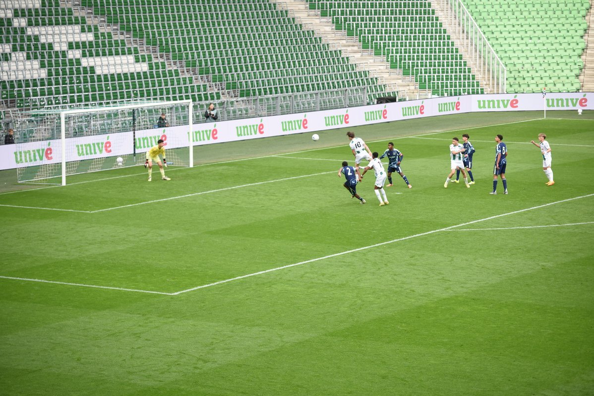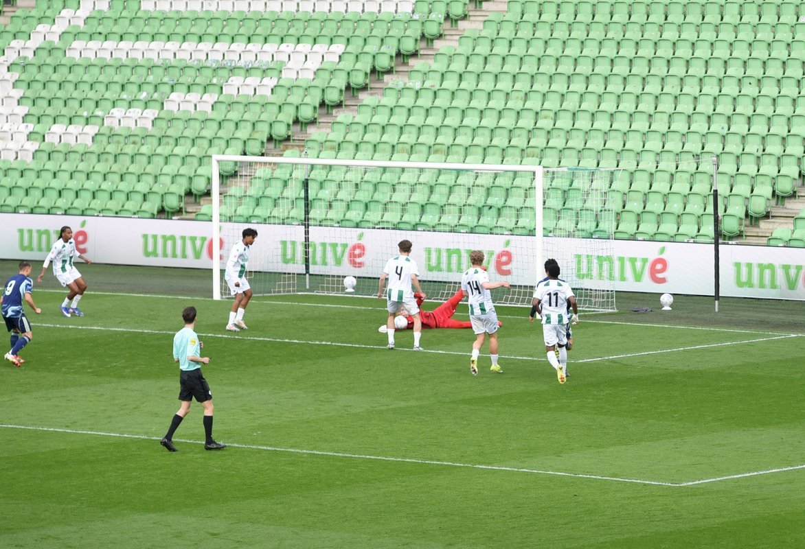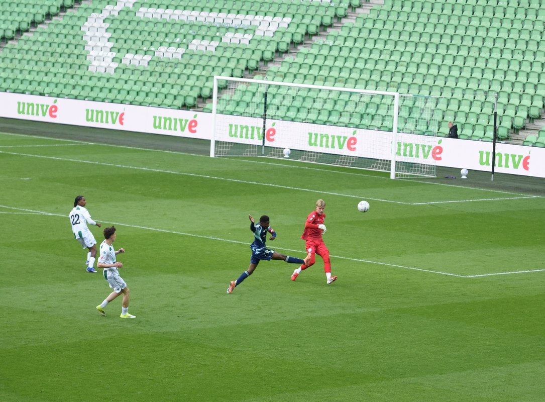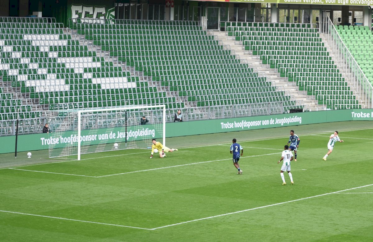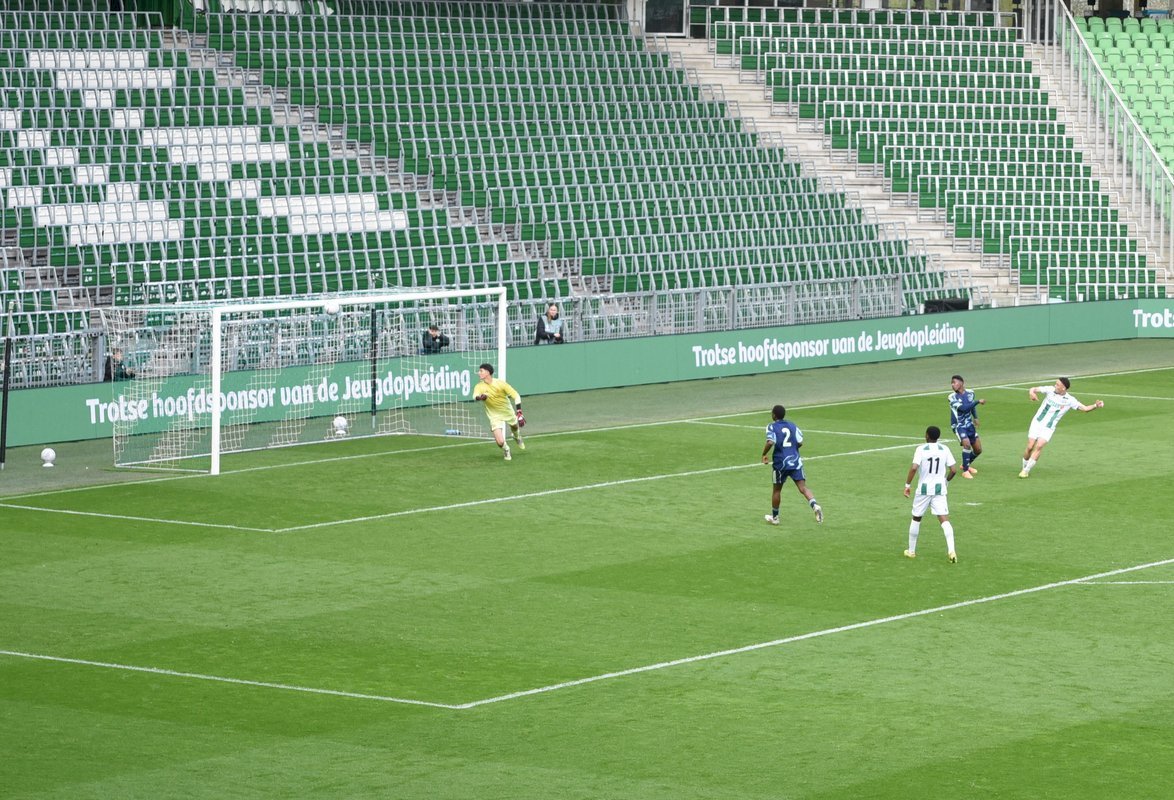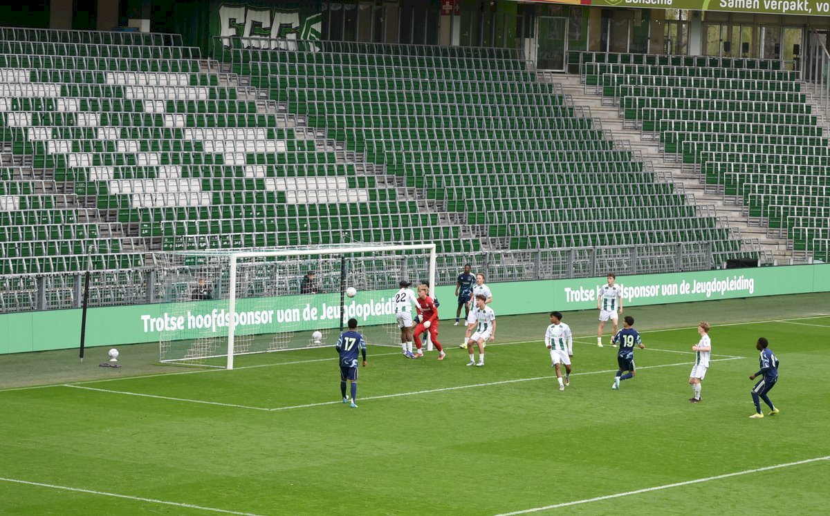 De wedstrijd ging in de eerste helft redelijk gelijk op al kon je zien dat de Ajaxieden wat behendiger, sneller en technischer zijn. In de 13e minuut kwam de ploeg dan ook op voorsprong door een goal van Xander Newstead. FC Groningen rechtte de rug en kwam drie minuten later via een prachtige vrije trap van Luc Kort op gelijke hoogte, 1-1.
