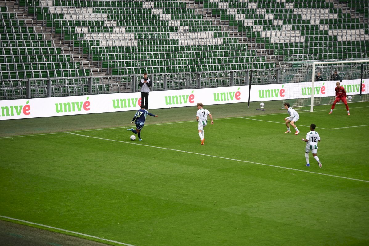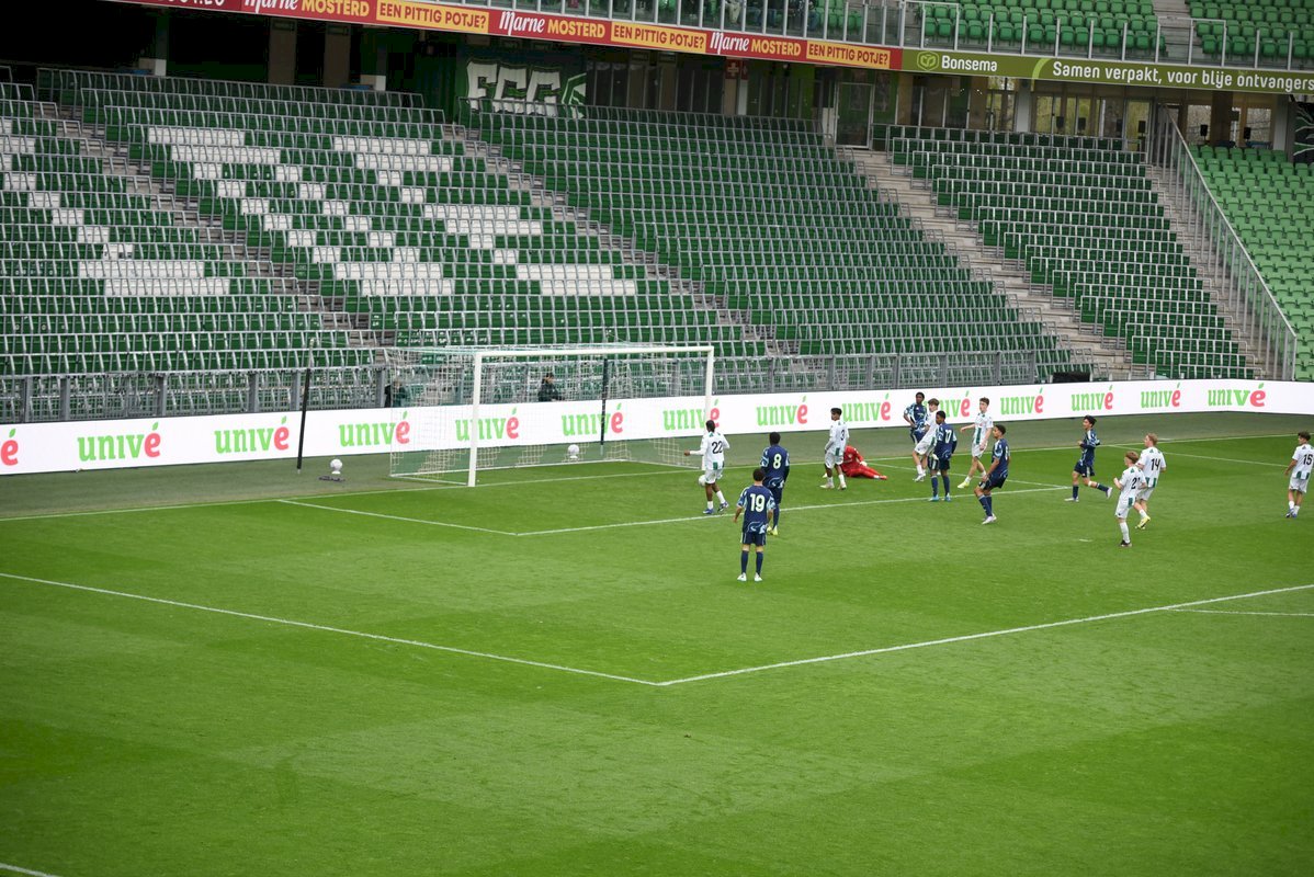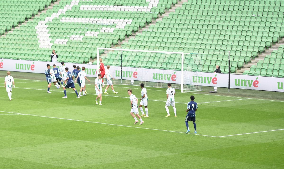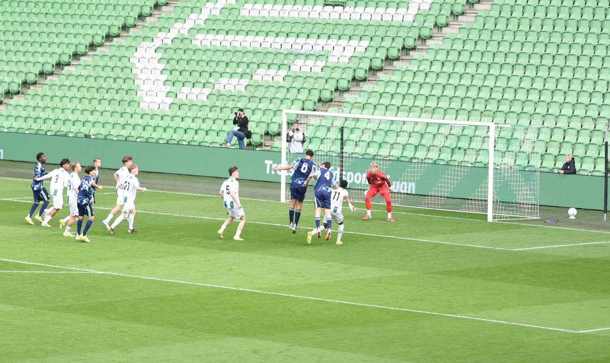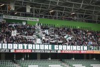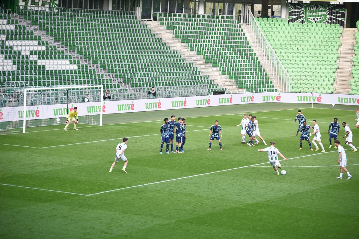 Een prachtige belevenis op de vrijdagavond in de Euroborg als FC Groningen o17 de bekerfinale mag spelen tegen Ajax o17. De Amsterdammers spelen in competitieverband een paar niveaus hoger dan de thuisploeg en waren op voorhand dus de favoriet maar soms zegt dat niets want zulke wedstrijden staan vaan op zich. Er kwam veel publiek op de wedstrijd af en de mannen van de Noordtribune maakten er een waar feest van met hun gezang en getrommel. Deze keer niet op hun vertrouwde plaats achter de goal maar op de bovenste ring achter de goal. Die tribune zat goed vol net als de hoofdtribune. Wat een belevenis voor beide teams om in zo’n ambiance te mogen spelen.