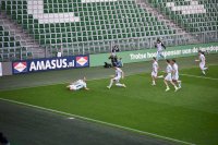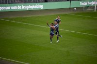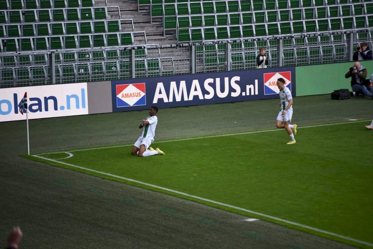Vier minuten kon FC Groningen van die gelijkmaker genieten want toen stond het alweer 1-2, doelpuntmaker Nafairon Landvreugd. Ook nu rechtte de thuisploeg de rug want in de 28ste minuut kopte Derick Isibor weer langszij, 2-2. De Euroborg ontplofte.