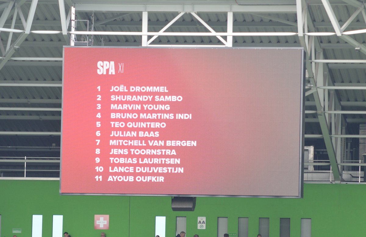 Sparta Rotterdam: Joël Drommel, Shurandy Sambo, Marvin Young, Bruno Martins Indi, Tqo Quintero, Julian Baas, Jens Toornstra (Jonathan de Guzman), Mitchell van Bergen (Sayfallah Ltaief), Lance Duijvenstein (Ayoni Santos), Ayoub Oufkir (Patrick van Aanholt), Tobias Lauritsen (Nökkvi Pórisson)