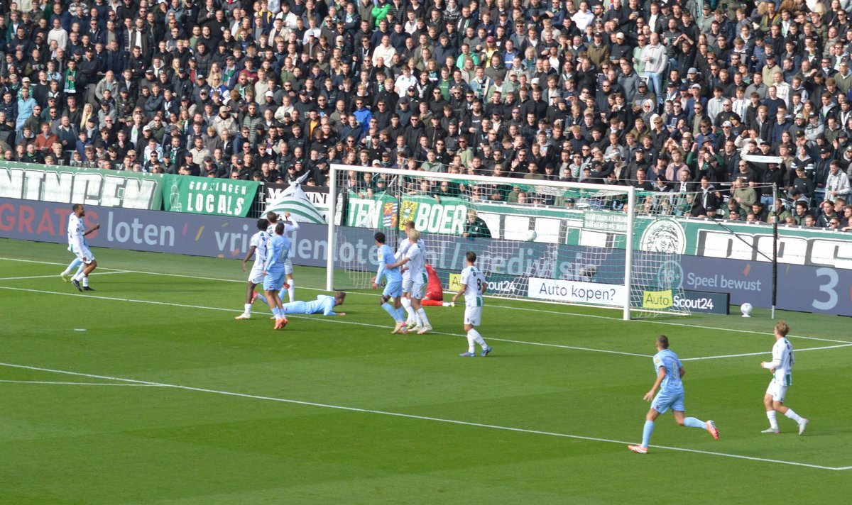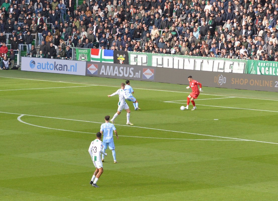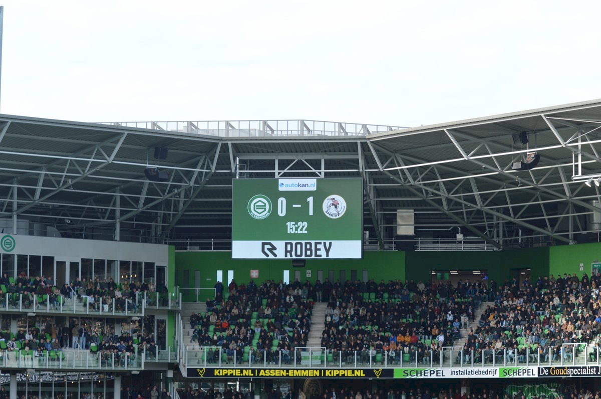 De Groningers kregen echter zeker mogelijkheden. Tika de Jonge gaf een bal met zijn linkerbeen voor, waardoor Marvin Peersman niet genoeg ruimte had om te scoren. Van der Werff met een afstandsschot met links naast maar verder kwam men niet. Hierdoor ging de Trots van het Noorden met een lichte achterstand in de pauze. Onder een klein fluitconcert moet er wel gezegd worden en dat vinden wij eigenlijk wel belachelijk want men vergeet blijkbaar waar de FC staat.
