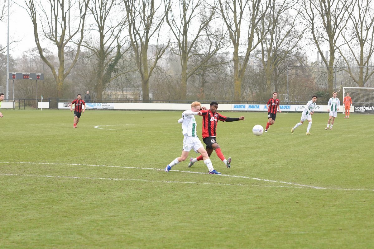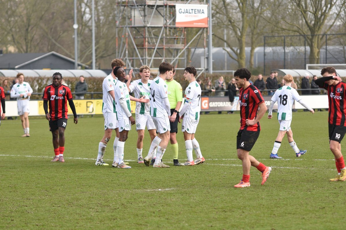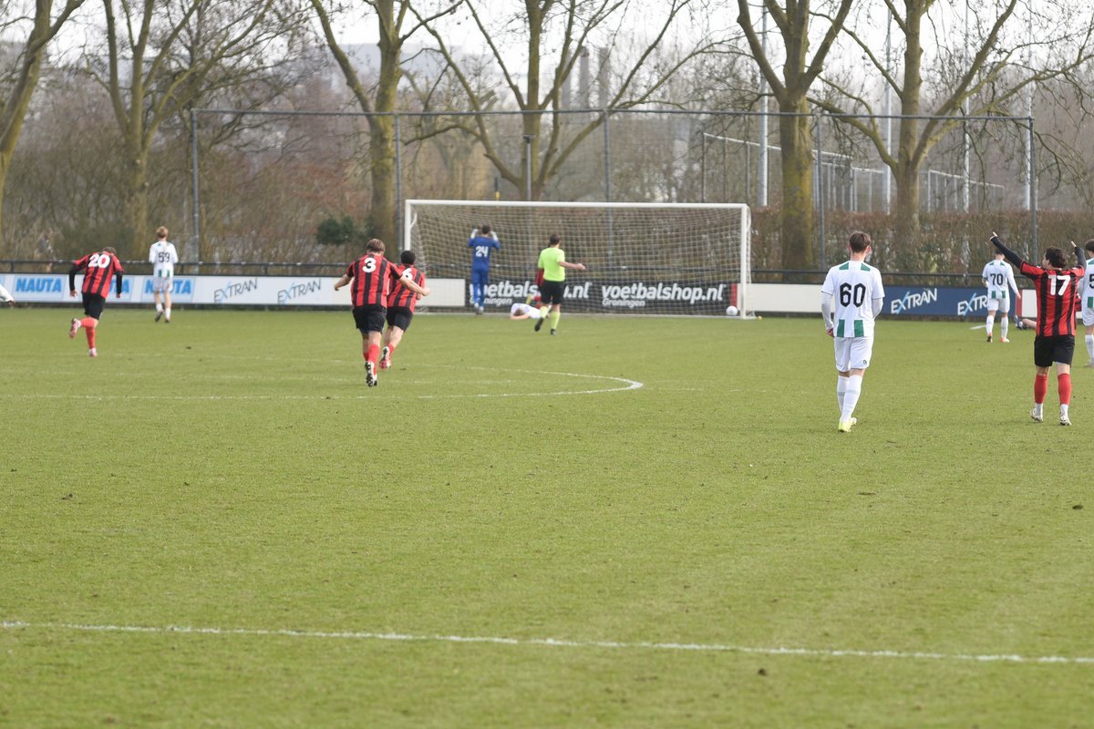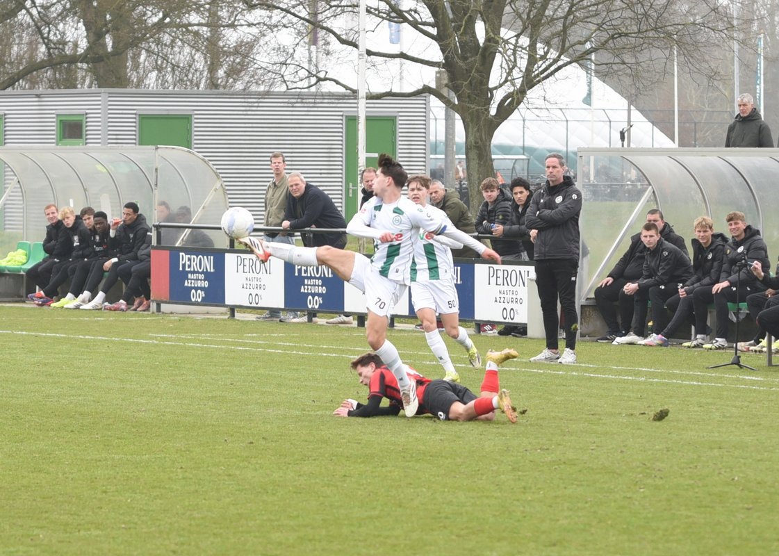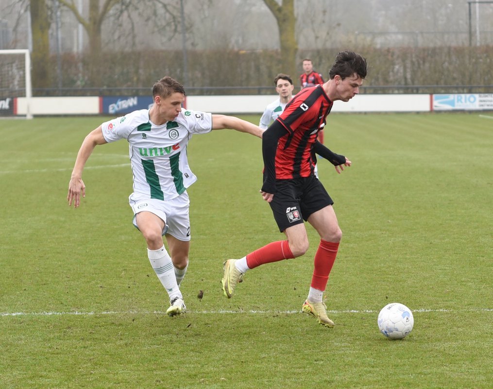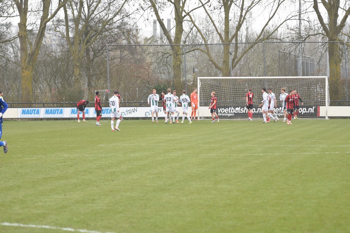 FC Groningen gaat dan op jacht naar de gelijkmaker en trekt ten volle strijde maar de bal wil er maar niet in. De ene naar de andere aanval op de tegenstander hun goal sterft in schoonheid. Als je de goal zelf niet maakt dan valt hij vaak aan de andere kant en dat was nu ook zo. Een voorzet van rechts word door Luka Robben in eigen doel gewerkt, 1-3. Daar bleef het dan ook bij en weet FC Groningen o21 deze wedstrijd niet te winnen.
