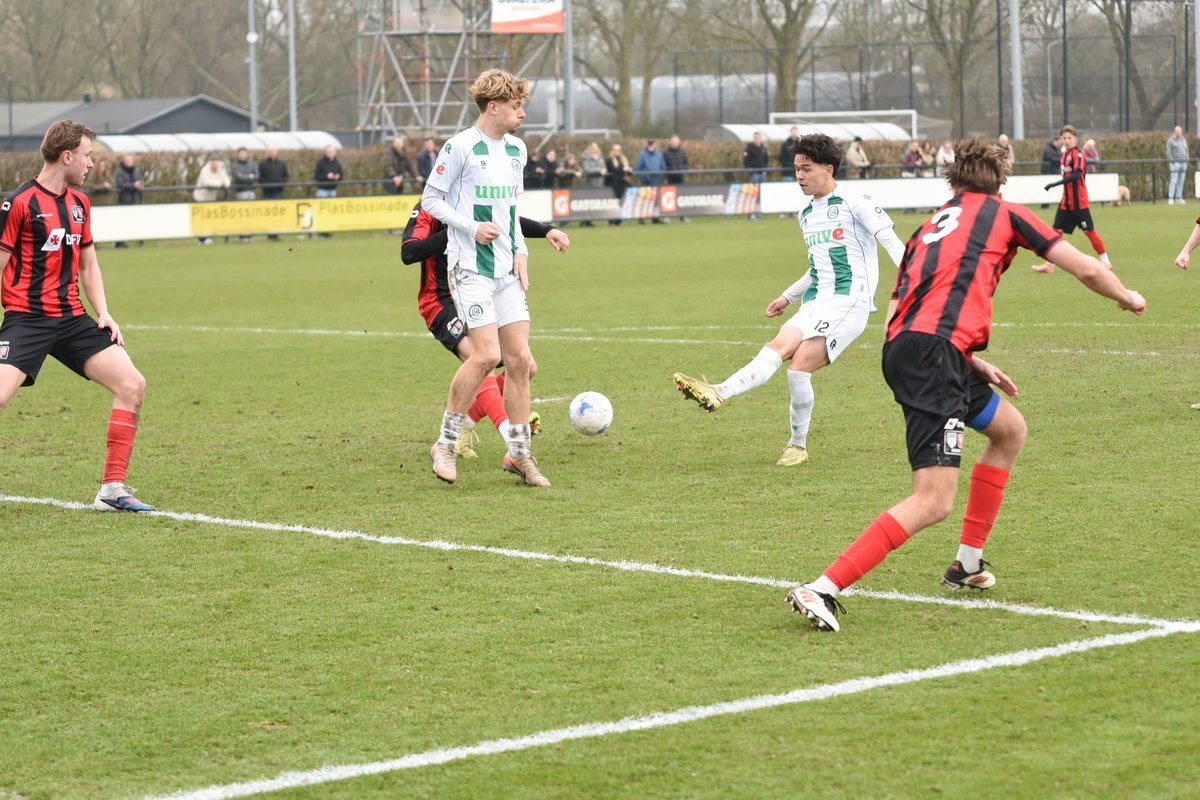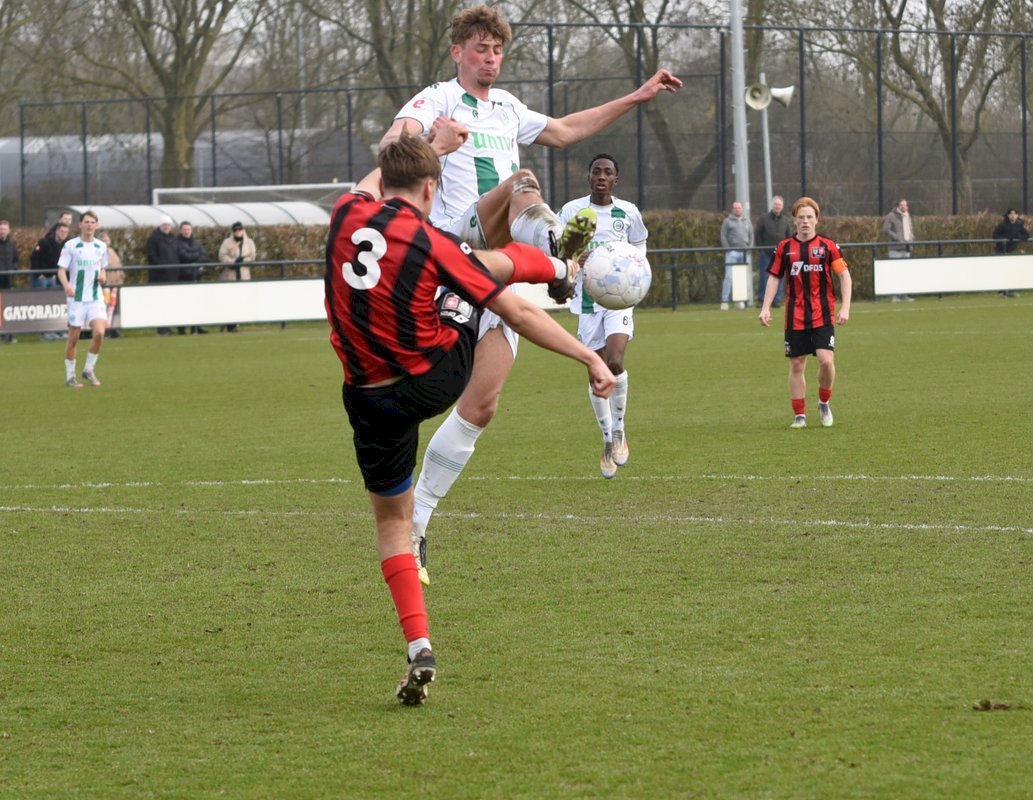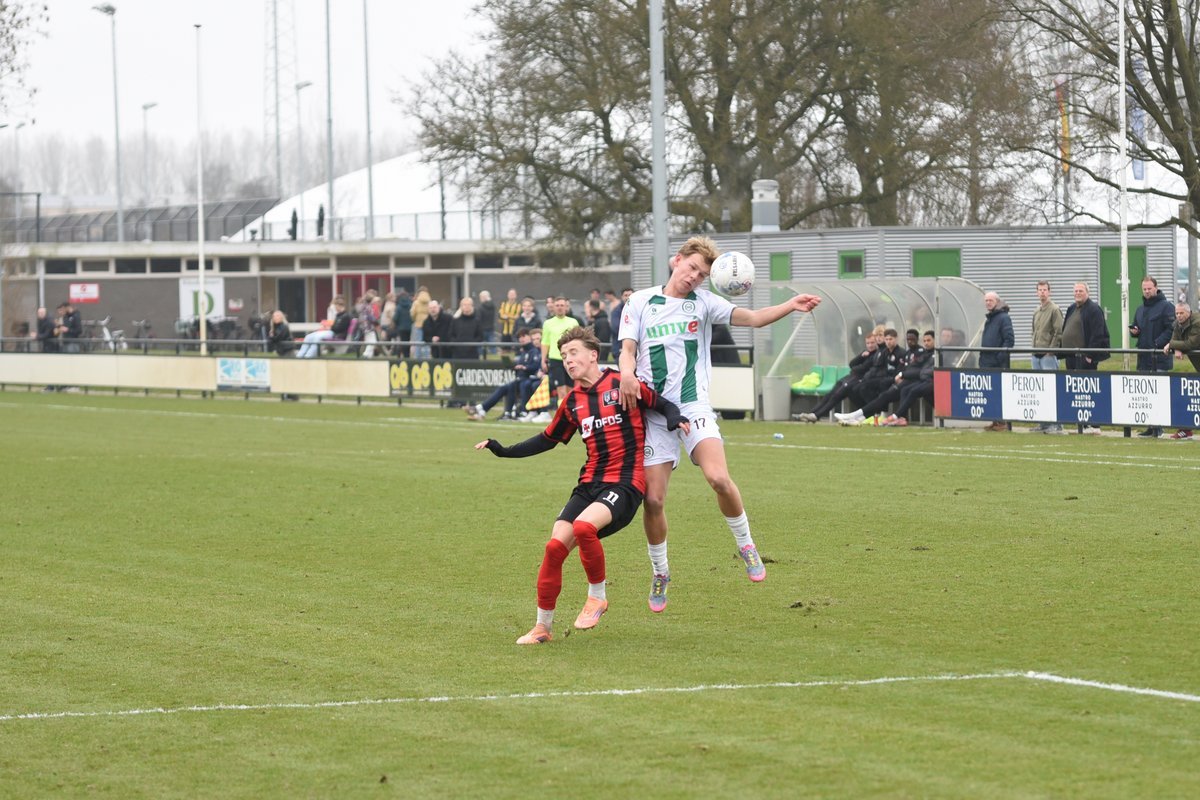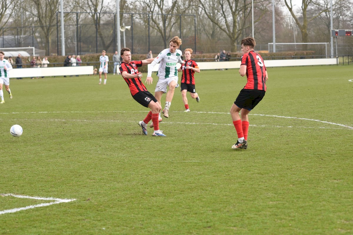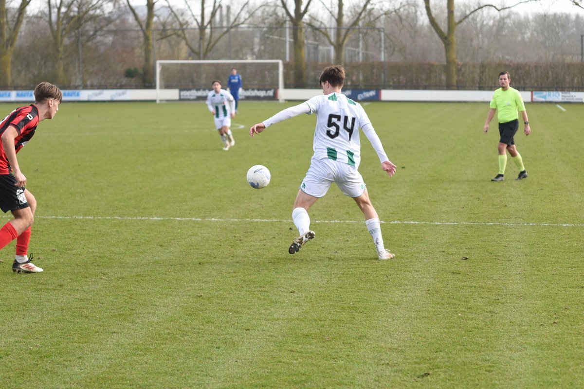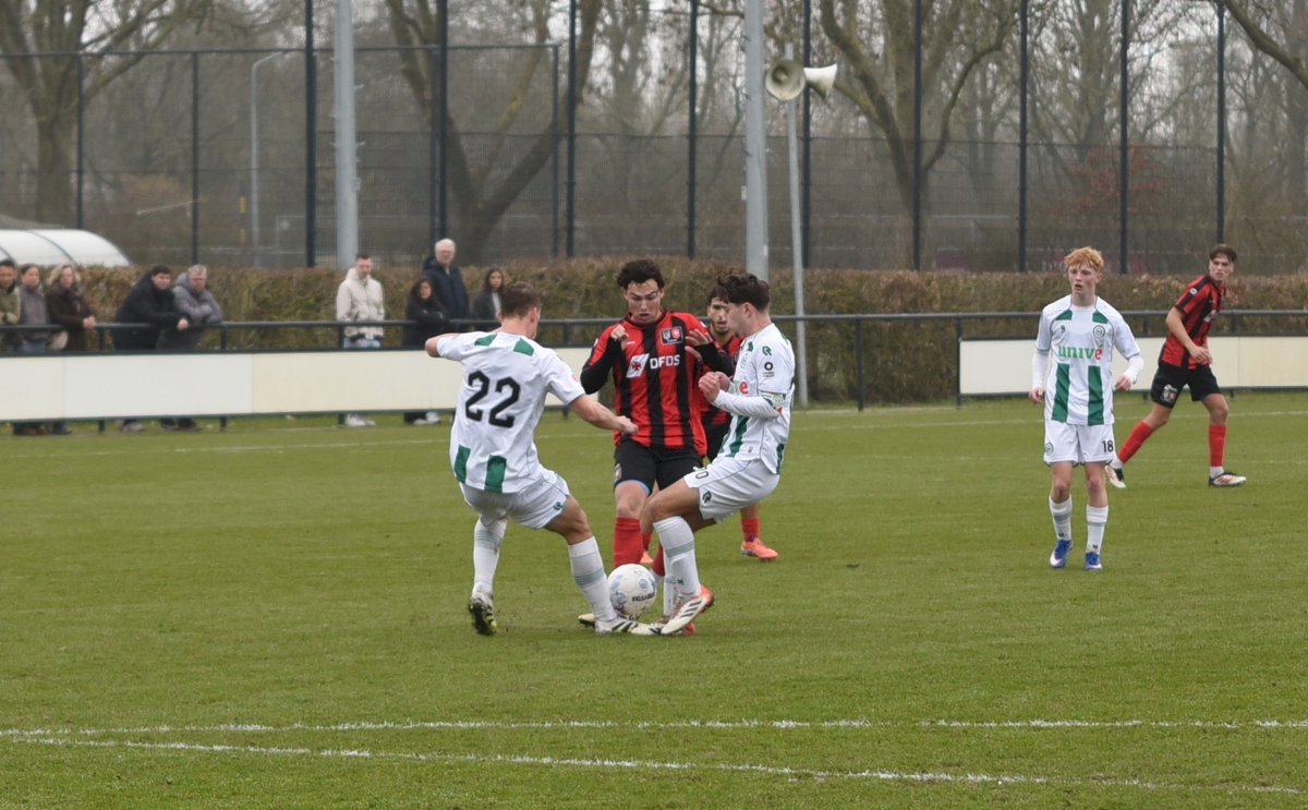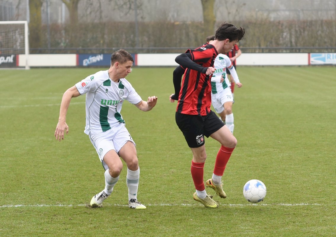 FC Groningen gaat dan op jacht naar de gelijkmaker en trekt ten volle strijde maar de bal wil er maar niet in. De ene naar de andere aanval op de tegenstander hun goal sterft in schoonheid. Als je de goal zelf niet maakt dan valt hij vaak aan de andere kant en dat was nu ook zo. Een voorzet van rechts word door Luka Robben in eigen doel gewerkt, 1-3. Daar bleef het dan ook bij en weet FC Groningen o21 deze wedstrijd niet te winnen.