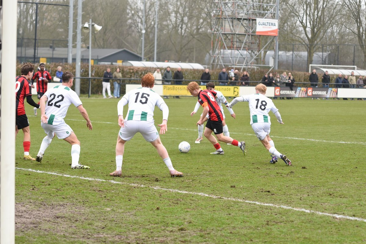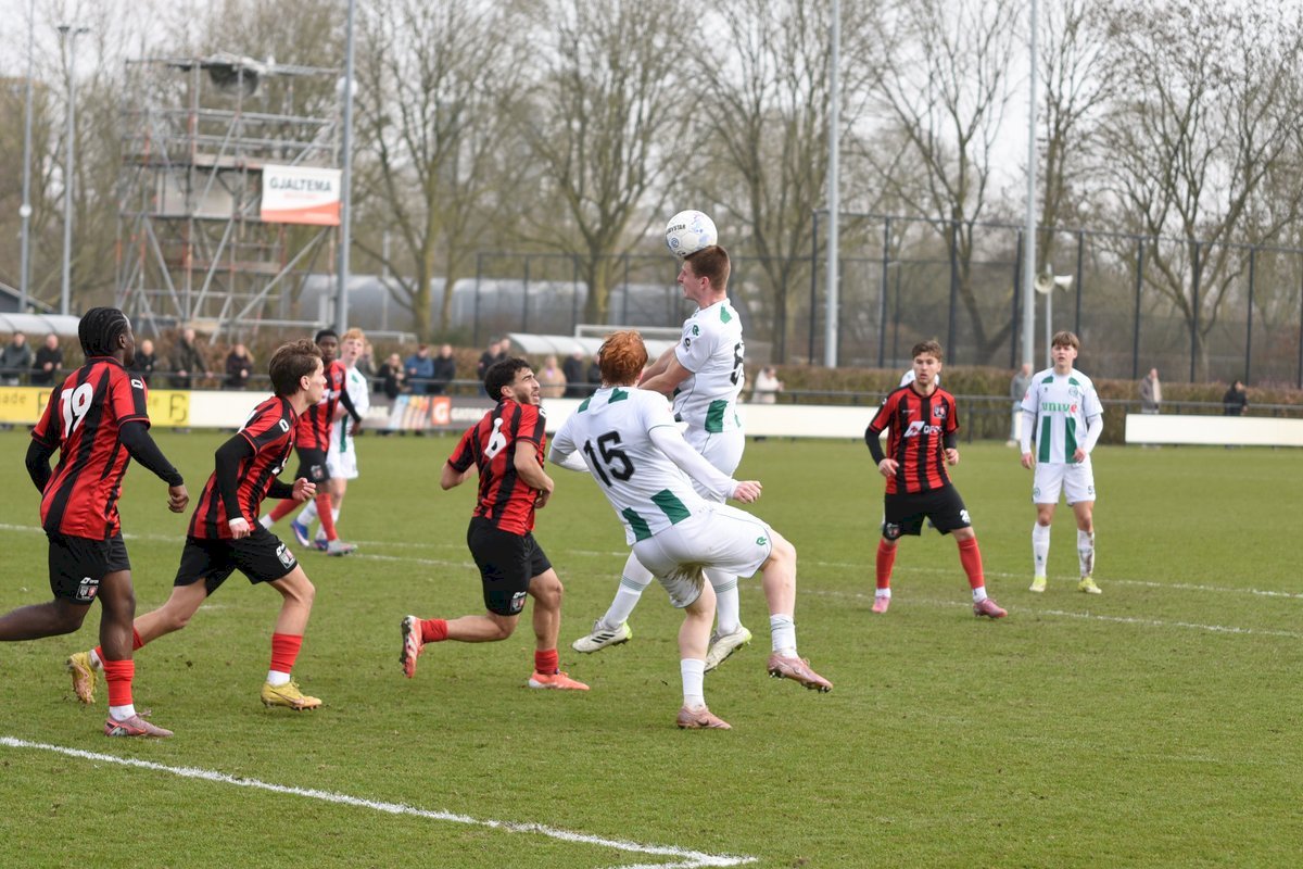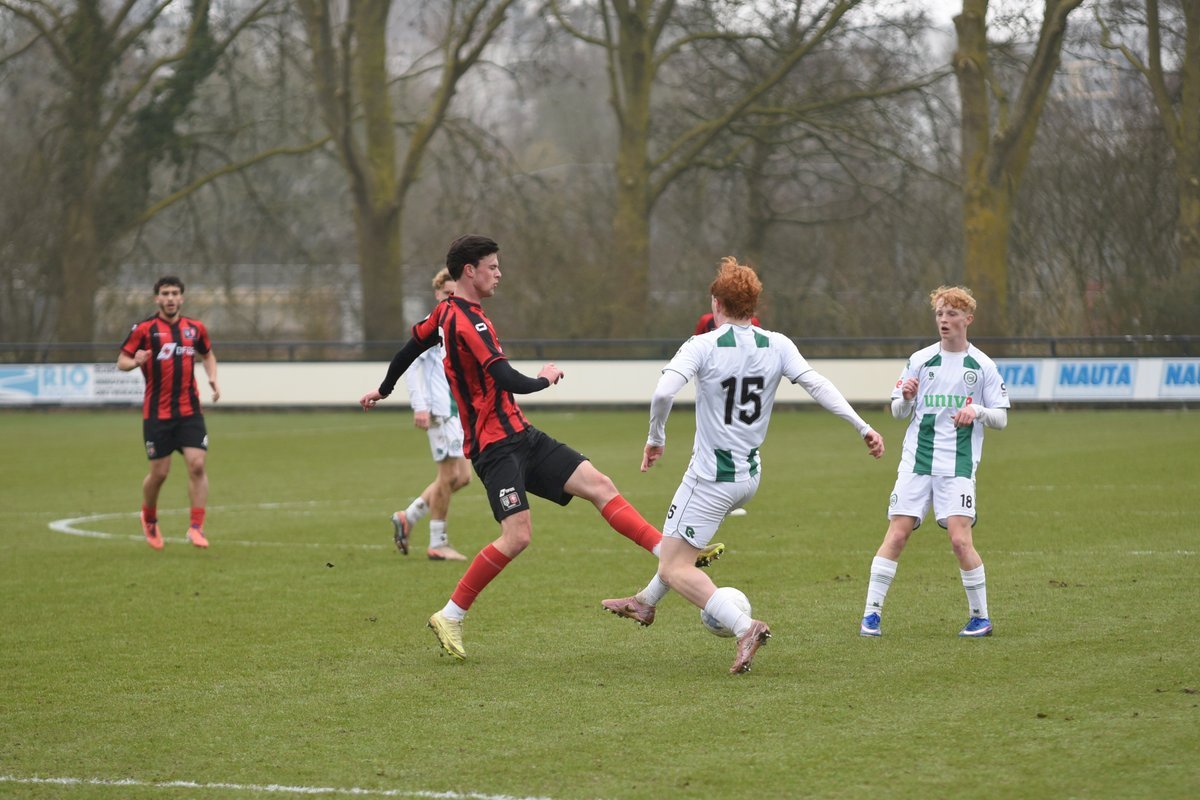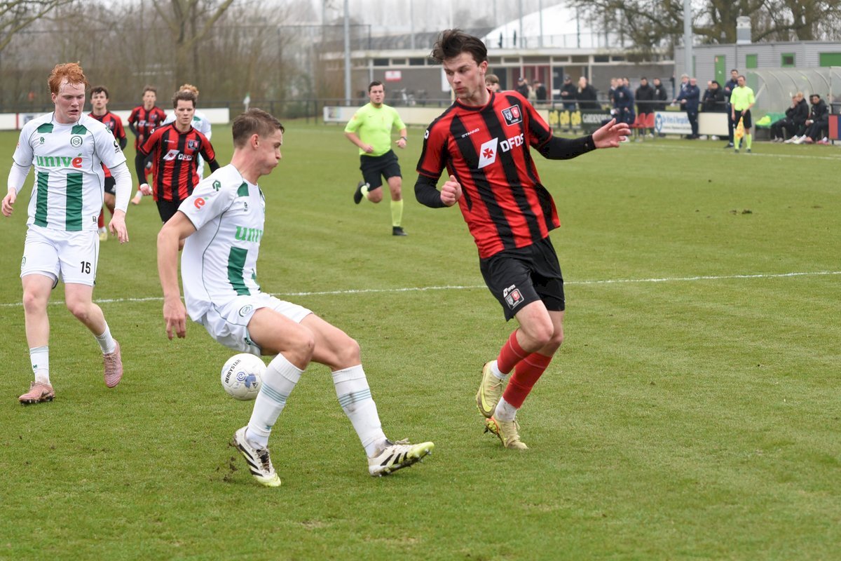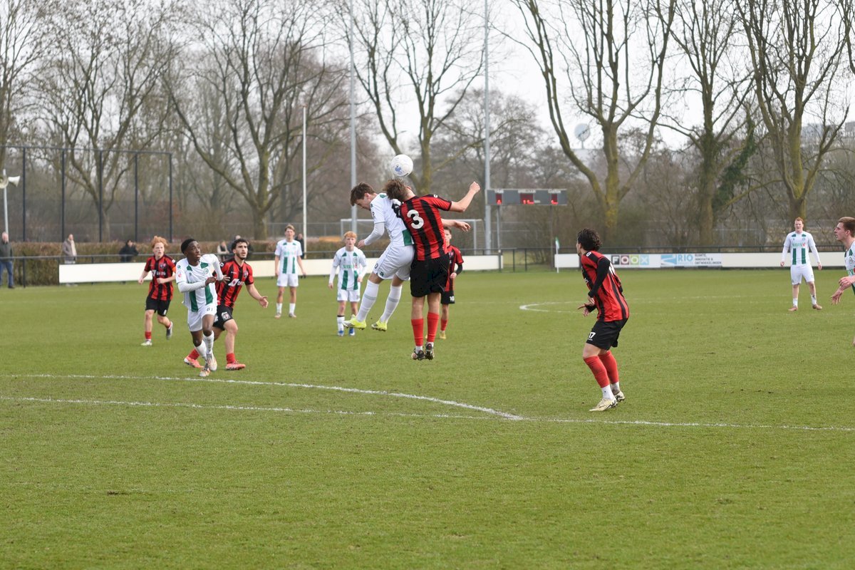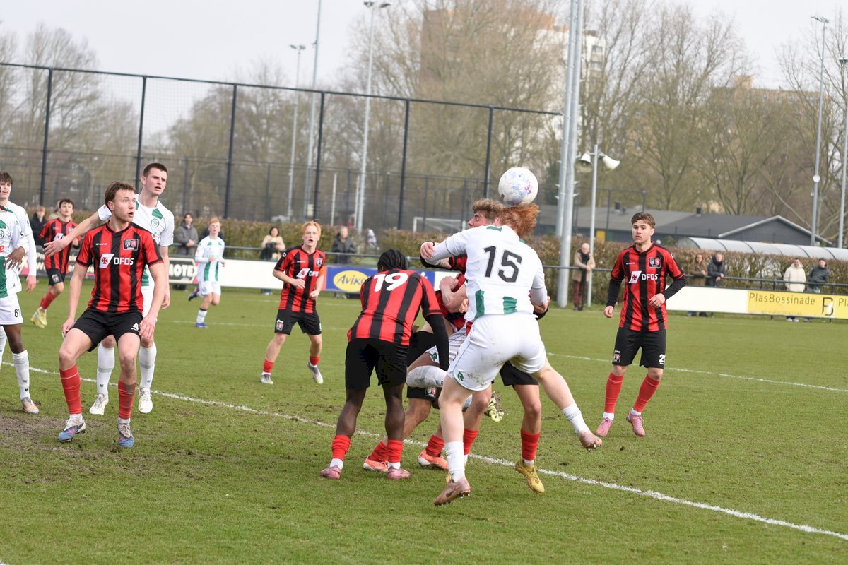 FC Groningen gaat dan op jacht naar de gelijkmaker en trekt ten volle strijde maar de bal wil er maar niet in. De ene naar de andere aanval op de tegenstander hun goal sterft in schoonheid. Als je de goal zelf niet maakt dan valt hij vaak aan de andere kant en dat was nu ook zo. Een voorzet van rechts word door Luka Robben in eigen doel gewerkt, 1-3. Daar bleef het dan ook bij en weet FC Groningen o21 deze wedstrijd niet te winnen.
