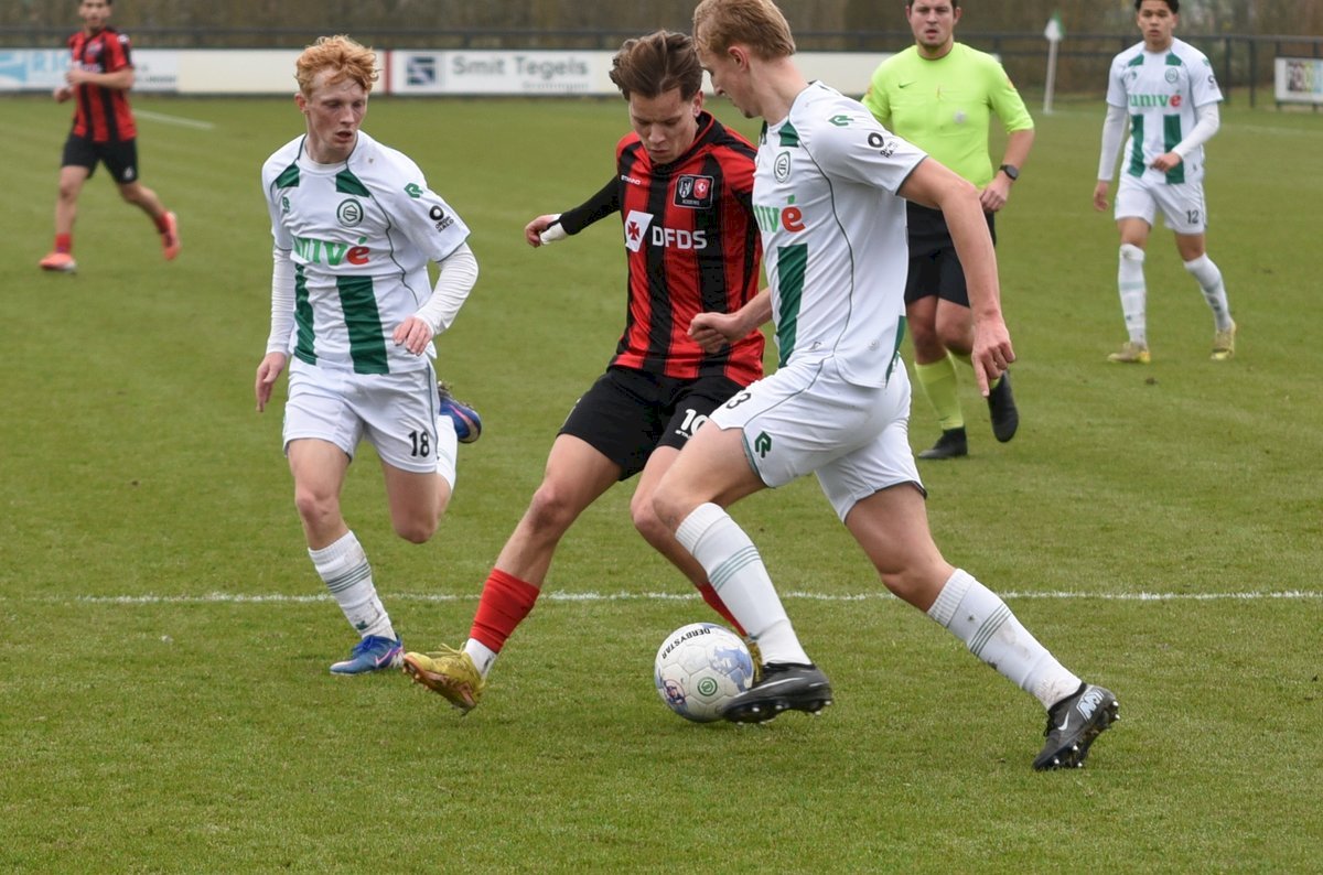 Na de midweekse nederlaag tegen SC Cambuur o21 moest FC Groningen zich herpakken in de thuiswedstrijd tegen FC Twente/Heracles o21. De Tukkers hadden tot dan toe nog maar één punt verzameld maar dat zegt soms niets. Dat was gisteren ook te zien want na ruim 90 minuten stond er een 1-3 op het scorebord. Nog steefds miste FC Groningen een aantal basiskrachten en weer werd de selectie aangevuld met een aantal jongens van de onder 19. In de basis starten zo wie zo drie spelers van de onder 19.